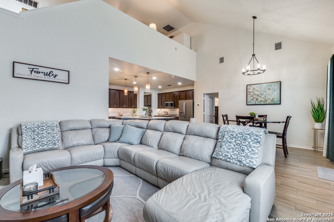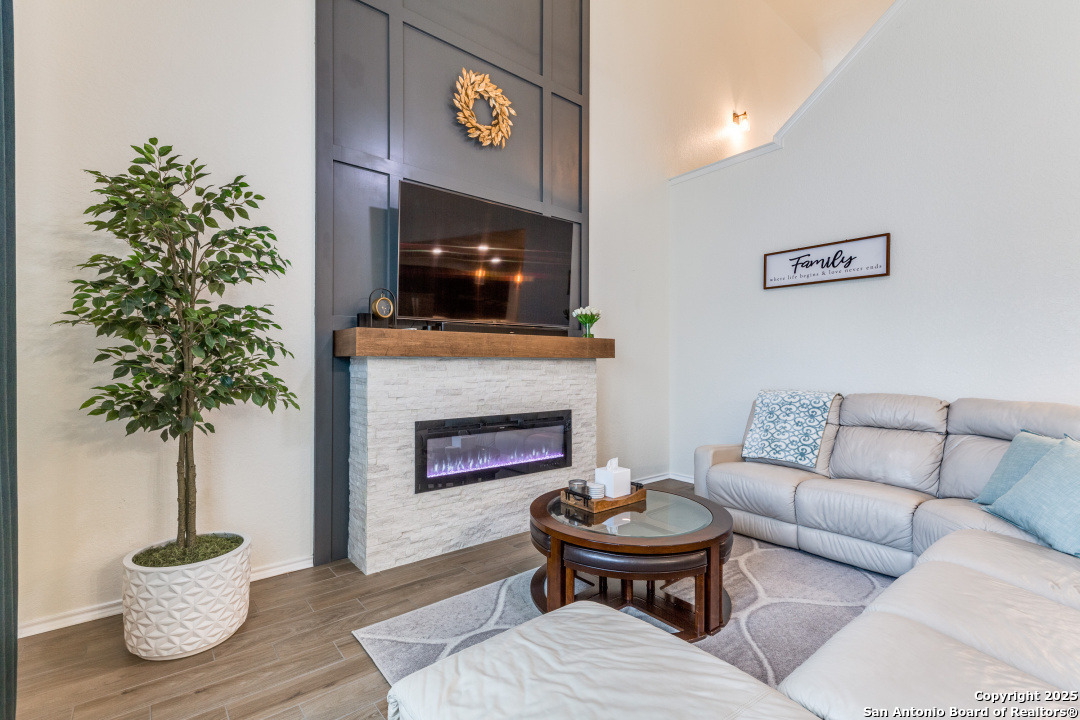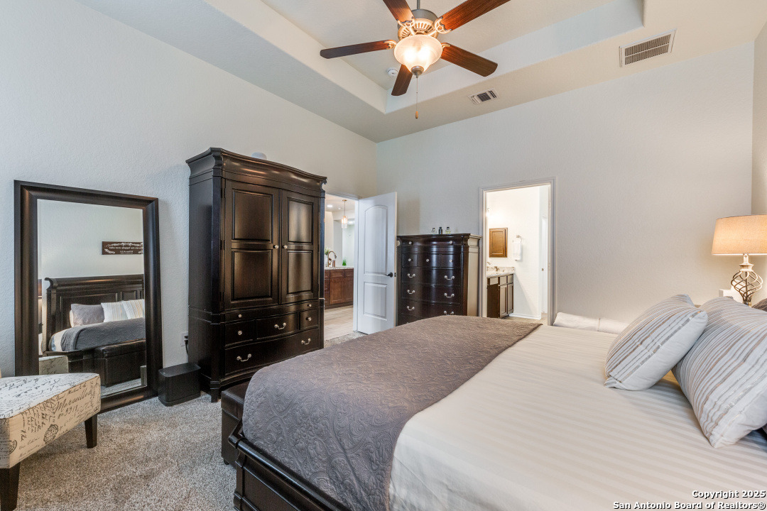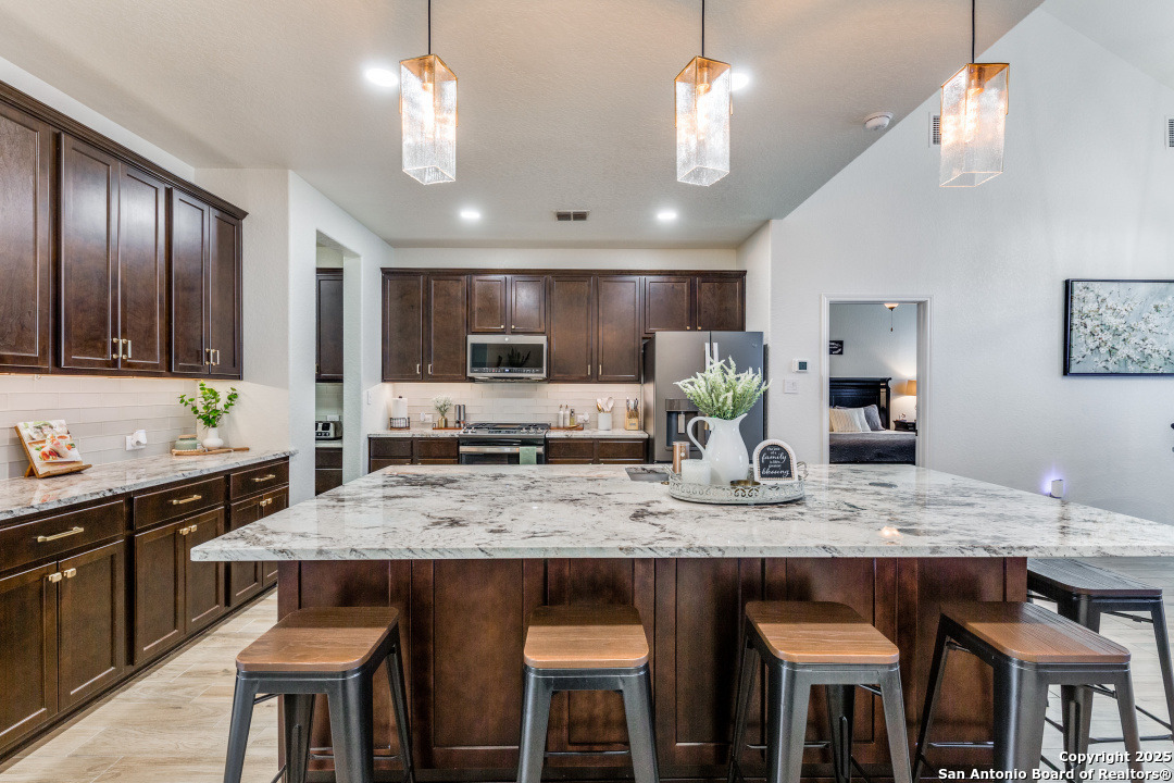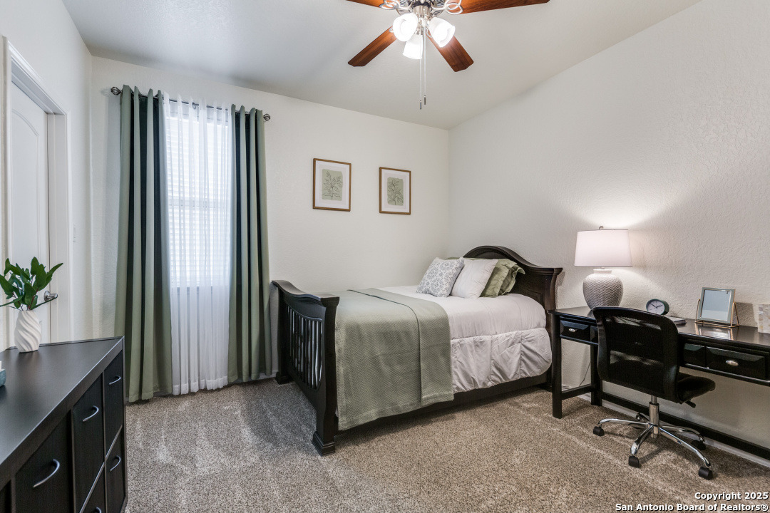 Welcome to this beautifully maintained 4-bedroom, 2.5-bathroom home located in one of San Antonio's most sought-after neighborhoods. Offering 2,854 square feet of spacious, elegant living, this residence blends modern finishes with comfortable functionality in an unbeatable location - just minutes from the picturesque Texas Hill Country. Interior Features - Open concept living with high ceilings and abundant natural light - Gourmet kitchen featuring sleek stainless-steel appliances, granite countertops, custom cabinetry and a grand center island, perfect for entertaining - Stylish living room with large windows and statement fireplace - Primary suite on main floor with luxurious en-suite: dual vanities, soaking tub, separate walk-in shower, and walk-in closet - Three additional bedrooms upstairs, generously sized with shared full bath - upstairs loft area or second living space upstairs perfect for a home office or game room - Dedicated laundry room with shelving and top cabinet storage Outdoor Living - Covered and extended back patio ideal for relaxing or entertaining - Fully fenced backyard with room to play or garden - Curb appeal with nicely manicured landscaping Recent Upgrades - Brand new roof installed in 2024 - New HVAC system installed in 2023 - Energy-efficient features, including a smart thermostat Community Amenities - Community pool perfect for summer days - Large, covered playground just a short walk away, ideal for families - Well-maintained sidewalks and green spaces for walking, jogging, or bike riding Prime Location - Located in sought-after 78260 zip code - Minutes from the Texas Hill Country, with wineries, scenic drives, and hiking - Close to top-rated schools, shopping, dining, and entertainment - Quick access to major roadways for an easy commute Public Schools Comal ISD - M.H. Specht Elementary School - Bulverde Middle School - Pieper High School Schedule Your Private Tour Today! - This move-in-ready home with major updates and fantastic community features wont last long
