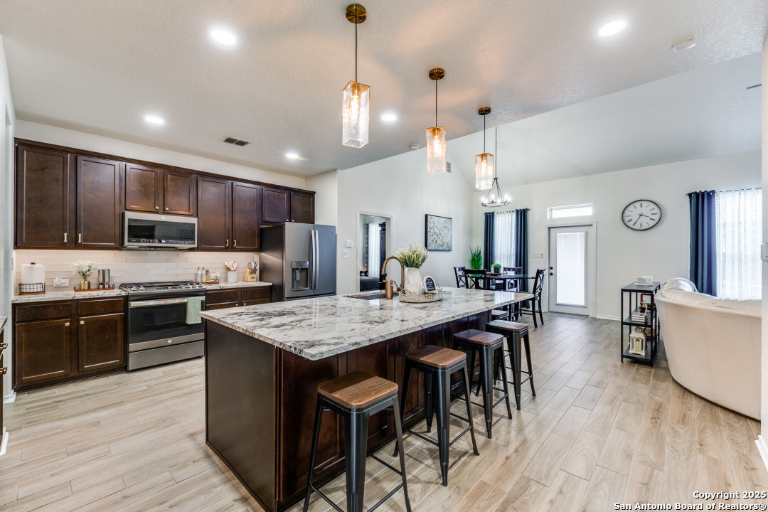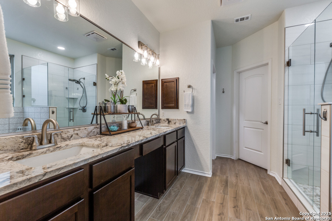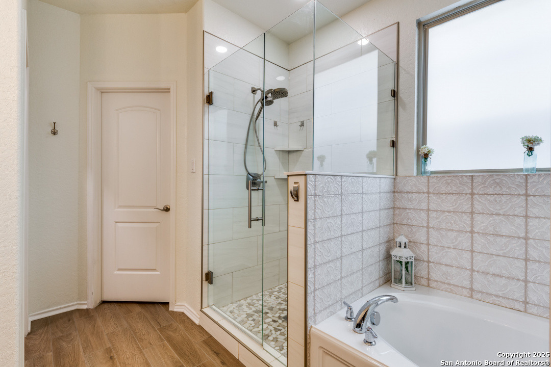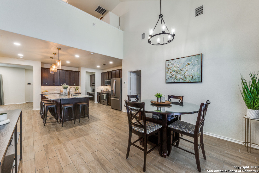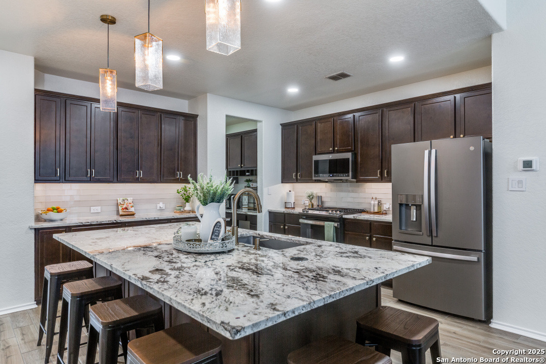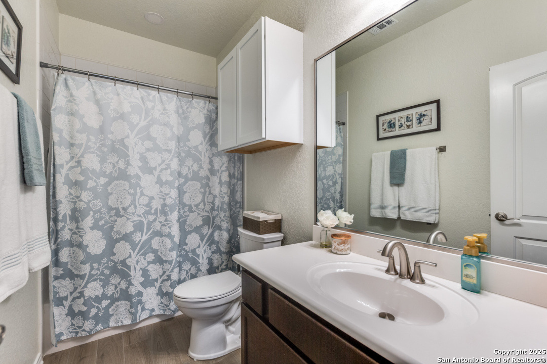 Welcome to this beautifully maintained 4-bedroom, 2.5-bathroom home located in one of San Antonio's most sought-after neighborhoods. Offering 2,854 square feet of spacious, elegant living, this residence blends modern finishes with comfortable functionality in an unbeatable location - just minutes from the picturesque Texas Hill Country. Interior Features - Open concept living with high ceilings and abundant natural light - Gourmet kitchen featuring sleek stainless-steel appliances, granite countertops, custom cabinetry and a grand center island, perfect for entertaining - Stylish living room with large windows and statement fireplace - Primary suite on main floor with luxurious en-suite: dual vanities, soaking tub, separate walk-in shower, and walk-in closet - Three additional bedrooms upstairs, generously sized with shared full bath - upstairs loft area or second living space upstairs perfect for a home office or game room - Dedicated laundry room with shelving and top cabinet storage Outdoor Living - Covered and extended back patio ideal for relaxing or entertaining - Fully fenced backyard with room to play or garden - Curb appeal with nicely manicured landscaping Recent Upgrades - Brand new roof installed in 2024 - New HVAC system installed in 2023 - Energy-efficient features, including a smart thermostat Community Amenities - Community pool perfect for summer days - Large, covered playground just a short walk away, ideal for families - Well-maintained sidewalks and green spaces for walking, jogging, or bike riding Prime Location - Located in sought-after 78260 zip code - Minutes from the Texas Hill Country, with wineries, scenic drives, and hiking - Close to top-rated schools, shopping, dining, and entertainment - Quick access to major roadways for an easy commute Public Schools Comal ISD - M.H. Specht Elementary School - Bulverde Middle School - Pieper High School Schedule Your Private Tour Today! - This move-in-ready home with major updates and fantastic community features wont last long