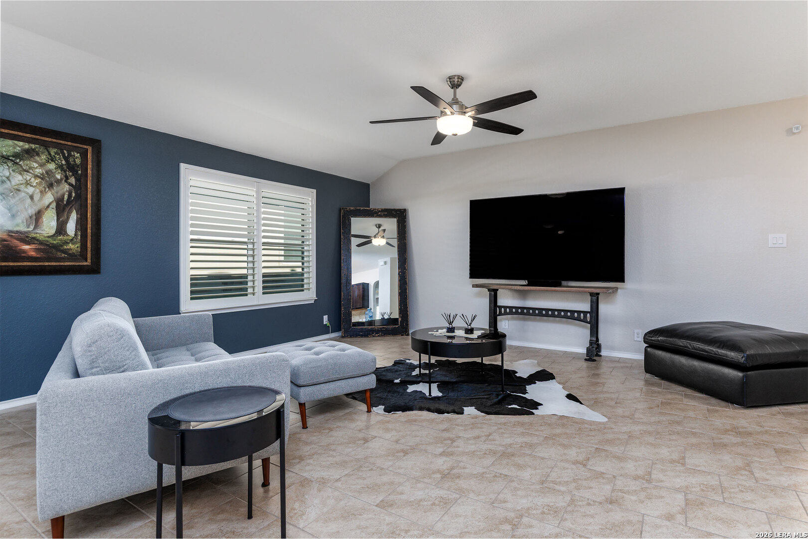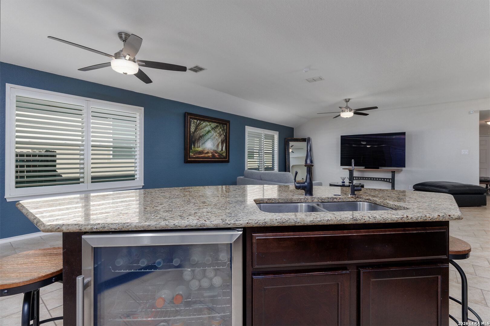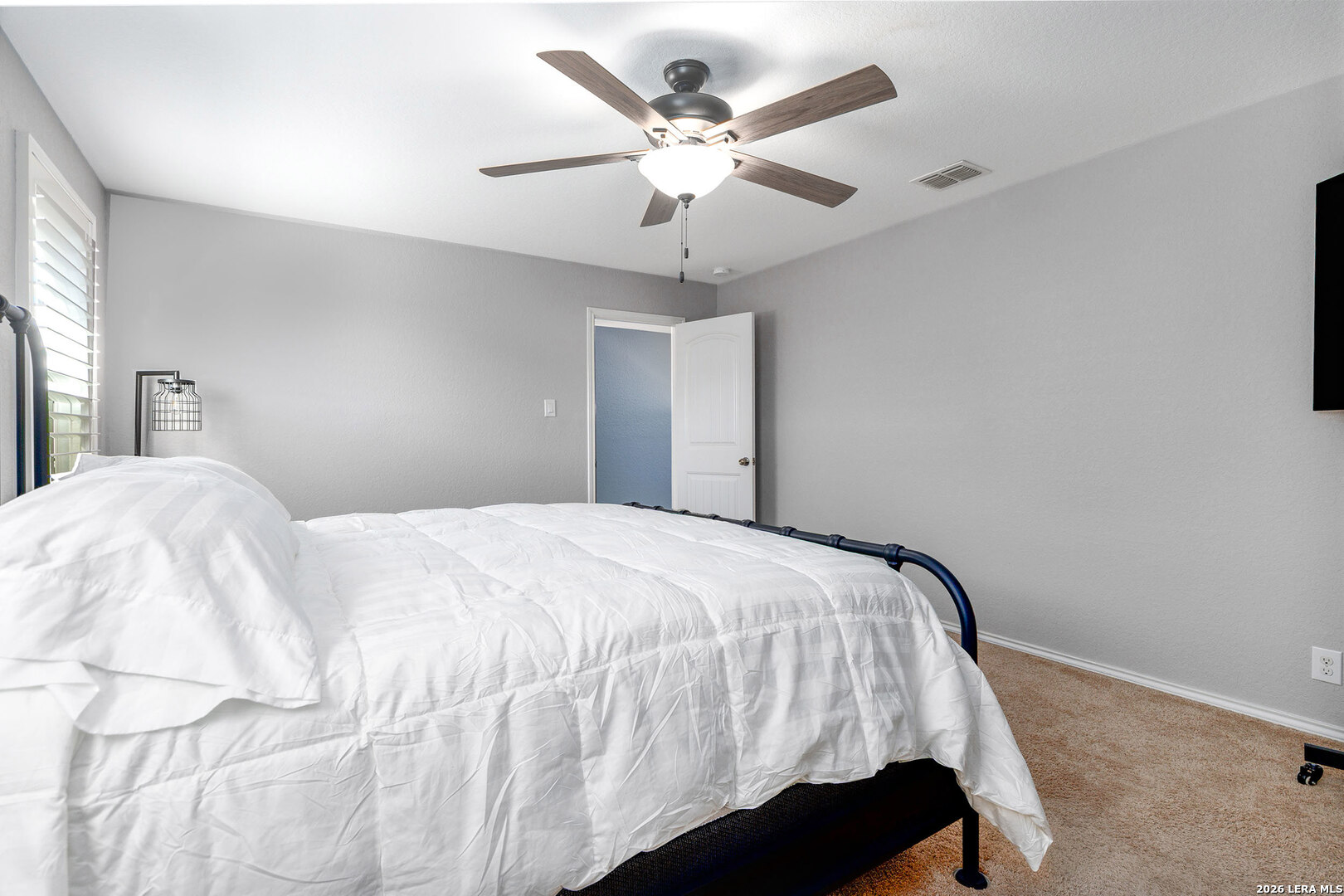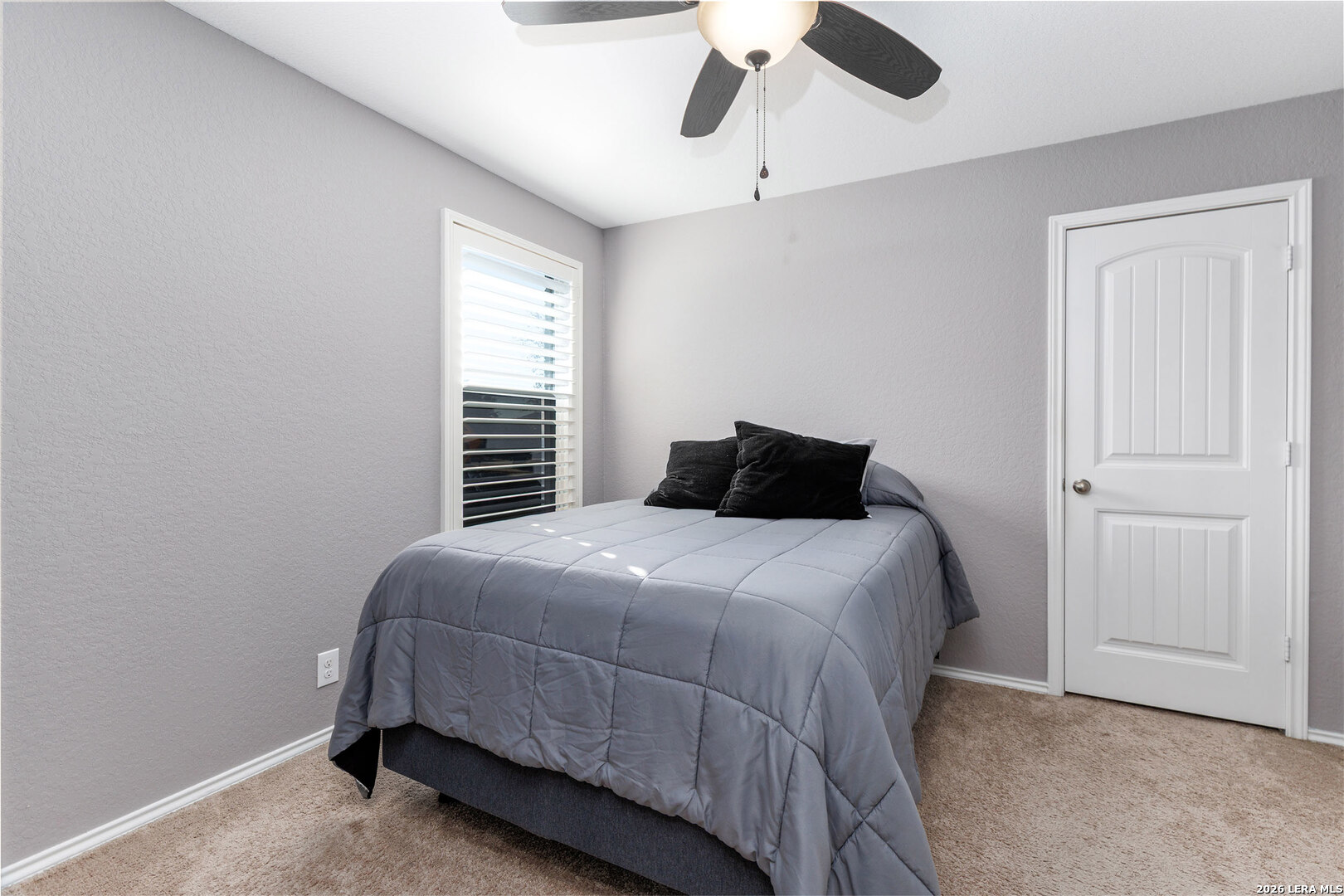 Well-maintained single-story home situated on a corner lot in Redbird Ranch. The property offers an open-concept floor plan with a spacious kitchen featuring a large island, stainless steel appliances including refrigerator, and a beverage refrigerator. Ceiling fans are installed in all bedrooms and the main living area. Windows include partial tinting and shutters. Both front and rear entry doors are equipped with storm doors. Recent updates include a roof replaced in 2025 with a transferable 5-year labor warranty. Additional features include a water softener, in-ground sprinkler system both front and back yard, washer and dryer, and two mounted flat-screen televisions located in the front bedrooms. A gated side entrance provides direct backyard access from the street, allowing for flexible outdoor use. The home is located near neighborhood amenities, including a pool and playground within walking distance. A third community amenity center is currently under construction and, upon completion, is planned to include additional pools, basketball courts, playgrounds, and tennis courts. The property is centrally located among all three amenity centers. Convenient access to H-E-B, shopping, dining, and major roadways. A Santikos Movie Theatre is currently under construction near H-E-B.