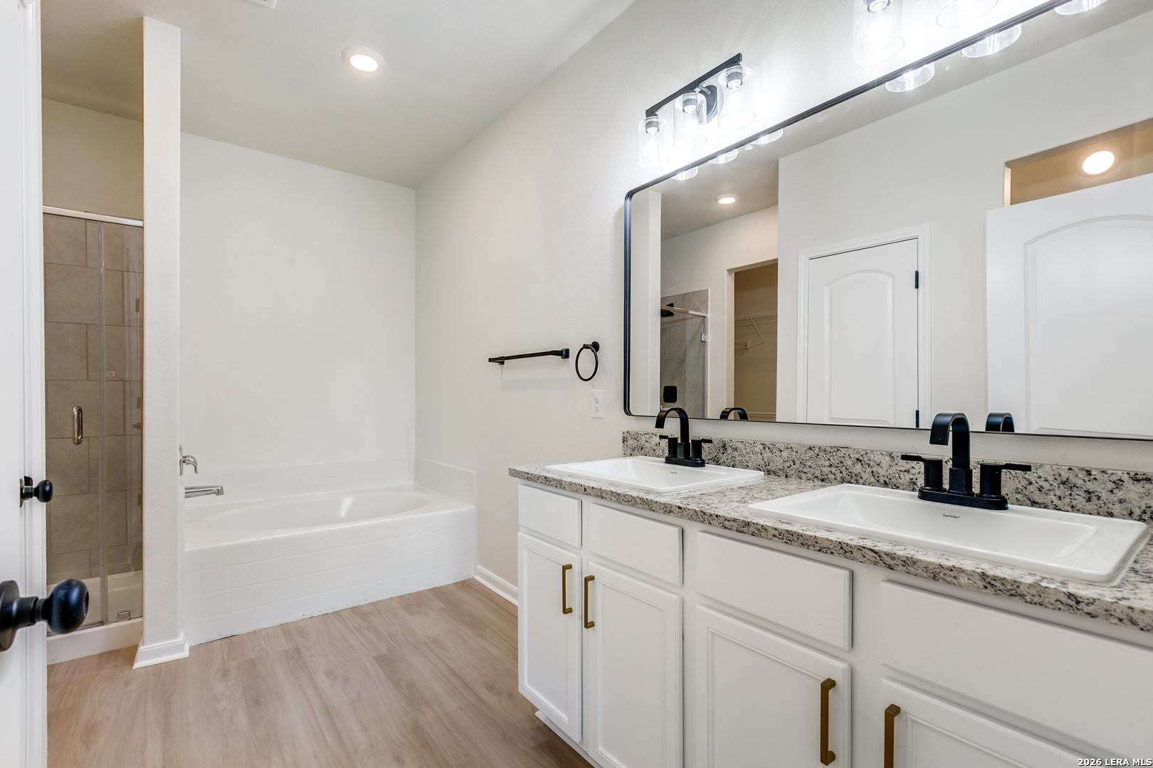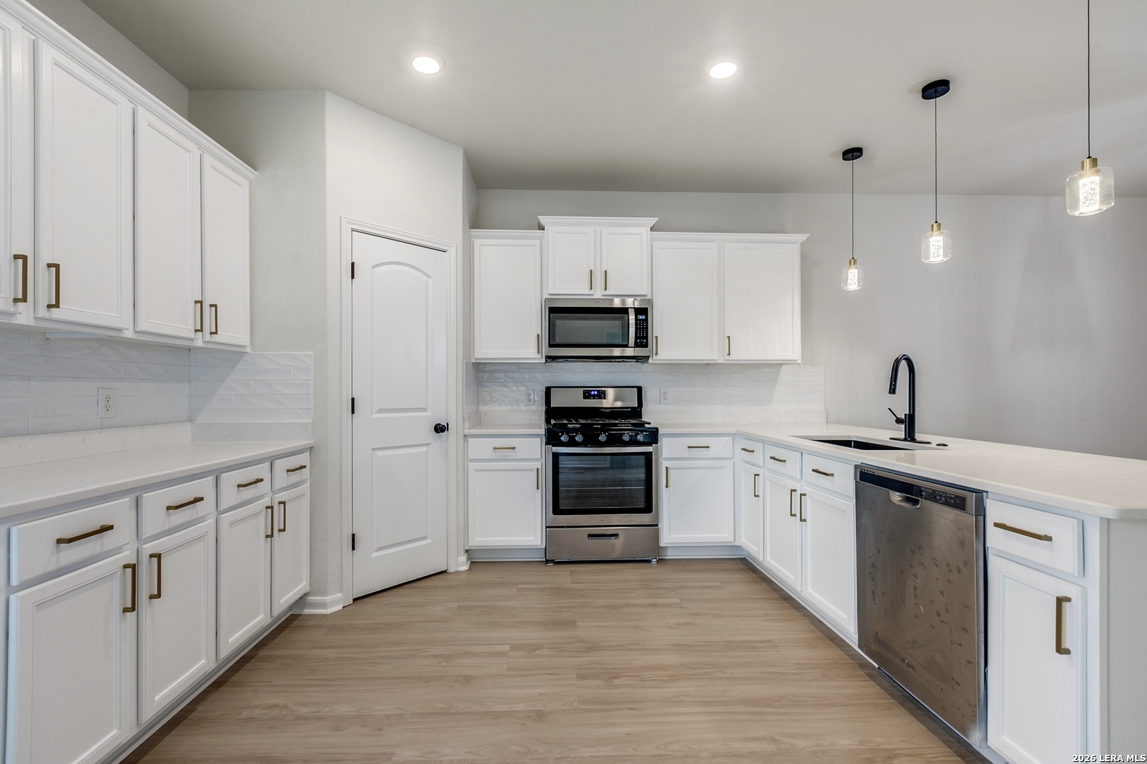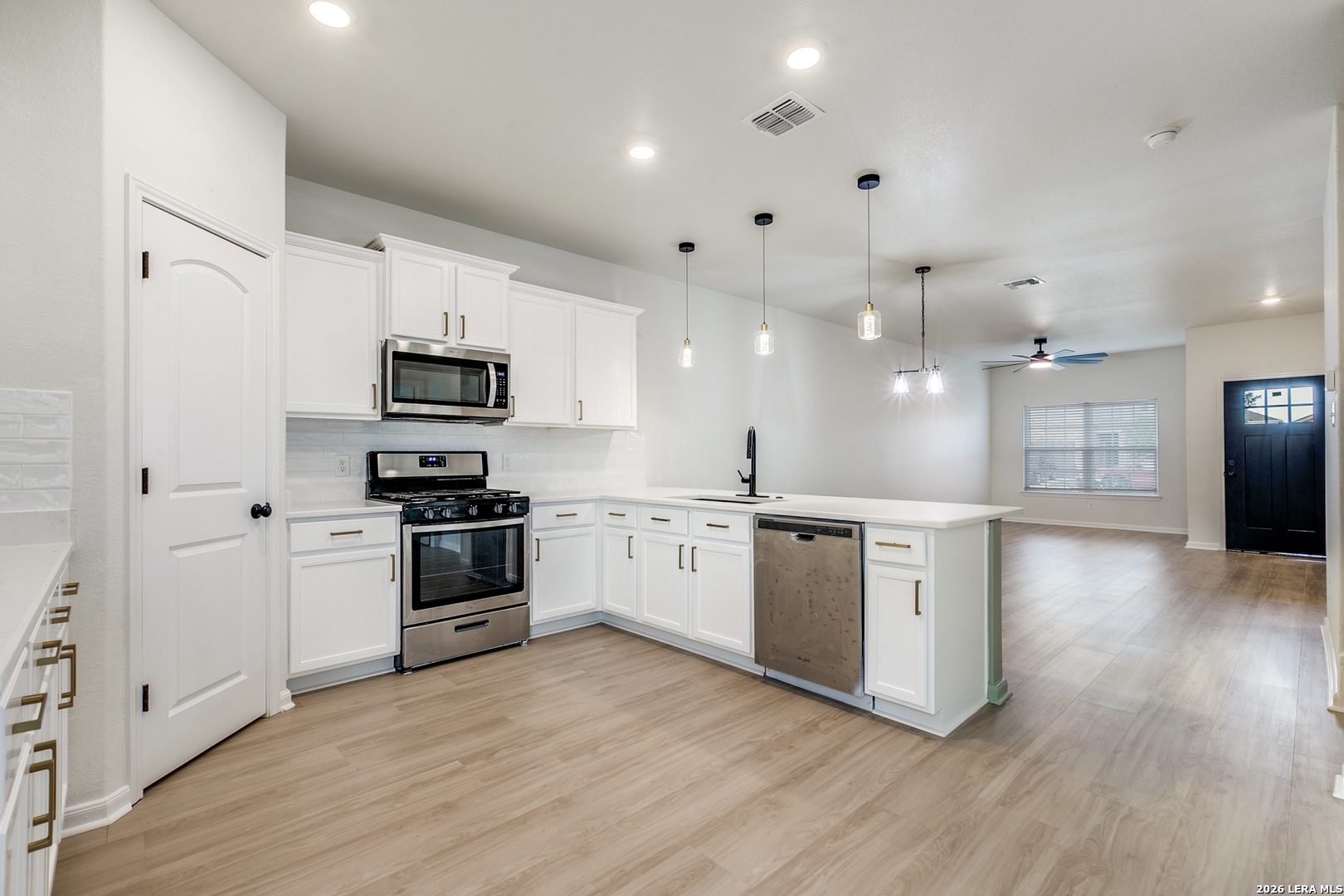 Beautifully renovated 2-story home featuring 5 bedrooms, 2.5 baths, and a 2-car garage. Fresh interior paint and new luxury vinyl plank (LVT) flooring throughout create a clean, modern feel. The open-concept layout offers great flow for everyday living and entertaining. The updated kitchen includes brand new quartz countertops, refreshed cabinetry, stainless steel appliances, gas cooking, and new light fixtures. Bathrooms have been upgraded with new vanities and modern plumbing fixtures. Upstairs features a spacious game room, providing flexible living space for a media room, office, or play area. Exterior improvements include refreshed landscaping for added curb appeal. Priced over $40,000 below tax appraisal value, offering a great opportunity for instant equity. Move-in ready with convenient access to major highways, shopping, dining, and a short commute to San Antonio.