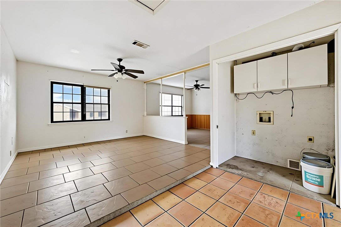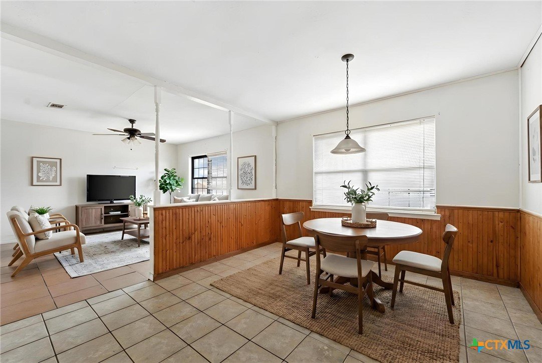 This property is best suited for investors, renovation, or flip opportunities and is being offered for cash or conventional financing only. Single-story ranch-style home featuring 4 bedrooms and 2 bathrooms with a functional layout and strong potential for upgrades or investment. The spacious living area offers abundant natural light and durable tile flooring that flows into the kitchen and dining space, complete with ample cabinetry, breakfast bar seating, and efficient workspace. Bedrooms include wood-look laminate flooring, and the bathrooms feature tile surrounds and classic fixtures ready for personalization. A dedicated utility area provides washer/dryer connections, while the covered carport adds convenient parking and storage. The generously sized backyard offers plenty of space for outdoor living, pets, or future improvements.