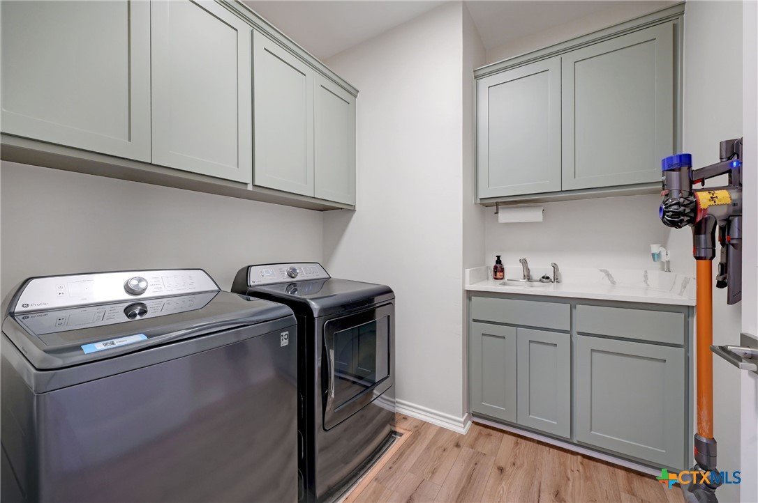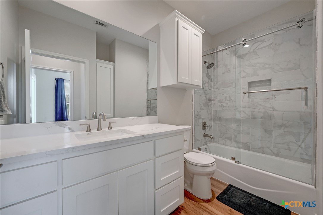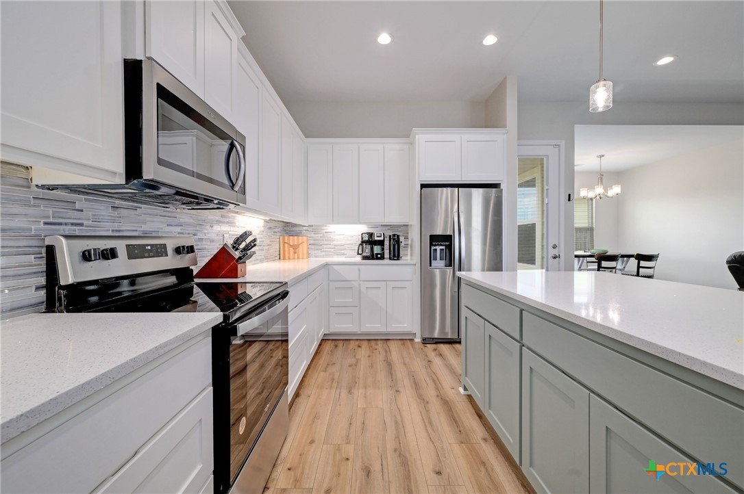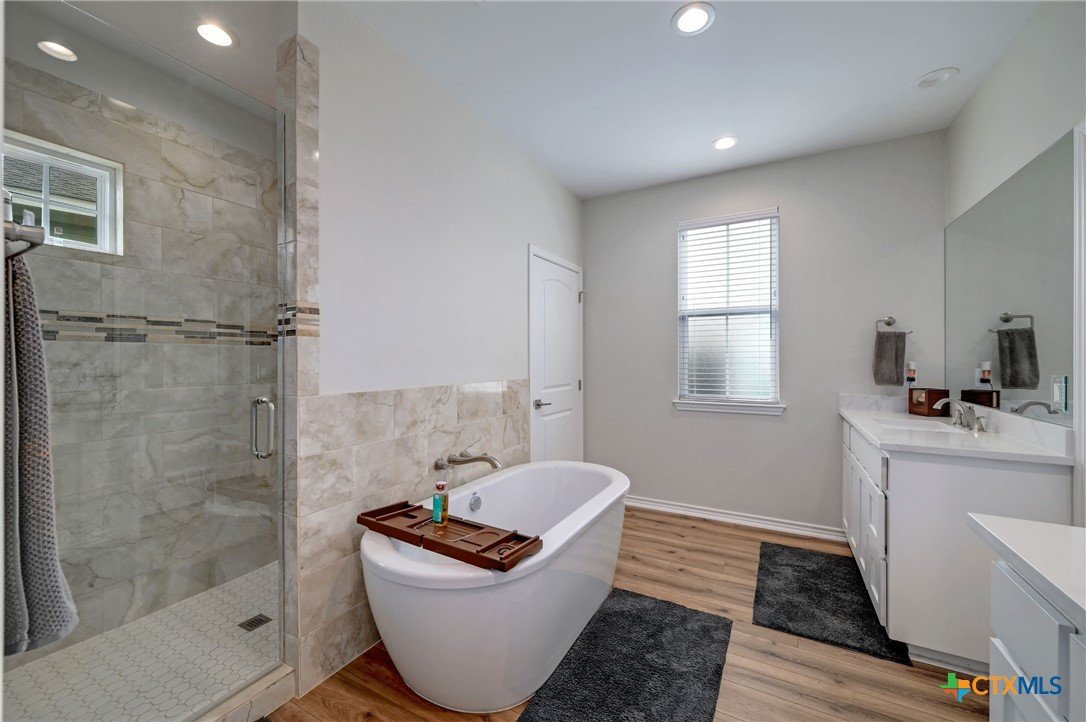 Built in 2021 & thoughtfully upgraded since, this stunning home in Granite Shoals offers modern living just minutes from the peaceful shores of Lake LBJ, perfect for embracing the laid-back lakeside lifestyle. Set on a quarter-acre corner lot, the home boasts a bright & updated interior with features like newly installed luxury vinyl & carpet flooring, an open-concept kitchen with granite countertops, stainless steel appliances, & a reverse osmosis drinking system, all part of the whole-house Brita water filtration & softener system. The split floor plan provides privacy with the spacious primary suite situated at the rear of the home. The luxurious primary bath includes a frameless glass shower, large stand-alone soaking tub, dual vanities, & two walk-in closets. Two additional guest bedrooms, bonus room, & a large laundry room provide convenience & comfort for the whole household. Outside, enjoy a covered patio, a Tuff Shed for extra storage, and an in-ground basketball goal for outdoor activities. Ideally located in Granite Shoals, a community known for its access to Lake LBJ, residents enjoy endless recreational opportunities like boating, fishing, and swimming at the many nearby waterfront parks. Quarry Park’s walking trails, sport courts, & birdwatching also add to the area’s active, outdoor lifestyle. Whether you’re seeking a full-time residence or a weekend getaway, this property offers the perfect blend of comfort & convenience near the natural beauty and recreation of Lake LBJ. Schedule a showing today!