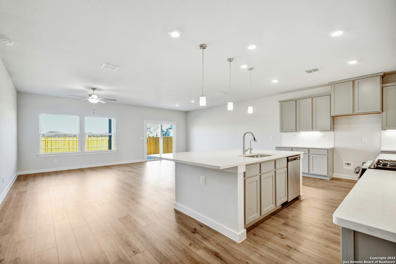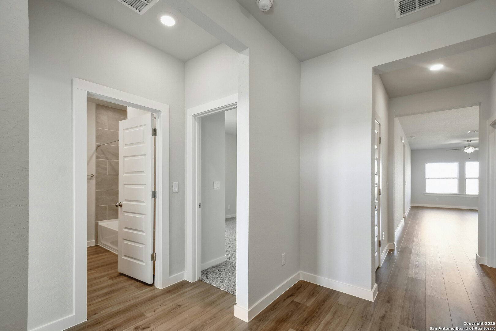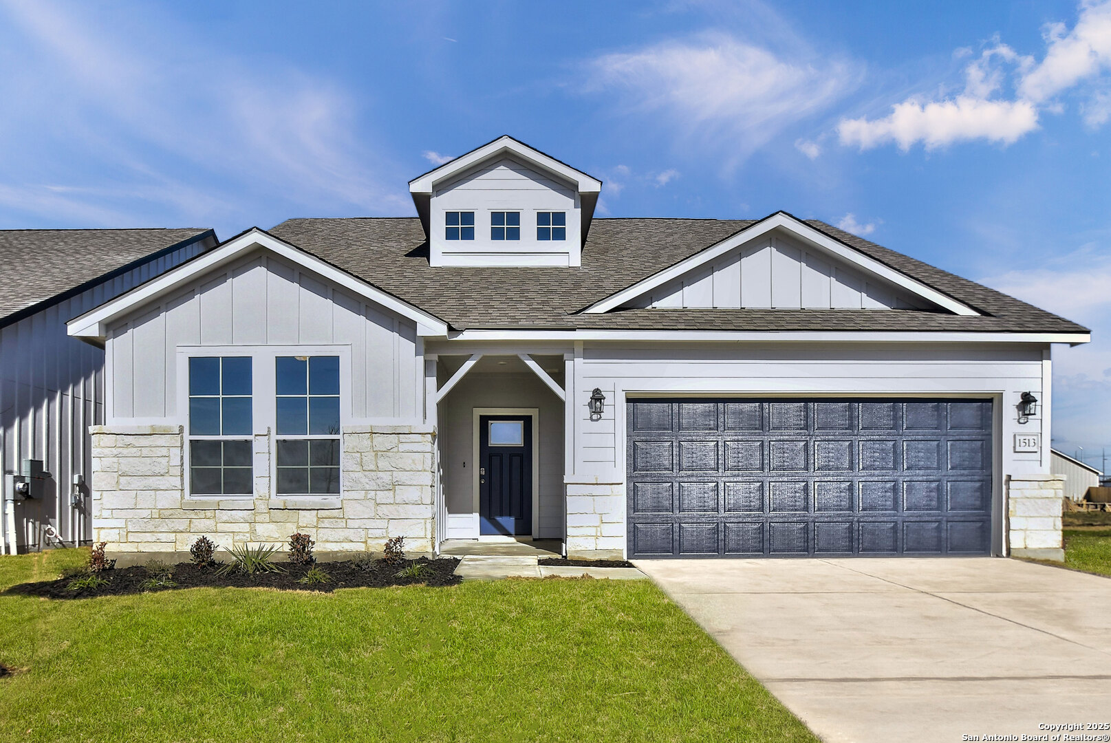 Discover 1513 Passmore Downs, nestled in the picturesque community of Weltner Farms in New Braunfels, TX. This Texas-sized home offers the perfect blend of peaceful hill country living and upscale finishes. Key Features Spacious Design: The grand foyer invites you into the heart of the home, where natural light highlights the open-concept layout, seamlessly blending the kitchen and living room. At the heart of the home, you'll find a large kitchen, ideal for hosting, featuring gas appliances, a walk-in pantry, and an oversized rear covered patio complimented by no rear neighbors. Thoughtful Lifestyle Options: Designed for comfort, this floorplan places the guest bedrooms at the front of the home, while the primary suite is privately situated at the back. Additional thoughtful features include a drop-off station at the garage and a rear covered patio. Luxurious Owner's Retreat: The primary suite features a walk-in closet with custom organization, along with a walk-in shower, dual sinks, and plenty of counter space. Schedule a tour to visit 1513 Passmore Downs, nestled in the picturesque of Weltner Farms, in New Braunfels, TX, boasting a low tax rate as well as easy access to top-rated Comal ISD schools, the Guadalupe River, Schlitterbahn, charming boutiques, unique restaurants, and endless entertainment!