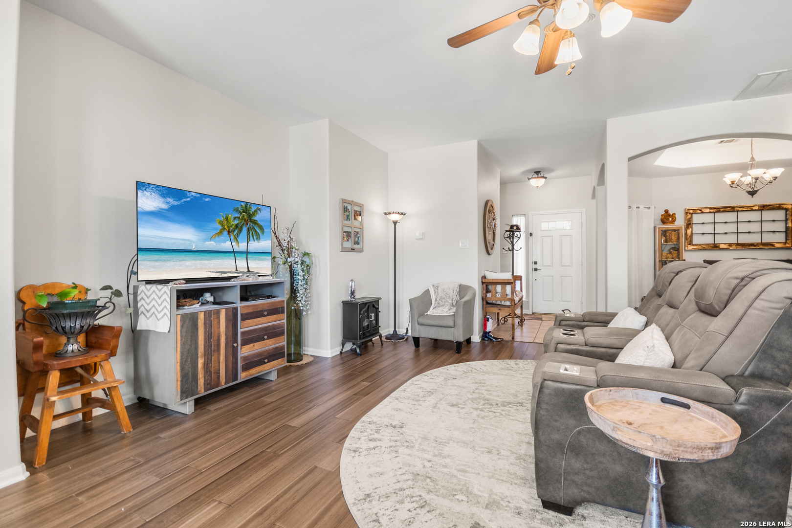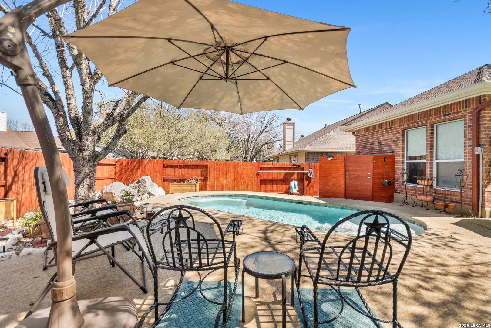 Located in the highly desirable Stone Oak area of San Antonio and zoned to sought-after North East ISD, this beautifully updated one-story home offers 3 bedrooms, 2 baths, and a private backyard retreat designed for year-round enjoyment. Nestled on a quiet street in the heart of the neighborhood and just minutes from Stone Oak Elementary, this home blends comfort, style, and convenience. Step inside to discover extensive recent upgrades throughout. Bamboo flooring (2023) flows through the living spaces, complementing the remodeled kitchen featuring stunning quartz countertops (2024). The primary bath has been refreshed with new counters, vessel sinks, and upgraded lighting (2024), creating a spa-like feel. Major system updates provide peace of mind, including a roof and gutters (2022), water softener and reverse osmosis system (2022), updated water heater and pressure regulator (2024), whole-house surge protector with replaced outlets and switches (2023), updated hardware (2025), and a new garage opener with keypad (2026). Windows have been recently resealed for added efficiency. The backyard is truly the highlight - a gorgeous in-ground swimming pool and patio installed in 2023 create the perfect space for entertaining or relaxing. The north-side fencing with gates (2022) adds privacy and functionality on the .15-acre lot. Ideal for first-time homebuyers, empty nesters, families, or couples looking for a move-in-ready home in one of San Antonio's most sought-after communities. Extensive updates throughout - see feature list in MLS attachments. Pool and patios installed 2023. Roof 2022. North side fencing with gates 2022. Water softener & RO system 2022. Bamboo floors 2023. Kitchen remodel w/ quartz 2024. Primary bath updates 2024. Updated water heater & pressure regulator 2024. Updated hardware 2025. Garage opener & keypad 2026. Windows recently resealed. Please verify schools and room measurements.