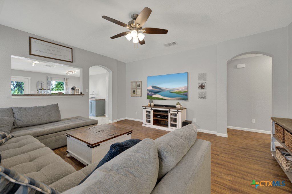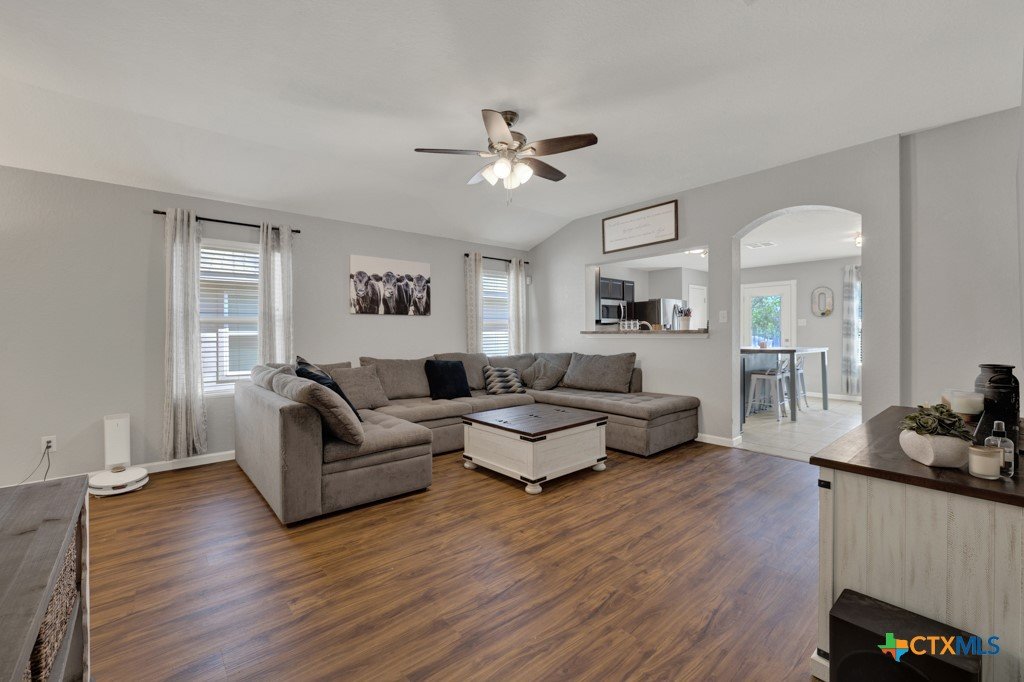 This well-maintained 4-bedroom, 2-bath home offers a spacious and functional layout perfect for comfortable living. The open-concept design seamlessly connects the living, dining, and kitchen areas—ideal for both everyday life and entertaining. The primary suite provides a relaxing retreat, while three additional bedrooms offer flexibility for family, guests, or a home office. Complete with a 2-car garage and conveniently located near local schools, shopping, and easy access to major highways, this home is a must-see! Kitchen Refrigerator, Kitchen Island, kitchen buffet, White coffee bar in kitchen, Security cameras, Propane fire pit & porch swing all convey.