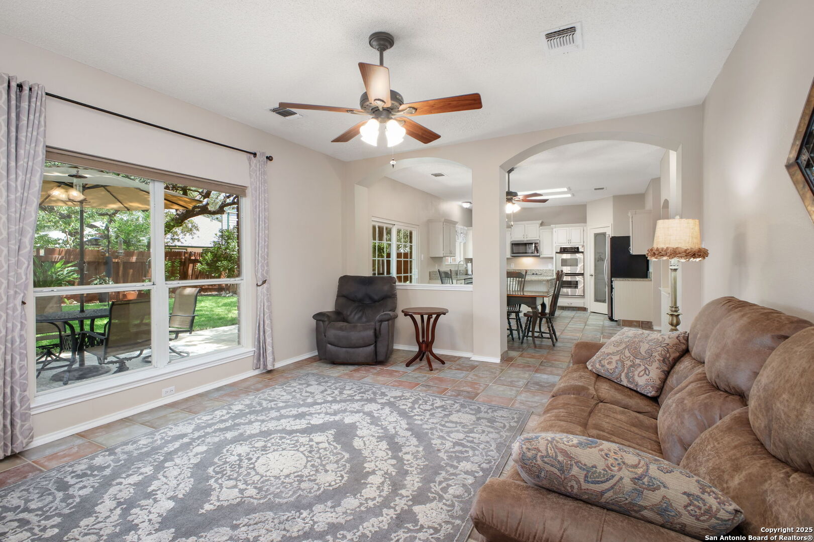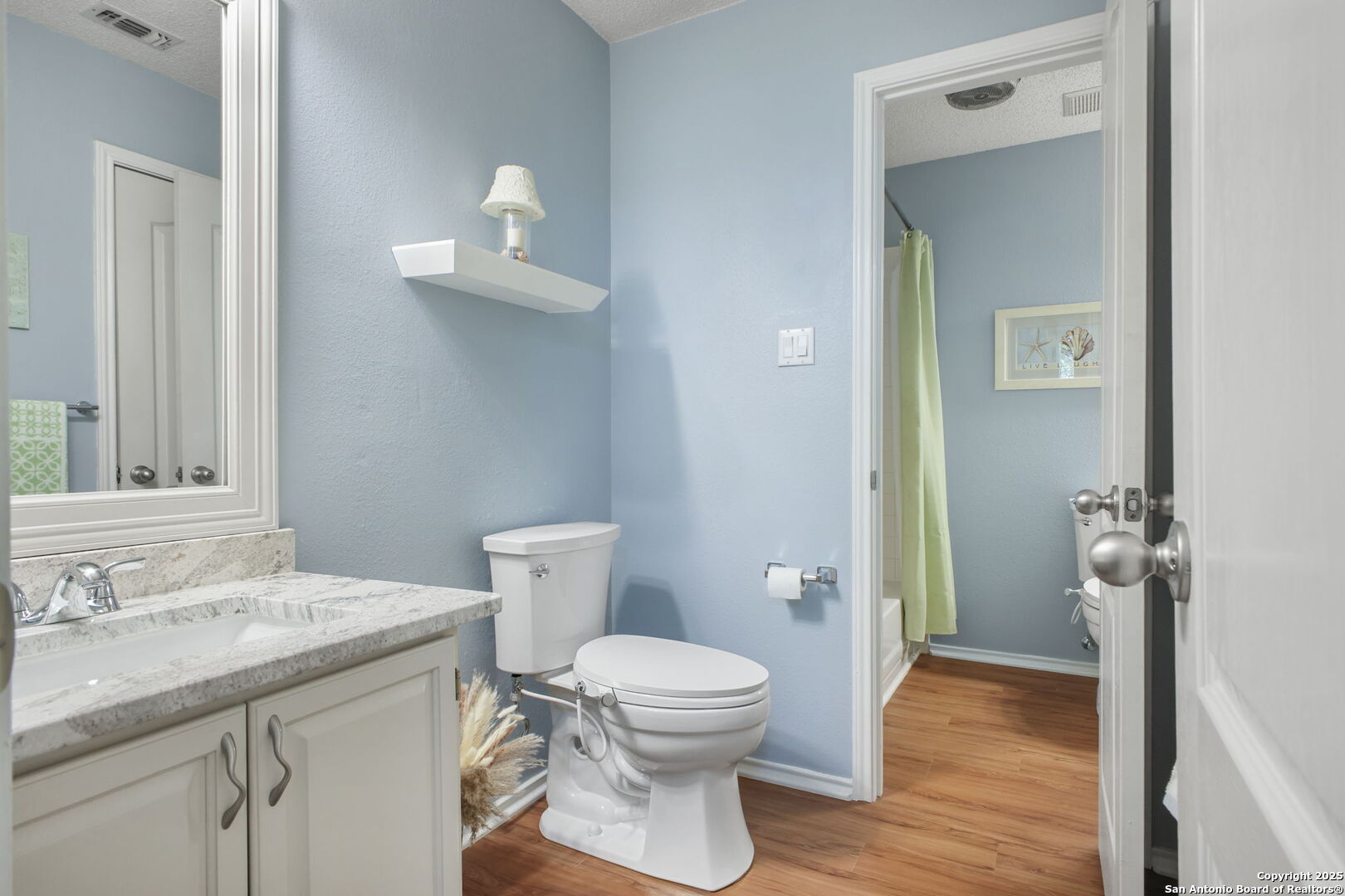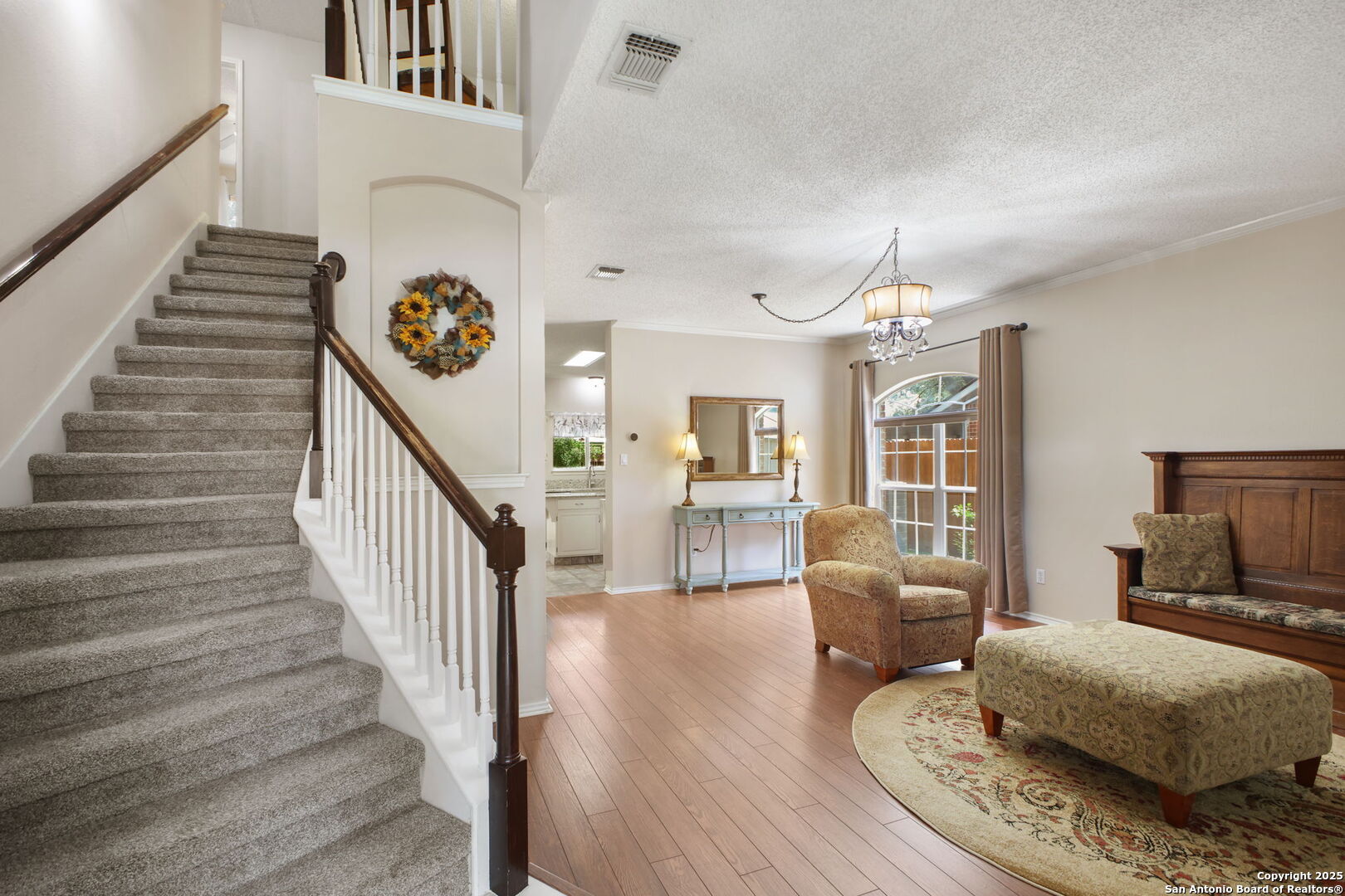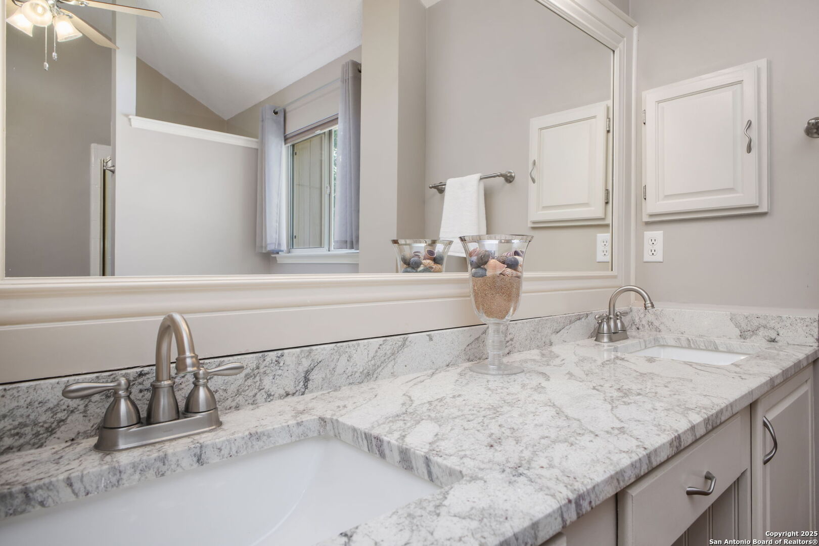 Stop the car! This is the one you have been waiting for! Pride of ownership is very apparent with this beautifully maintained home just moments from McAllister Park! 15218 Preston Court Drive offers upgraded finishes, a smart layout, and inviting spaces inside and out. The main level flows effortlessly from a welcoming entry into light-filled living and dining areas, perfect for everyday life and relaxed entertaining. The kitchen features an island and multiple windows for a view of the tranquil backyard, where an extended patio and mature trees create a shady retreat for morning coffee or weekend cookouts. All four bedrooms are tucked upstairs for privacy, along with the utility room for easy laundry days. Well-chosen upgrades throughout the home add a sense of style and comfort you can feel the moment you walk in. HEB, Pizza Italia, Evil Olive and so much more shopping and dining literally minutes away! Awesome access to 1604/281 and I35, great commuter routes, this home blends convenience with the calm of a well-loved neighborhood. Come see the balance of comfort and location that makes this property stand out.