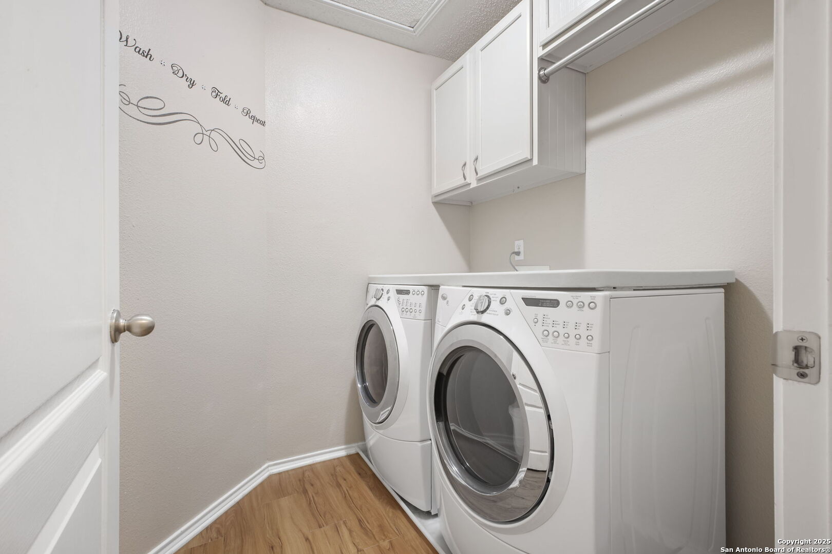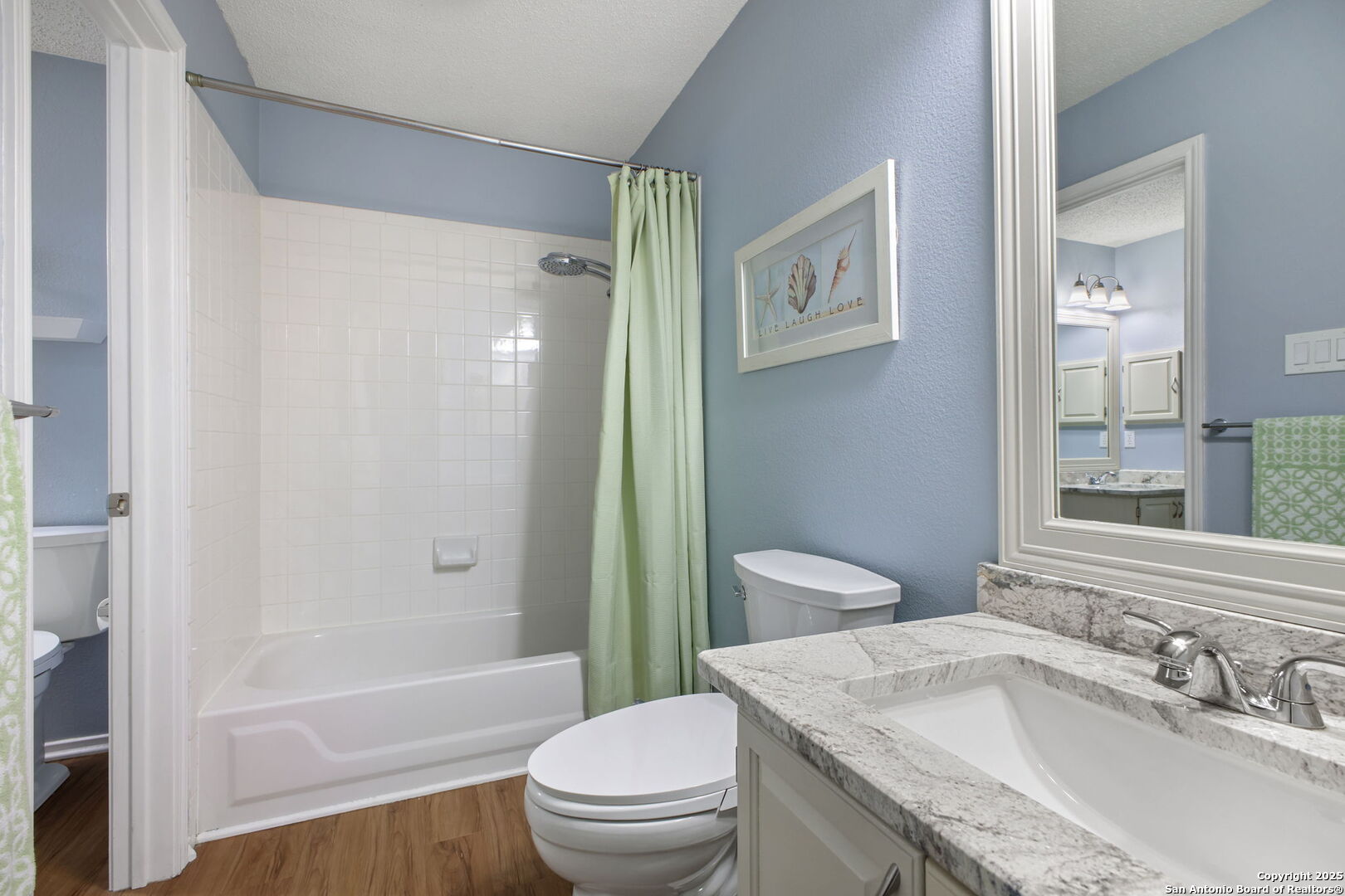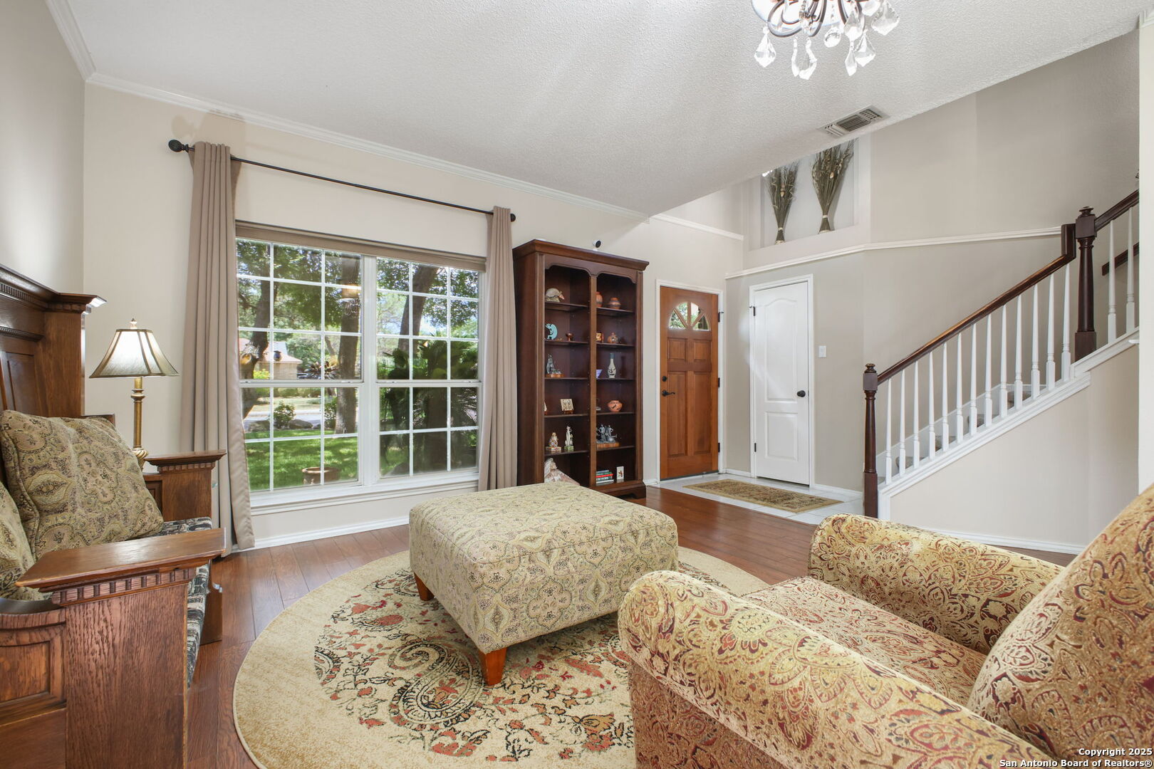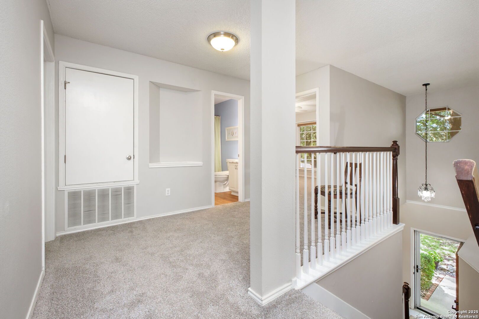 Stop the car! This is the one you have been waiting for! Pride of ownership is very apparent with this beautifully maintained home just moments from McAllister Park! 15218 Preston Court Drive offers upgraded finishes, a smart layout, and inviting spaces inside and out. The main level flows effortlessly from a welcoming entry into light-filled living and dining areas, perfect for everyday life and relaxed entertaining. The kitchen features an island and multiple windows for a view of the tranquil backyard, where an extended patio and mature trees create a shady retreat for morning coffee or weekend cookouts. All four bedrooms are tucked upstairs for privacy, along with the utility room for easy laundry days. Well-chosen upgrades throughout the home add a sense of style and comfort you can feel the moment you walk in. HEB, Pizza Italia, Evil Olive and so much more shopping and dining literally minutes away! Awesome access to 1604/281 and I35, great commuter routes, this home blends convenience with the calm of a well-loved neighborhood. Come see the balance of comfort and location that makes this property stand out.