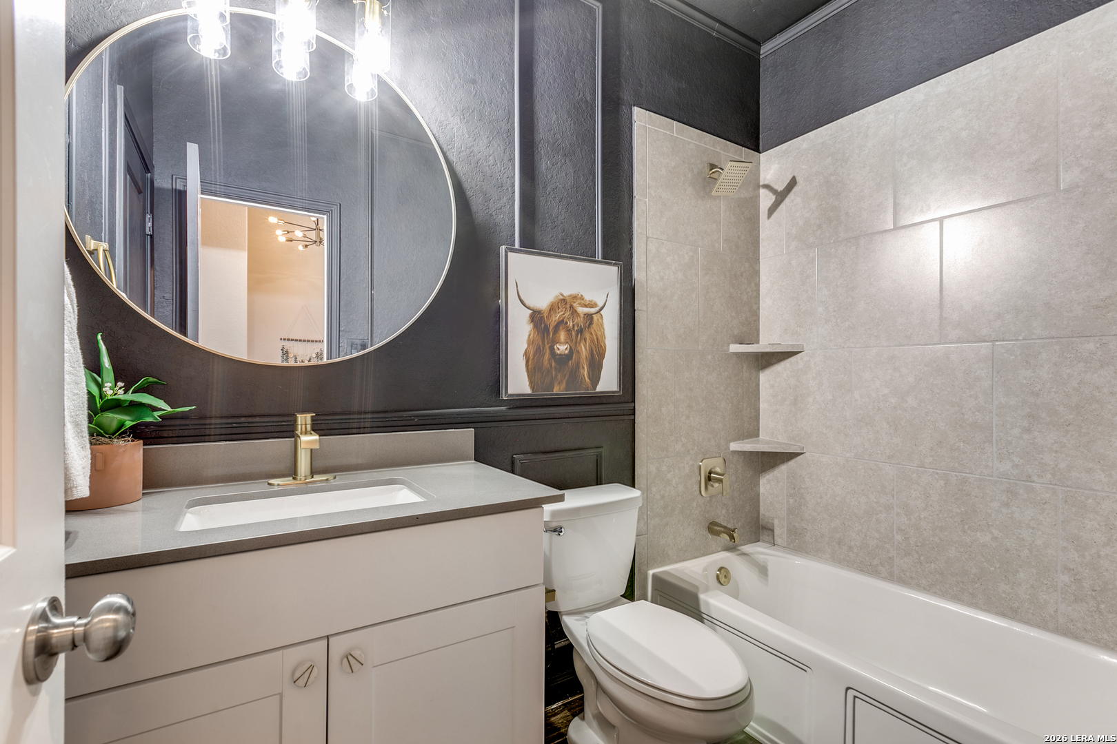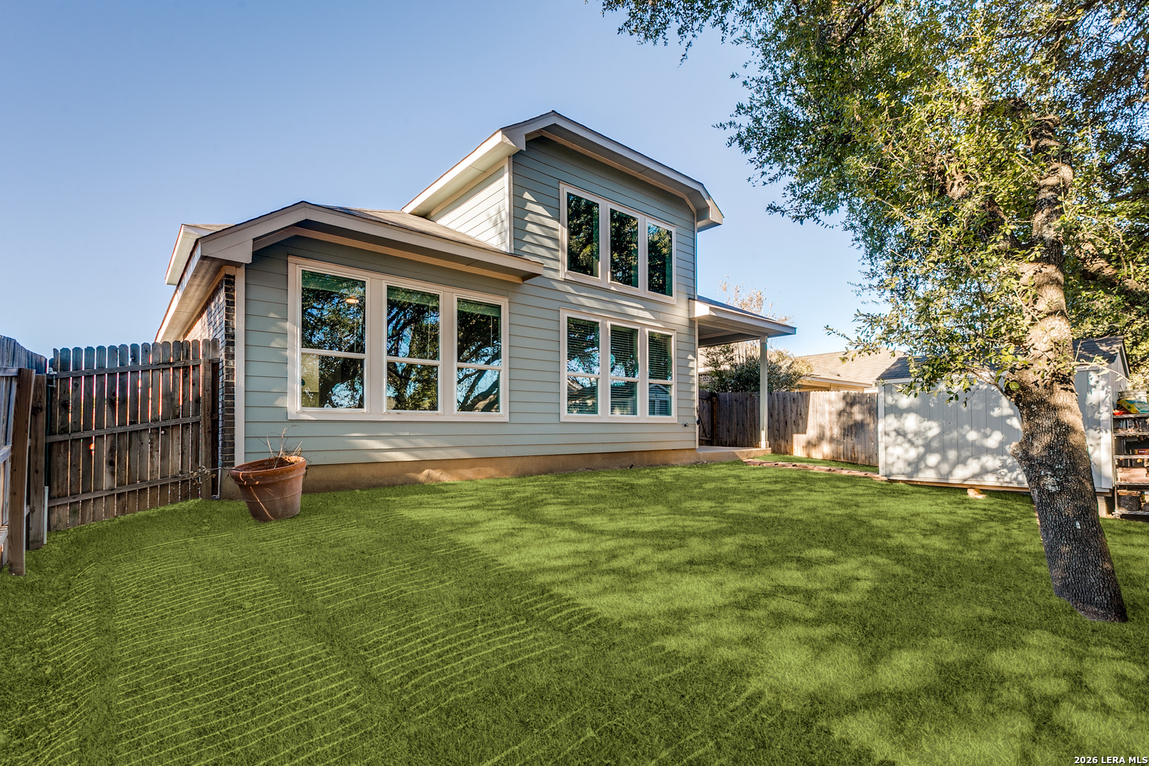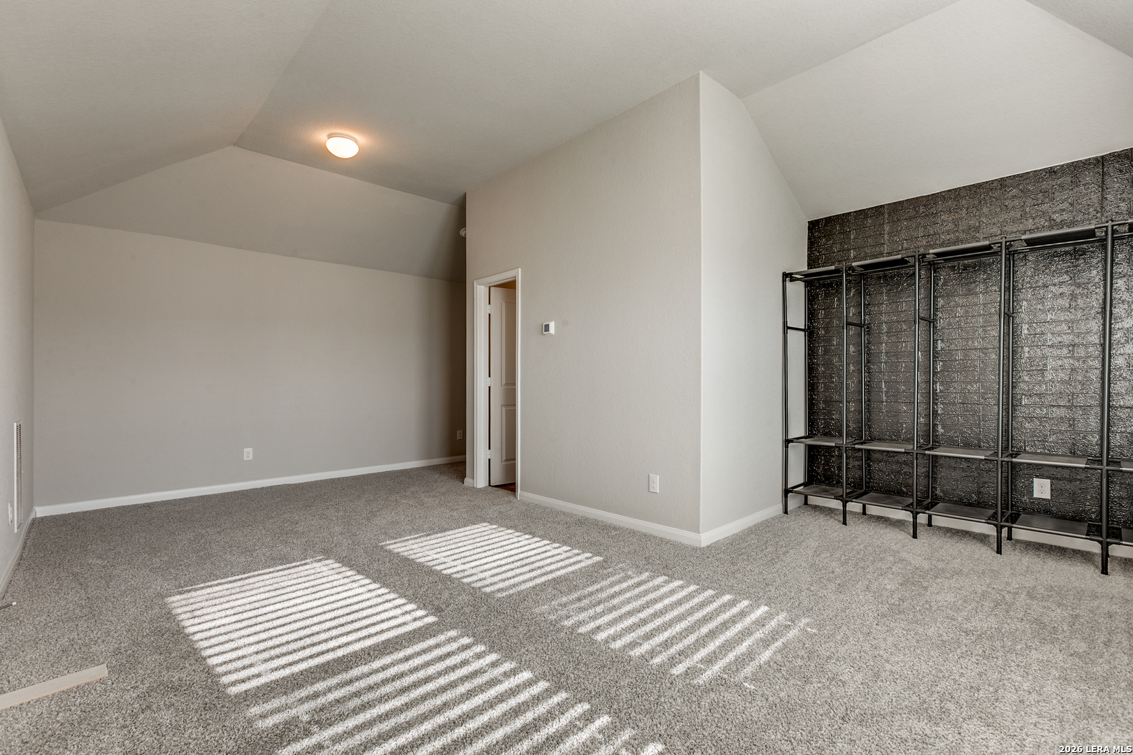 Experience refined living in this stunning primarily single-story residence, built in 2020 and offering 2,632 square feet of thoughtfully curated space with 4 bedrooms and 4 full bathrooms. From the moment you enter, you're greeted by soaring ceilings and an airy, elegant ambiance that sets the tone for the home. At the front, two spacious secondary bedrooms are positioned with a beautifully appointed full bath conveniently located between them. Further down the hall, you'll find a third bedroom, an additional full bath, and a well-placed laundry room-designed with both comfort and functionality in mind. Privately tucked away at the far right wing of the home, the primary suite is a true retreat. Featuring elevated ceilings, generous proportions, a spa-inspired ensuite bath, and an expansive walk-in closet, this space offers tranquility and sophistication. The heart of the home is the open-concept living area, where a dramatic floor-to-ceiling accent wall with a sleek electric fireplace creates a striking architectural focal point. This inviting space seamlessly blends warmth and modern design-perfect for intimate evenings or elevated entertaining. Upstairs, a spacious game room with its own full bath offers versatility-ideal as a media lounge, private guest quarters, or an executive-level flex space-while preserving the convenience of primarily single-level living. Step outside to a backyard that includes a storage shed, adding practical functionality without compromising outdoor enjoyment. This residence effortlessly combines modern elegance, intentional design, and timeless comfort-crafted for those who appreciate both style and substance.