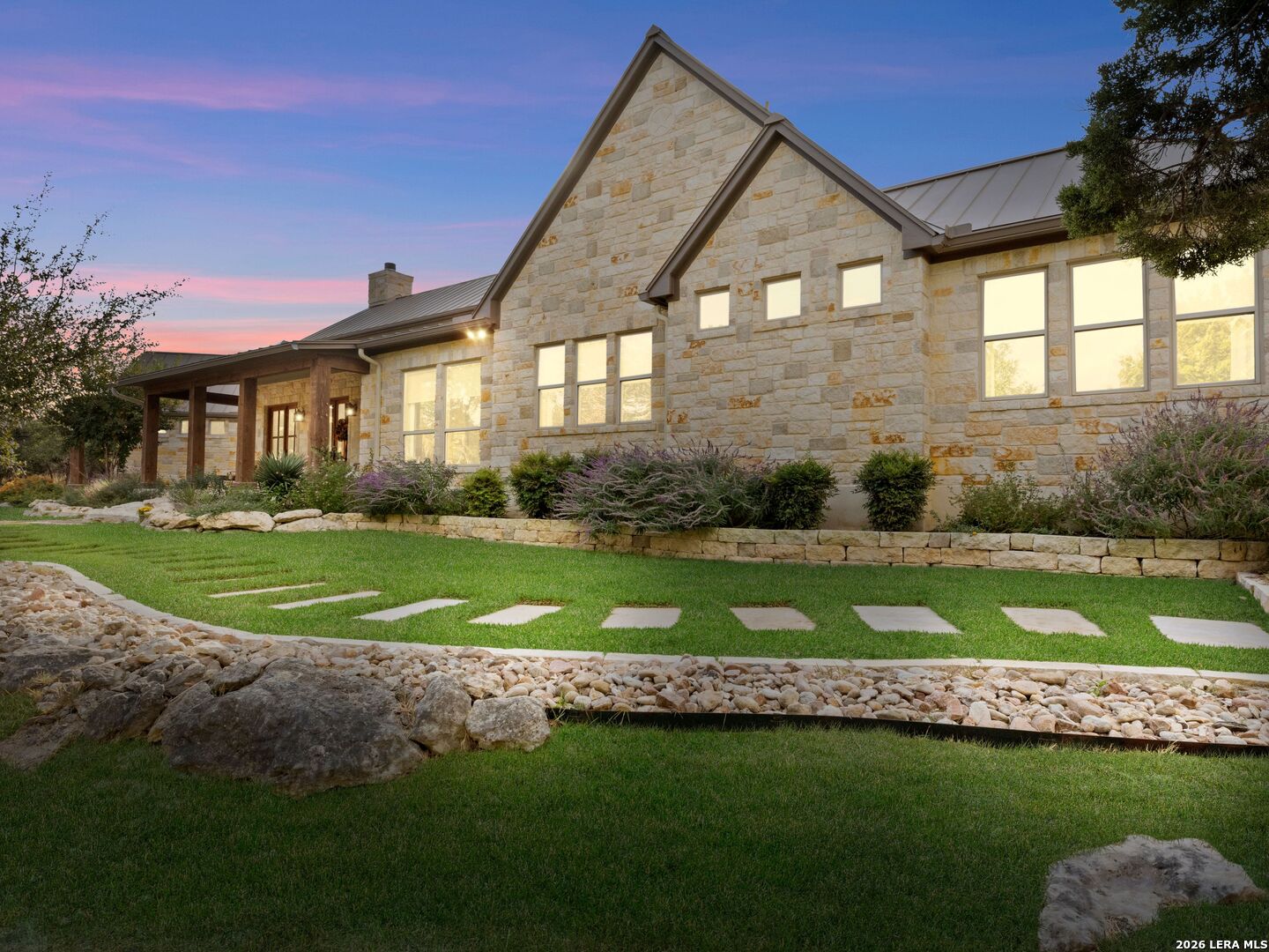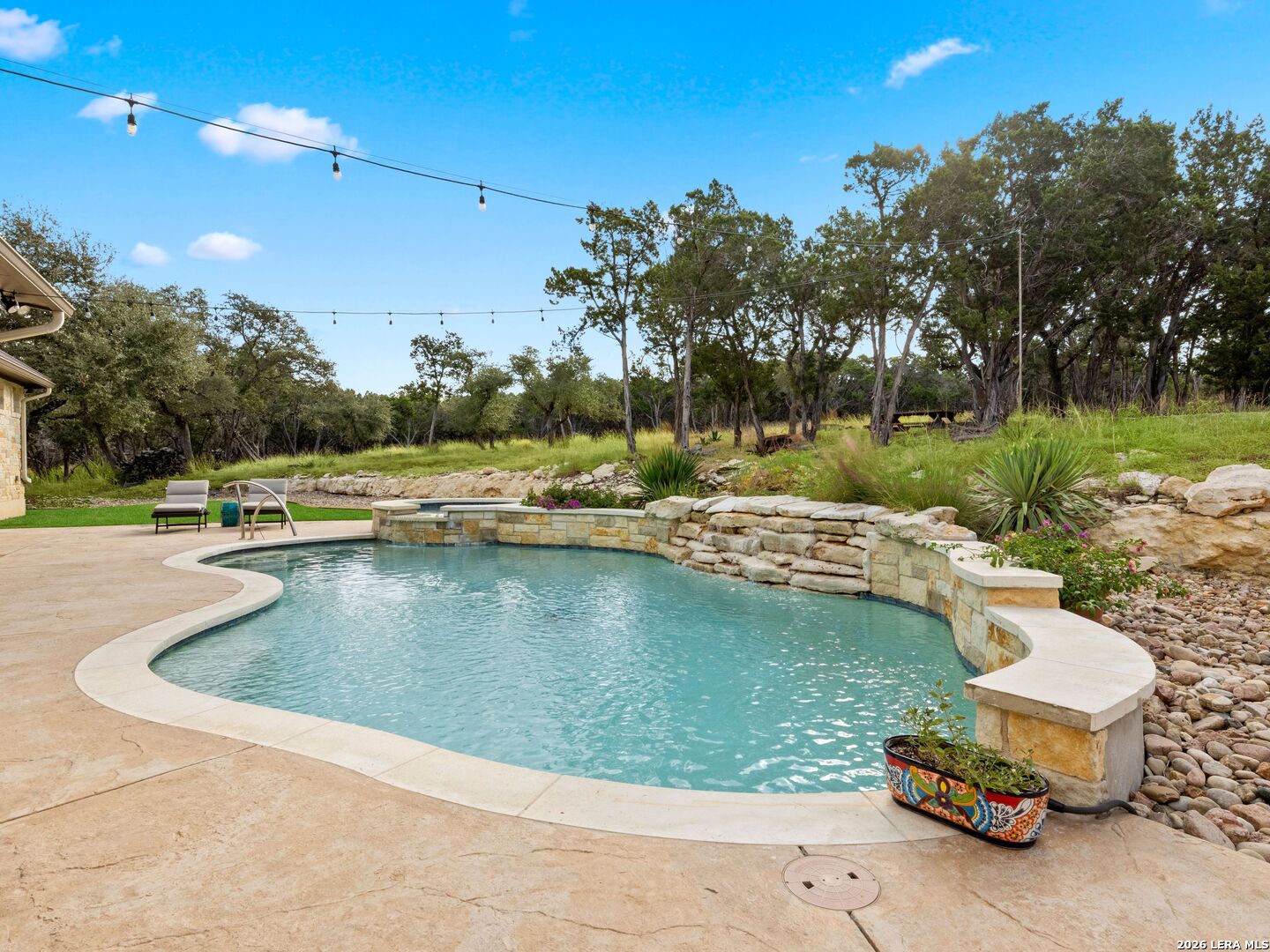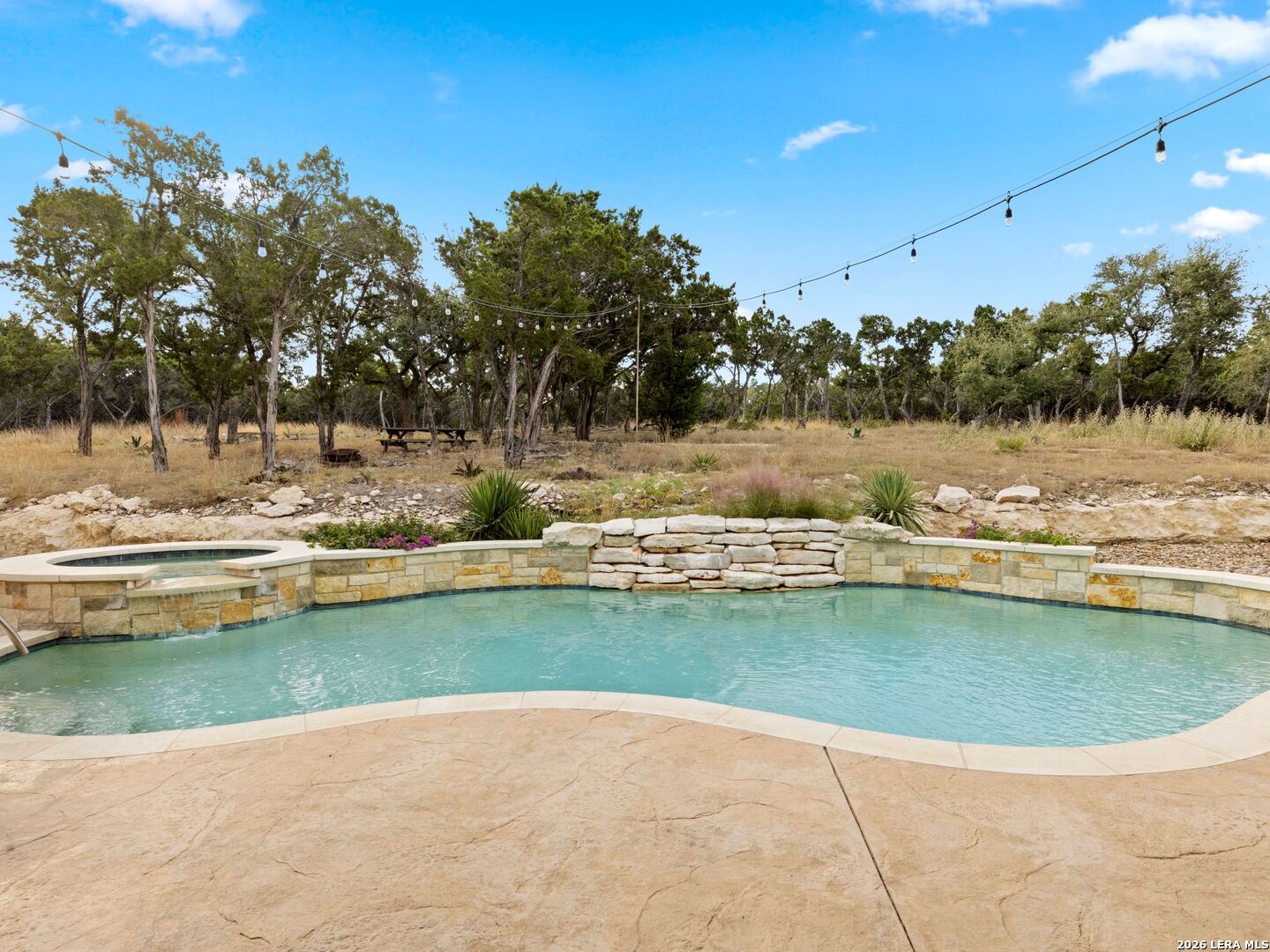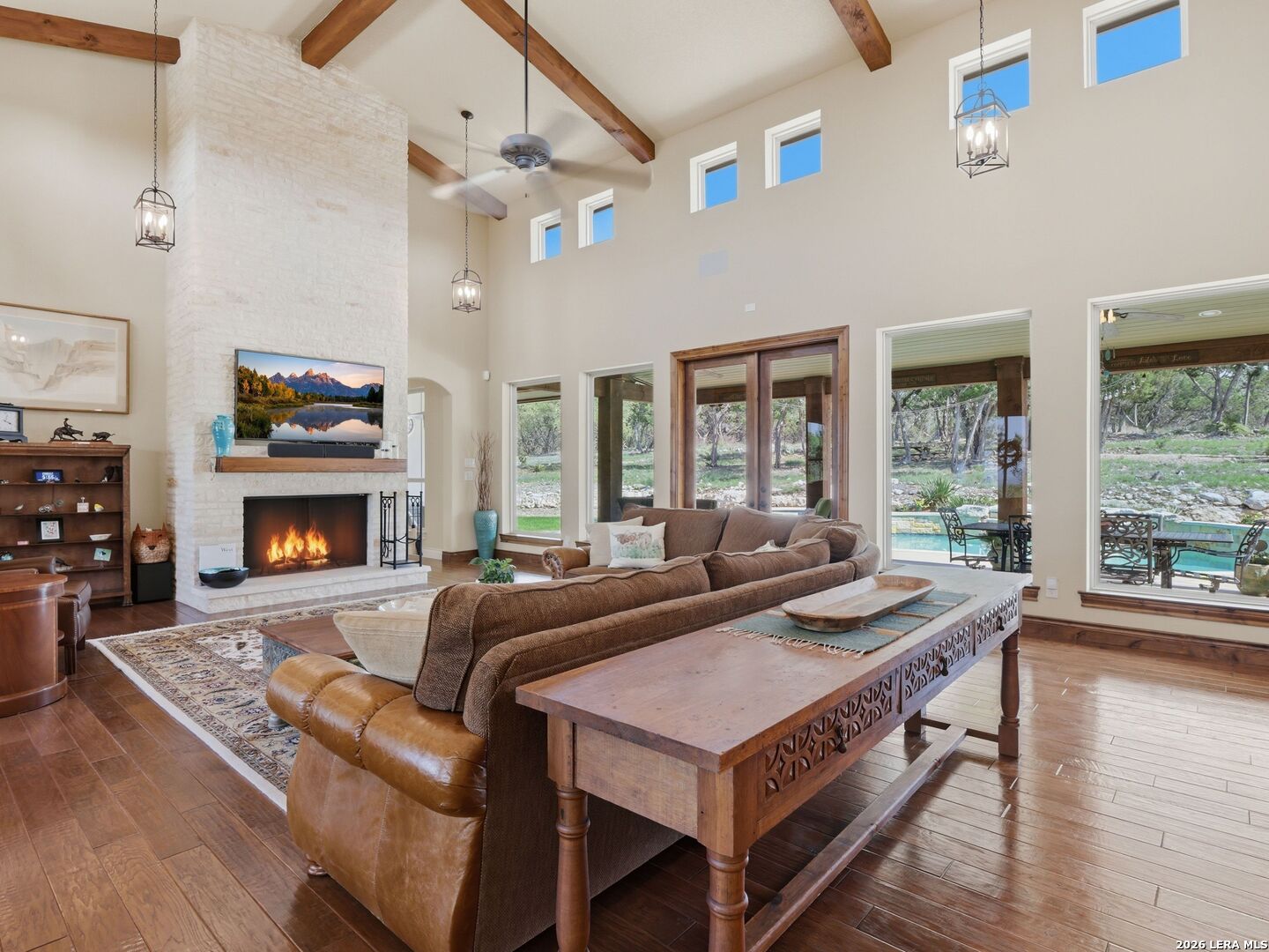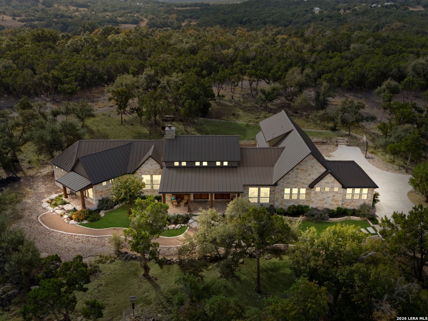 Picturesque Hill Country views with Twin Sisters visible in the distance set the tone for this 10+ acre retreat! Nestled along a scenic ridge in in the gated community of Rebecca Creek Ranches, this exceptional custom built home is filled with an abundance of natural light, perfectly framing the surrounding Hill Country vistas. Cathedral ceilings and wood beams accent a grand stone fireplace in the living room, while a spacious layout flows into a chef's kitchen with large island, Bosch appliances, and a five-burner gas cooktop. Outdoor living shines with a sparkling pool, waterfall, hot tub, expansive patio, and outdoor kitchen - perfect for entertaining or unwinding in total privacy. A rare blend of views, acreage, and lifestyle that's hard to find and even harder to leave!