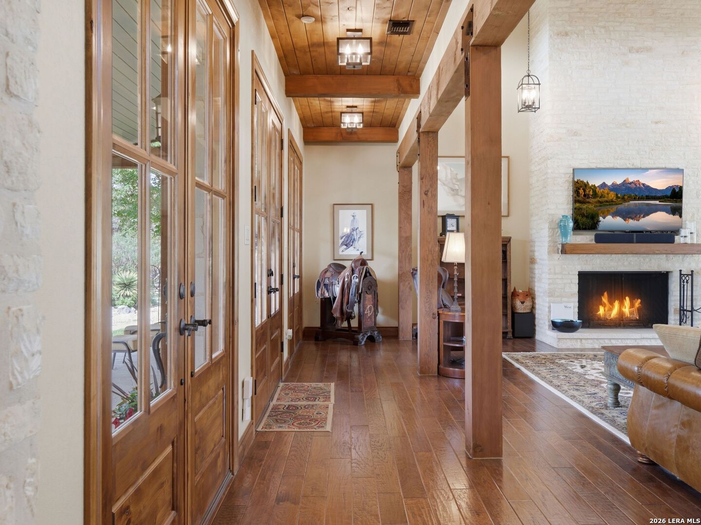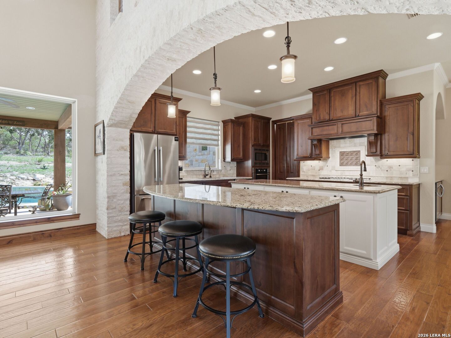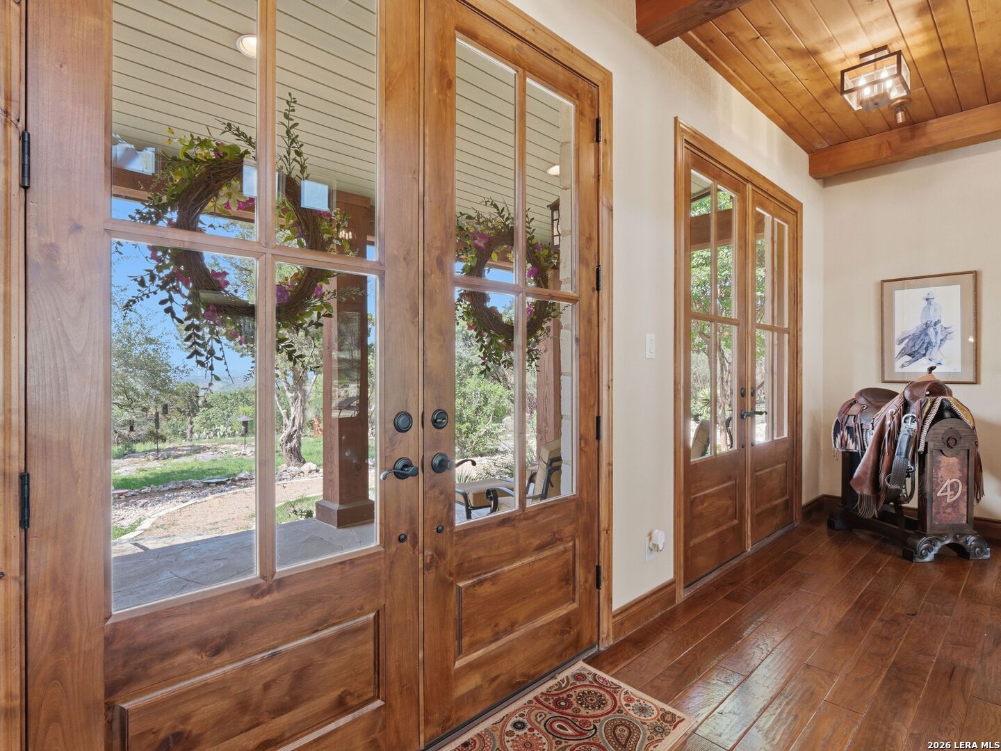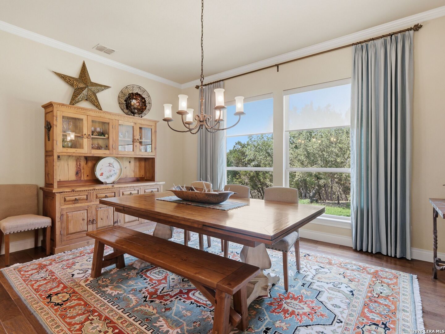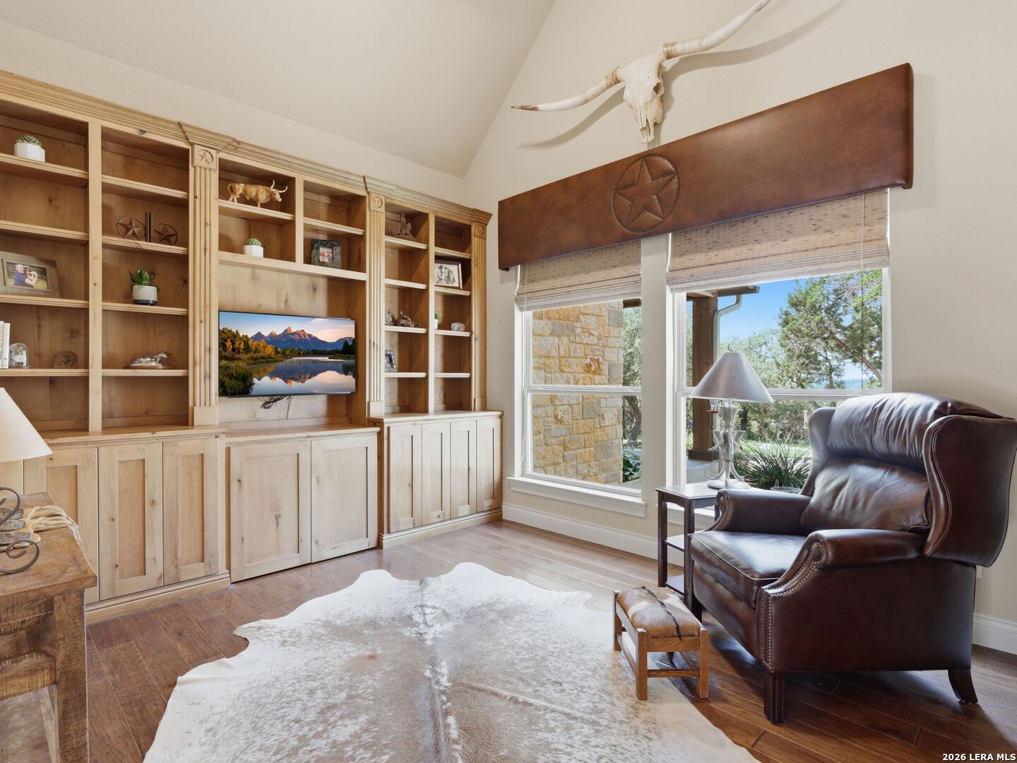 Picturesque Hill Country views with Twin Sisters visible in the distance set the tone for this 10+ acre retreat! Nestled along a scenic ridge in in the gated community of Rebecca Creek Ranches, this exceptional custom built home is filled with an abundance of natural light, perfectly framing the surrounding Hill Country vistas. Cathedral ceilings and wood beams accent a grand stone fireplace in the living room, while a spacious layout flows into a chef's kitchen with large island, Bosch appliances, and a five-burner gas cooktop. Outdoor living shines with a sparkling pool, waterfall, hot tub, expansive patio, and outdoor kitchen - perfect for entertaining or unwinding in total privacy. A rare blend of views, acreage, and lifestyle that's hard to find and even harder to leave!