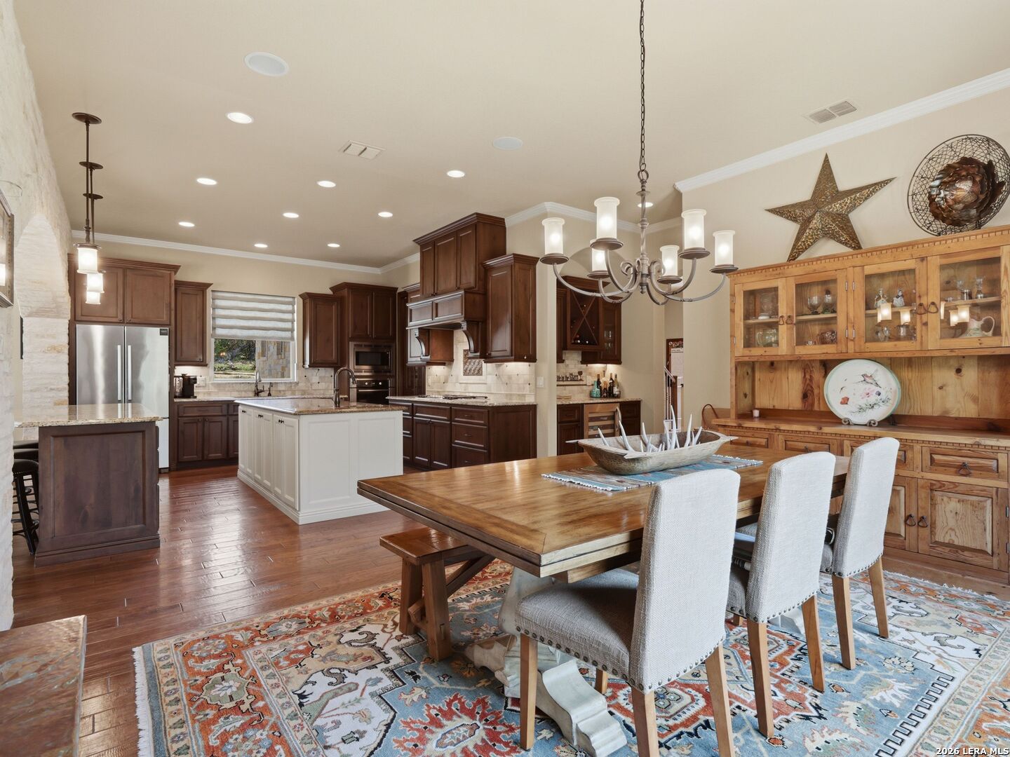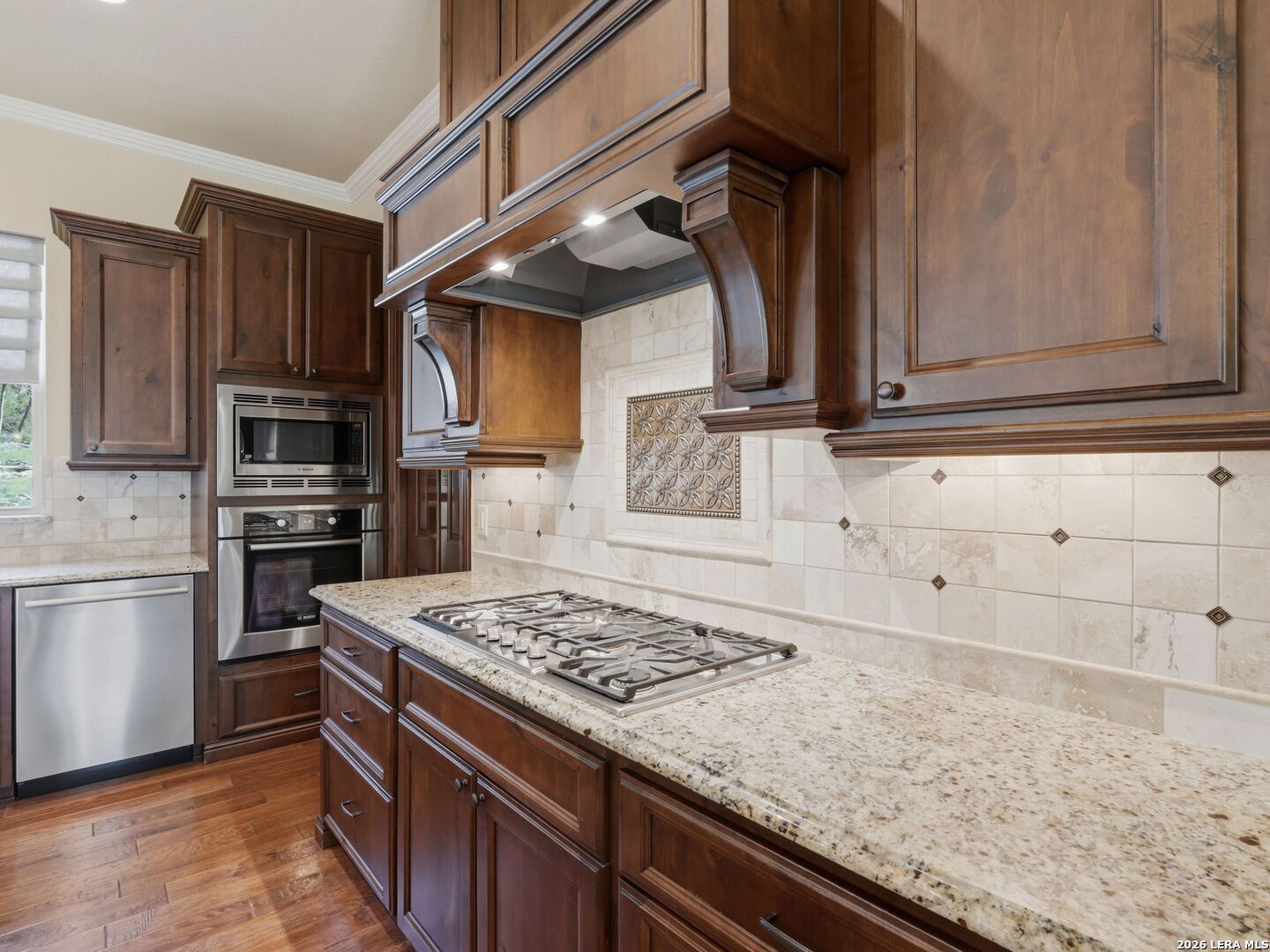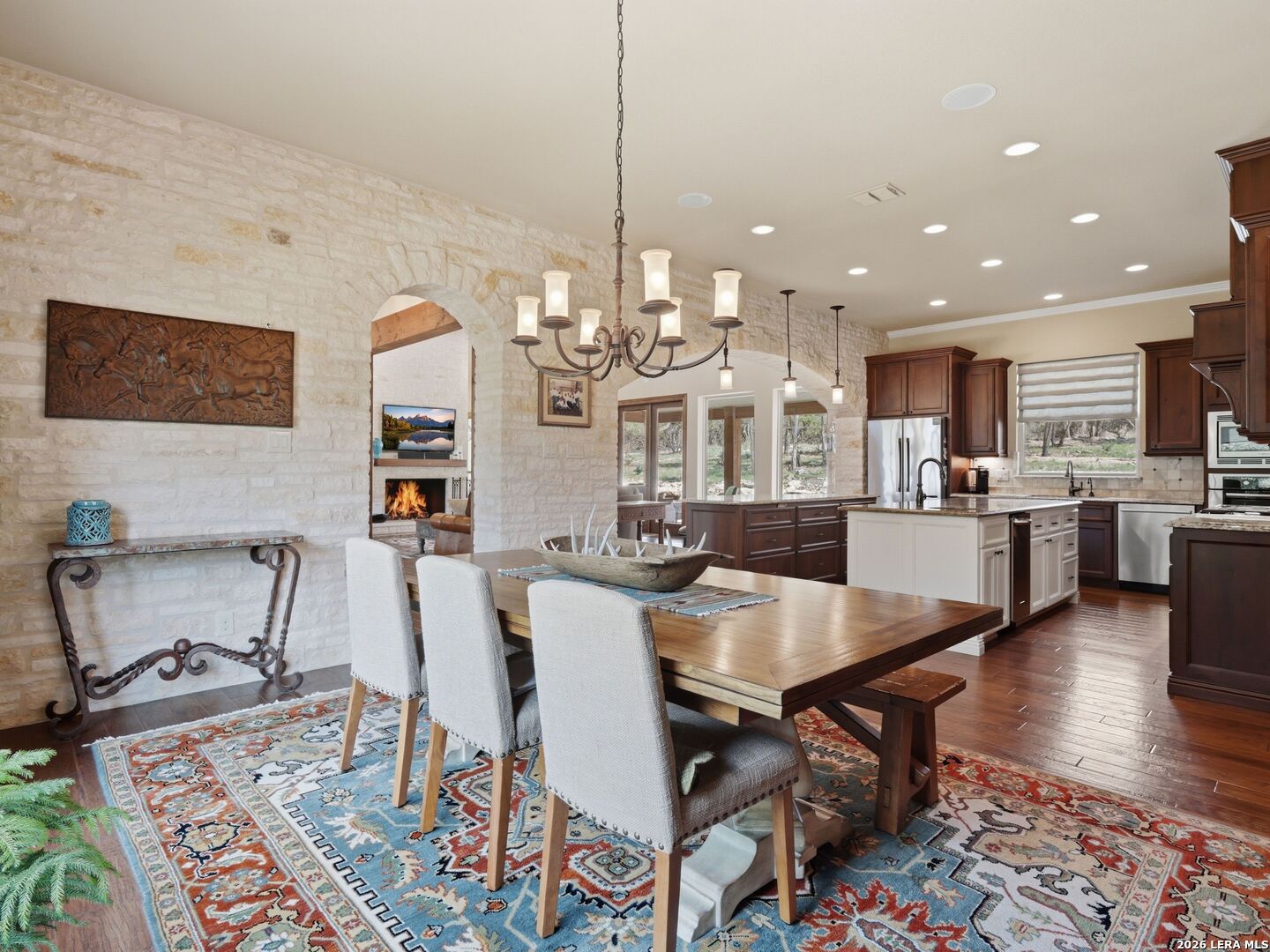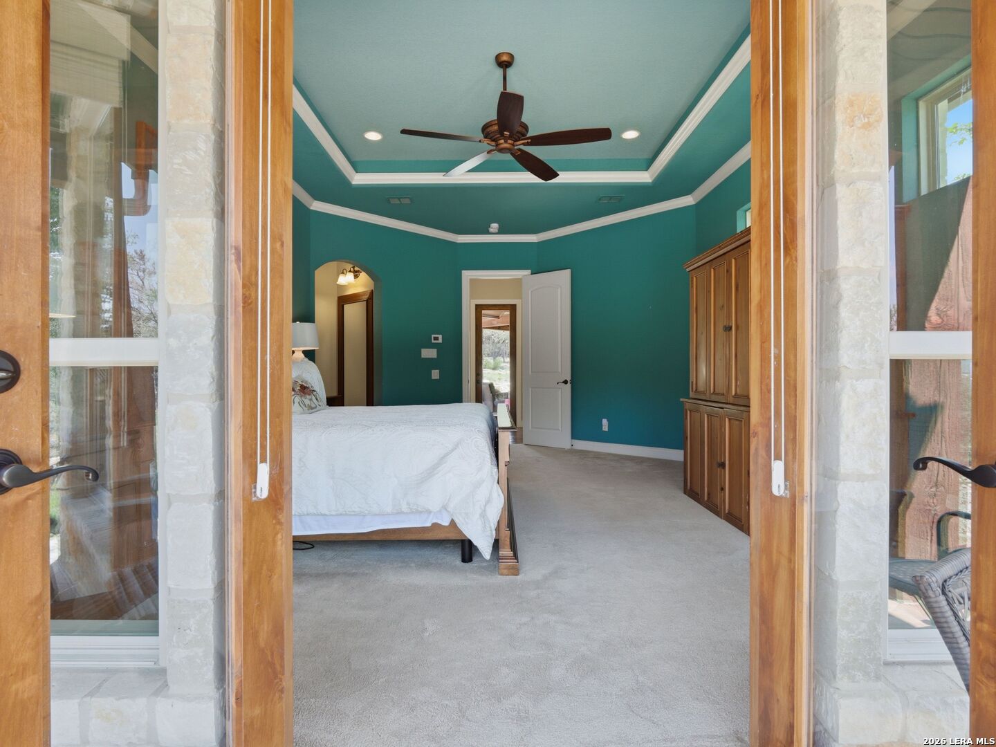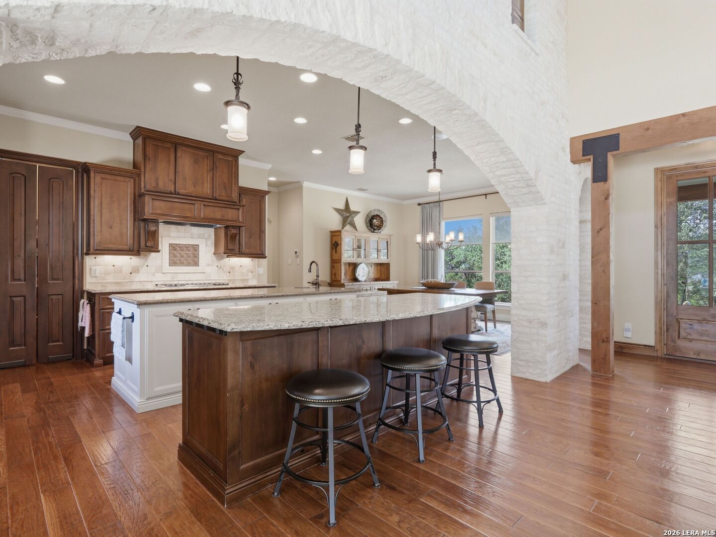 Picturesque Hill Country views with Twin Sisters visible in the distance set the tone for this 10+ acre retreat! Nestled along a scenic ridge in in the gated community of Rebecca Creek Ranches, this exceptional custom built home is filled with an abundance of natural light, perfectly framing the surrounding Hill Country vistas. Cathedral ceilings and wood beams accent a grand stone fireplace in the living room, while a spacious layout flows into a chef's kitchen with large island, Bosch appliances, and a five-burner gas cooktop. Outdoor living shines with a sparkling pool, waterfall, hot tub, expansive patio, and outdoor kitchen - perfect for entertaining or unwinding in total privacy. A rare blend of views, acreage, and lifestyle that's hard to find and even harder to leave!