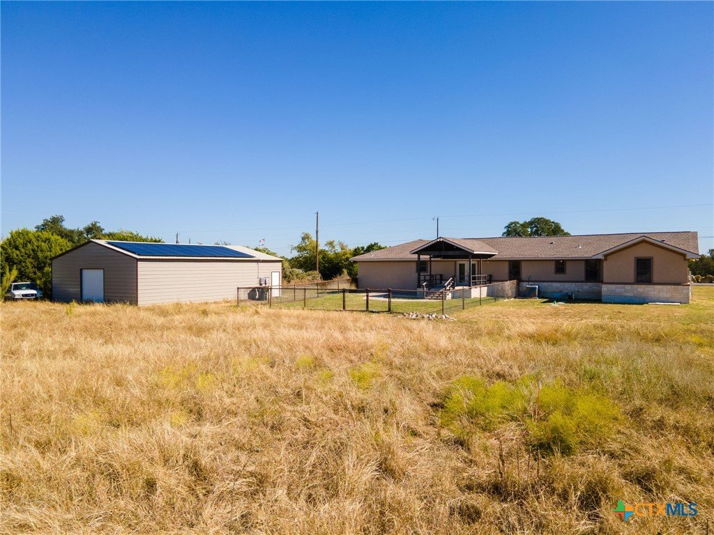 Built in 2020, this beautifully maintained 3-bedroom, 2-bath home offers the perfect blend of modern comfort and relaxed country living on almost one acre in Bell County – outside city limits, giving you the privacy and freedom you’ve been looking for. With approximately 1,800 sq ft of thoughtfully designed space, every detail has been planned for both comfort and convenience. Step inside to an inviting open layout that connects the living, dining, and kitchen areas — ideal for everyday living or hosting friends and family. The kitchen is both functional and stylish, featuring stainless-steel appliances, custom cabinetry, and generous counter space that makes meal prep effortless. Warm natural light fills the home, creating a welcoming, easy-to-love atmosphere throughout. The primary suite is your personal retreat — complete with dual vanities, a walk-in shower, and a Safe Step walk-in tub with shower attachment for added comfort and accessibility. The very large walk-in closet includes a built-in vanity, offering the perfect space for getting ready or organizing your wardrobe with ease. Two additional bedrooms and a second full bath provide flexible space for guests, family, or a home office. Outside, unwind on the covered patio overlooking the spacious backyard — perfect for outdoor dining, gardening, or simply enjoying quiet country evenings. A 30 × 45 workshop offers endless possibilities for projects, hobbies, or small-business use. Energy-efficient solar panels (paid off at closing) help lower utility bills and increase long-term value, while the home’s location offers the best of both worlds — the peacefulness of the countryside with quick access to Belton, Stillhouse Hollow Lake, and I-14. You’re just minutes from shopping, dining, and top-rated Belton ISD schools. Discover where comfort, quality, and Texas charm meet