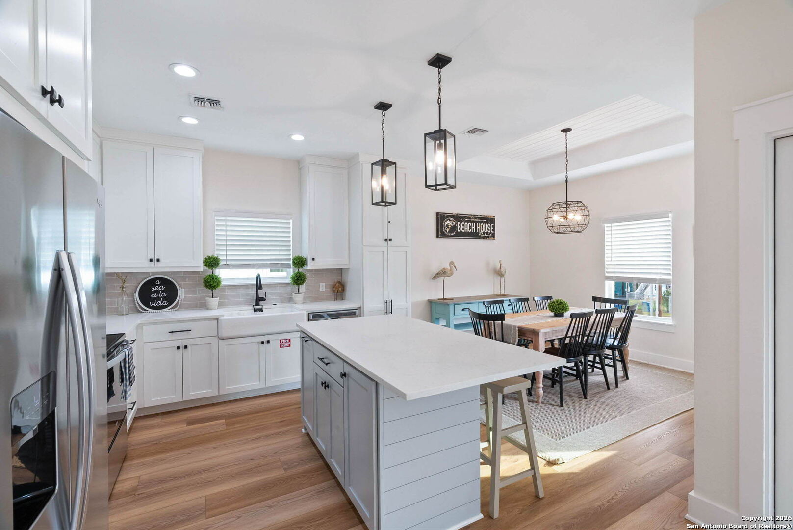 Experience the allure of coastal living in this stunning French Coastal Couture property located in South Rockport. This beautifully appointed home features 3 spacious bedrooms & 2.5 baths, open concept living/kitchen/dining, designed with upscale furnishings, decor and finishings that offer a minimalistic style yet complete aesthetic. Step inside to discover an open-concept kitchen, living, and dining area that exudes a light and airy ambiance, reminiscent of the Riviera. Enjoy breathtaking water views of Aransas Bay from the comfort of your home or quick stroll down the block to waters edge. With ample parking for vehicles and watercraft storage, convenience is a key feature of this property. Both the first and second floors provide easy access, with luxurious suites on each level ensuring comfort and privacy. You'll love the expansive covered deck that invites you to relax while soaking in the views and providing shelter from the Texas sun. Gather around the barbecue for al fresco dining, or enjoy cozy evenings by the campfire in the backyard. There's even room to add a water feature, enhancing the tranquil outdoor experience. This property is currently a revenue generating short-term rental, making it perfect for investors or those seeking a vacation home with income perk. Additionally, it is 1031 exchange friendly, offering a fantastic opportunity for those looking to invest in a coastal paradise. Earn $$, grab some local cuisine, stroll the beach, shop until you drop, enjoy a variety of live musicians and drop a line waterside or on the bay....all in a day's work. With 1,460 sq. ft. of living space set on a generous 5,000 sq. ft. corner lot, this home is a perfect blend of luxury and coastal charm. Don't miss the opportunity to make this rare coastal find your reality!