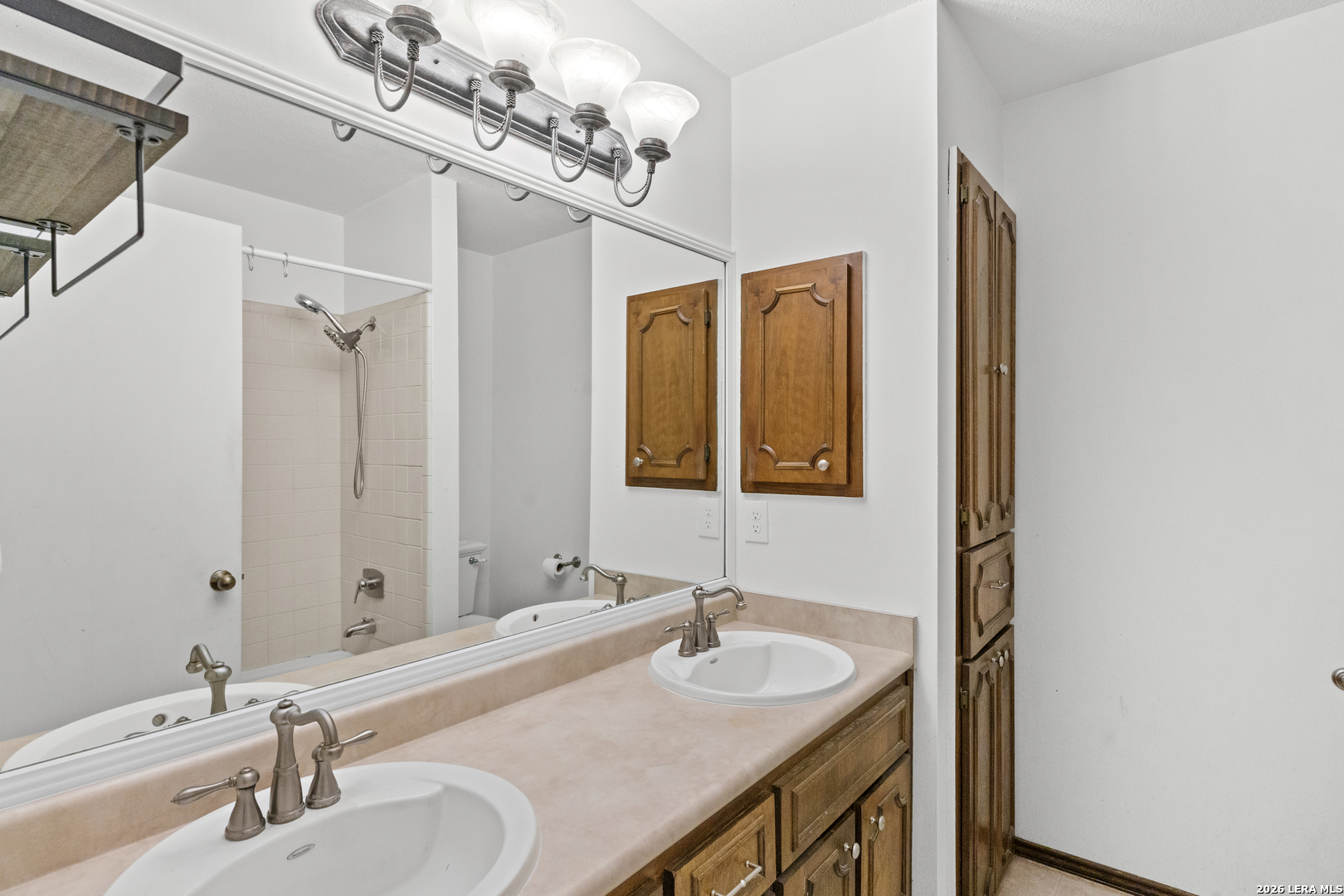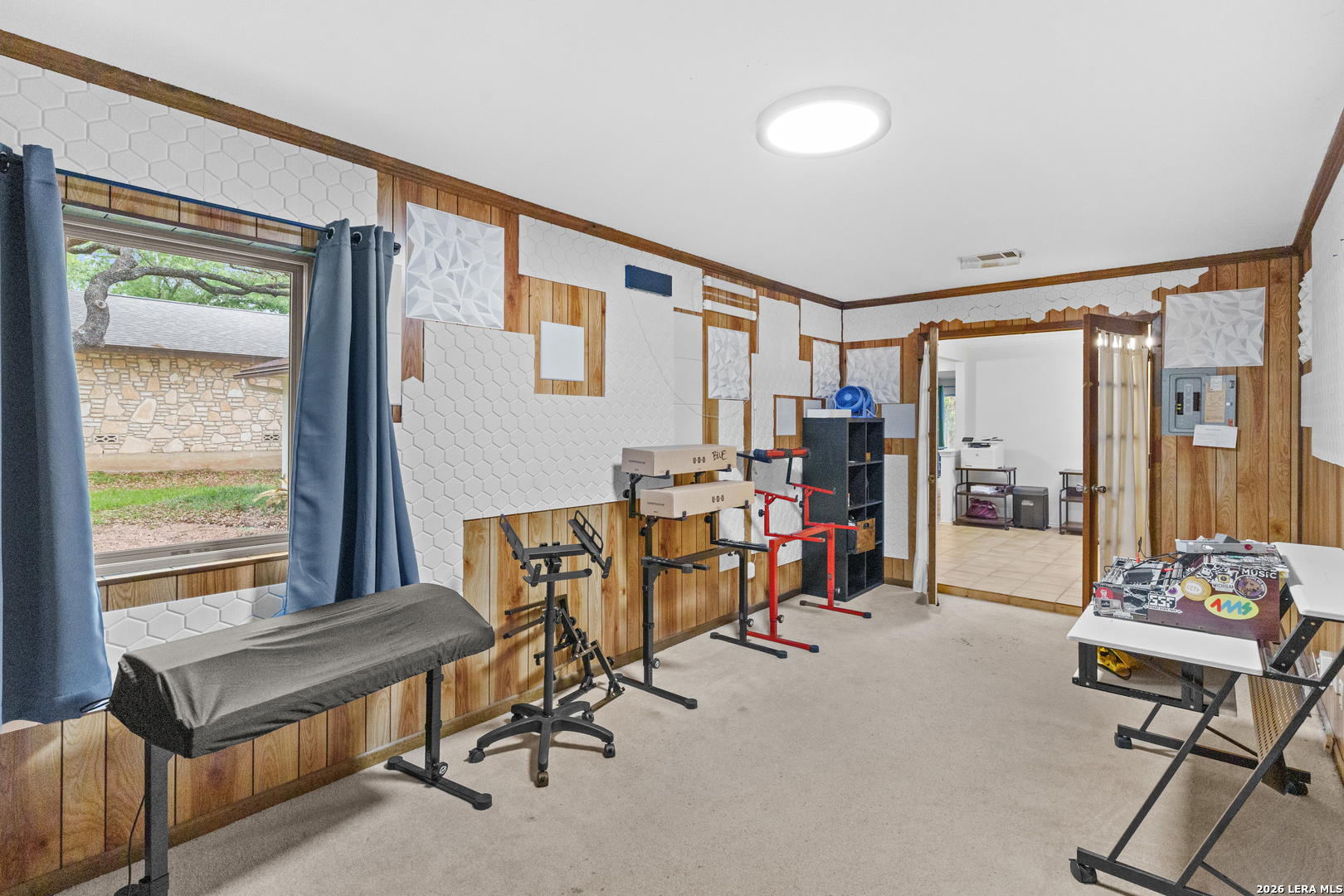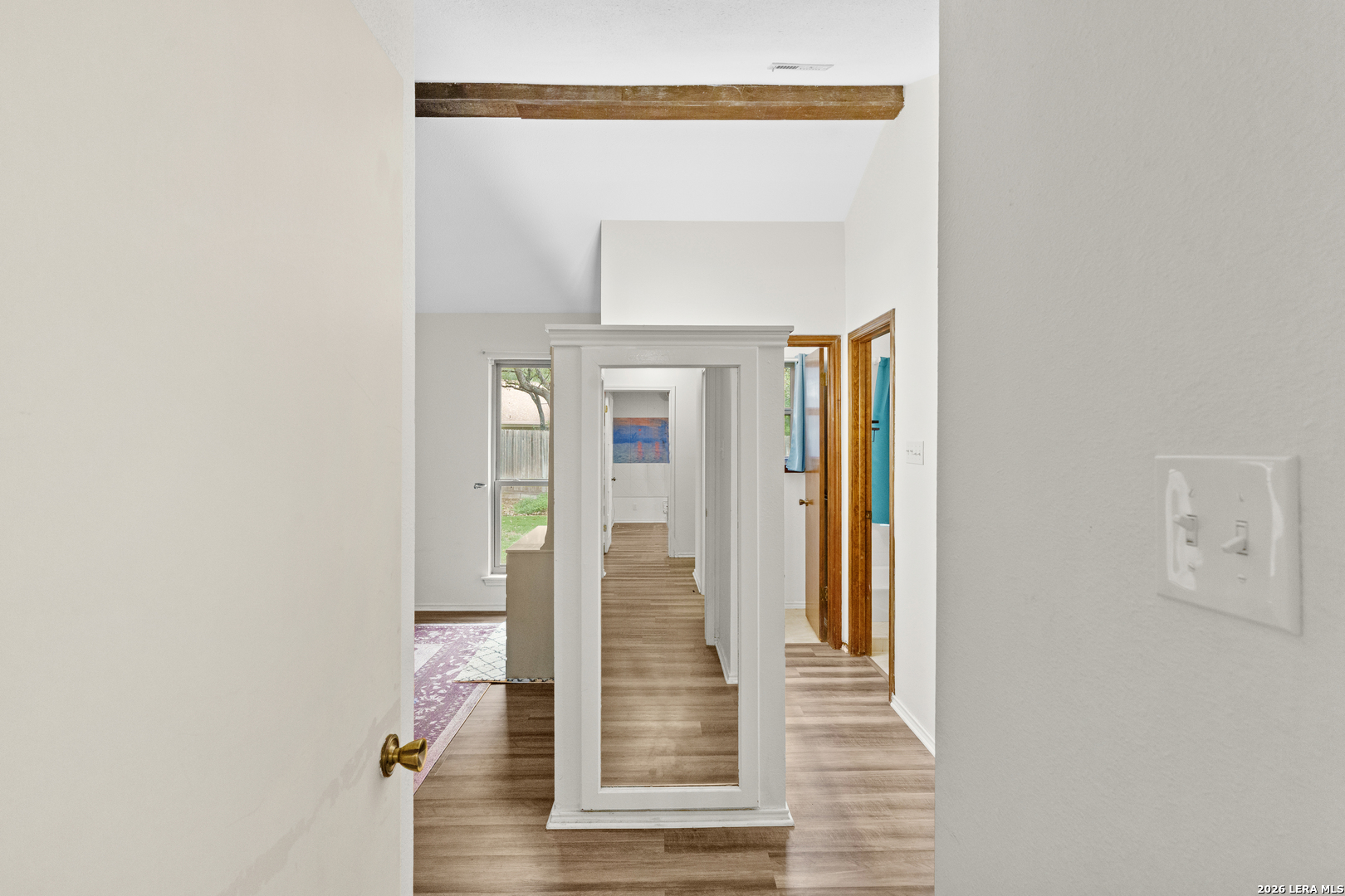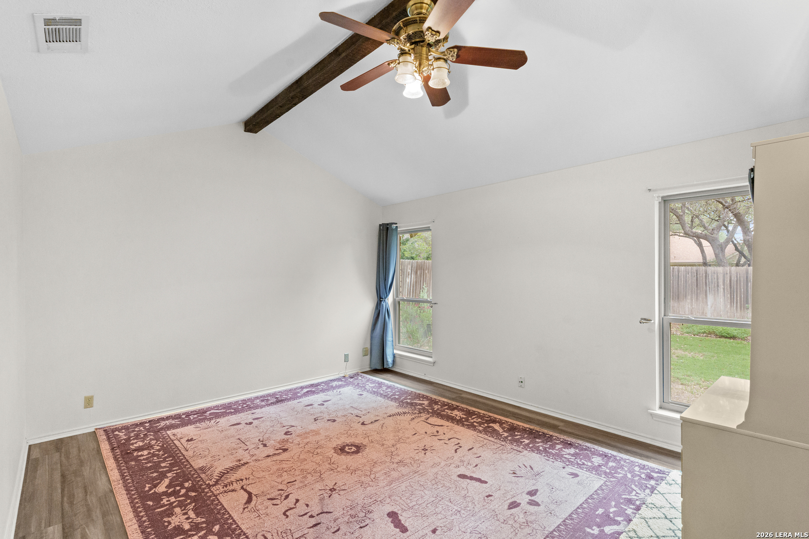 Located in North Central San Antonio's Thousand Oaks area, 15306 Mount Eagle St offers 5 bedrooms, 2 bathrooms, and approximately 2,243 square feet in a one story layout that combines character, flexibility, and everyday function. The living room stands out with vaulted ceilings, exposed beam detail, built in shelving, a brick fireplace, and large windows that bring in natural light and backyard views. The kitchen offers granite counters, tile backsplash, solid cabinet storage, breakfast bar seating, and easy flow into the breakfast area and dining or flex room. The primary suite is generously sized, the secondary bedrooms offer comfortable usable space, and a partially converted garage adds bonus room flexibility for an office, hobby space, guest room, or other needs. Mature trees and a spacious backyard complete the setting in a part of 78232 that continues to draw buyers looking for an established feel with convenient access to daily amenities.Ubicada en la zona de Thousand Oaks, en el area norte central de San Antonio, 15306 Mount Eagle St ofrece 5 recamaras, 2 banos y aproximadamente 2,243 pies cuadrados en una distribucion de un nivel que combina caracter, versatilidad y funcionalidad diaria. La sala principal resalta con techos altos, vigas expuestas, repisas empotradas, chimenea de ladrillo y ventanales que permiten buena luz natural y vista hacia el patio. La cocina cuenta con cubiertas de granito, backsplash de azulejo, buen espacio de gabinetes, barra desayunadora y conexion comoda hacia el desayunador y el area de comedor o espacio flexible. La recamara principal ofrece muy buen tamano, las recamaras secundarias tienen espacio comodo y la conversion parcial del garaje agrega un area adicional ideal para oficina, cuarto de visitas, pasatiempo u otras necesidades. Arboles maduros y un patio trasero amplio completan el entorno en una parte de 78232 que sigue llamando la atencion de compradores que buscan un ambiente establecido con acceso conveniente a servicios y zonas comerciales.