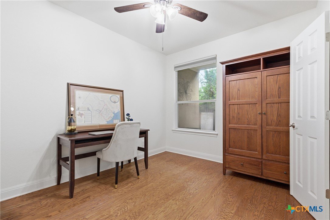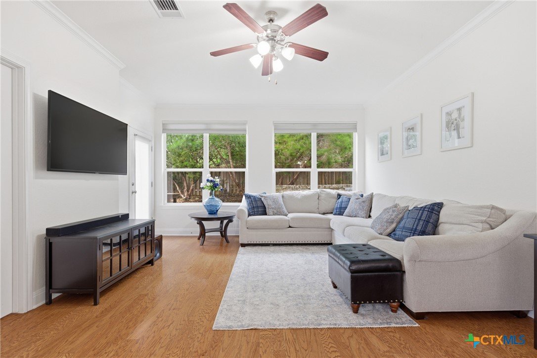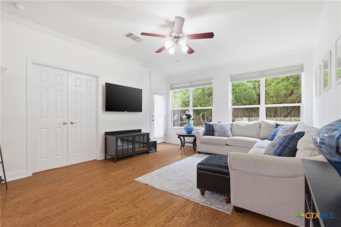 Welcome to easy living in the Vista at Lakeway ? This 3-bedroom, 2.5-bath townhome delivers the space you need with the low-maintenance lifestyle you want. The open floorplan and wood floors create a clean, modern feel from the moment you walk in, with plenty of room to relax or entertain. Need flexibility? The main-level study is perfect for a home office, workout space, or creative zone. Upstairs, you’ll find all three bedrooms plus an additional living area, ideal for a second lounge, media space, or quiet retreat. The primary suite is a standout, featuring a private balcony with peaceful tree views, your own little escape at the end of the day. The ensuite bath includes dual vanities, a walk-in closet, a garden tub, and a separate shower. Two secondary bedrooms are connected by a Jack-and-Jill bathroom, making the layout both functional and efficient. And with no carpet anywhere, maintenance is simple and the style stays consistent throughout. All of this in a location close to Lakeway shopping, dining, and outdoor spaces, because convenience matters just as much as comfort.