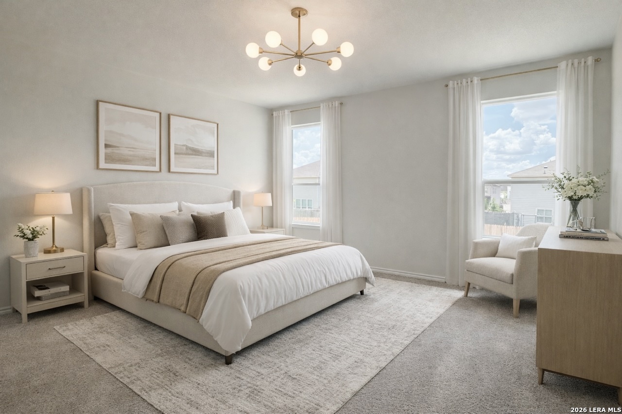 This charming single-story residence features 3 bedrooms, 2 full baths. The home boasts a Carrara-style entry door for extra curb appeal and an open floor plan with upgraded granite counter top and tile flooring. The modern kitchen is a chef's dream, equipped with Whirlpool appliances, and Woodmont Cody 42-inch upper cabinets. The primary suite includes a walk-in closet and a connecting bath with a dual-sink vanity and a luxurious 42-inch garden tub/shower combination. Located in a good school district, this home is just 13 minutes from Costco, within 10 minutes of HEB, and close to 1604 and 151. A brand new refrigerator, washer, dryer, window blinds, and garage door opener will be included