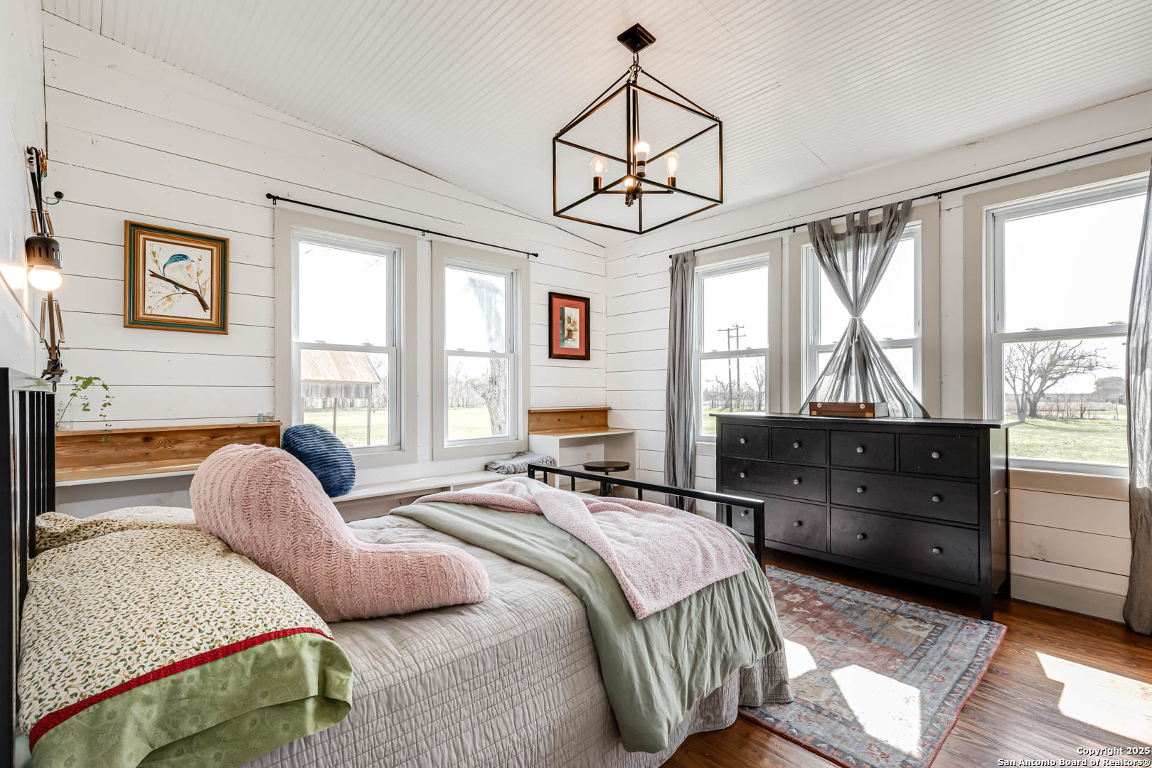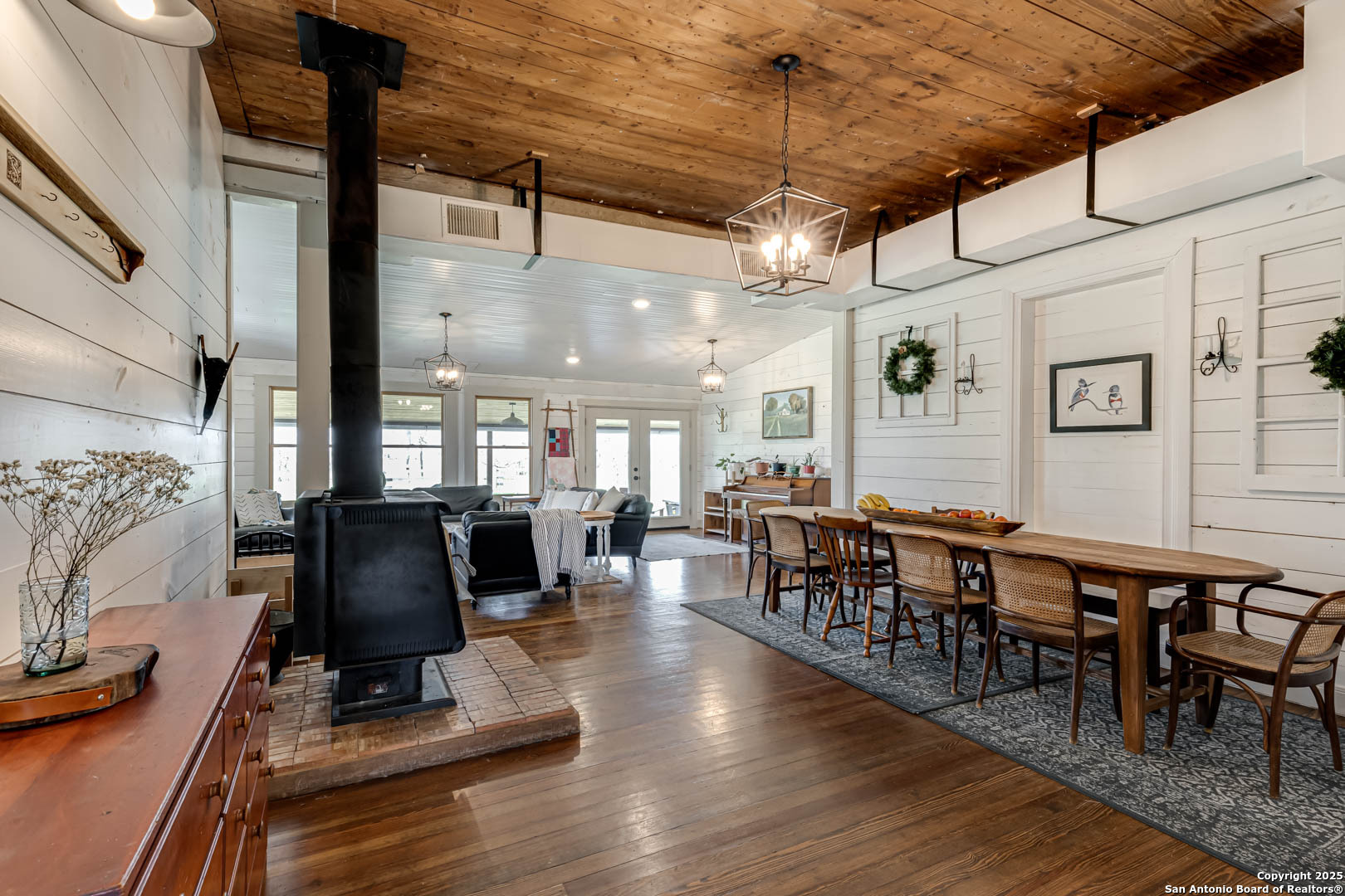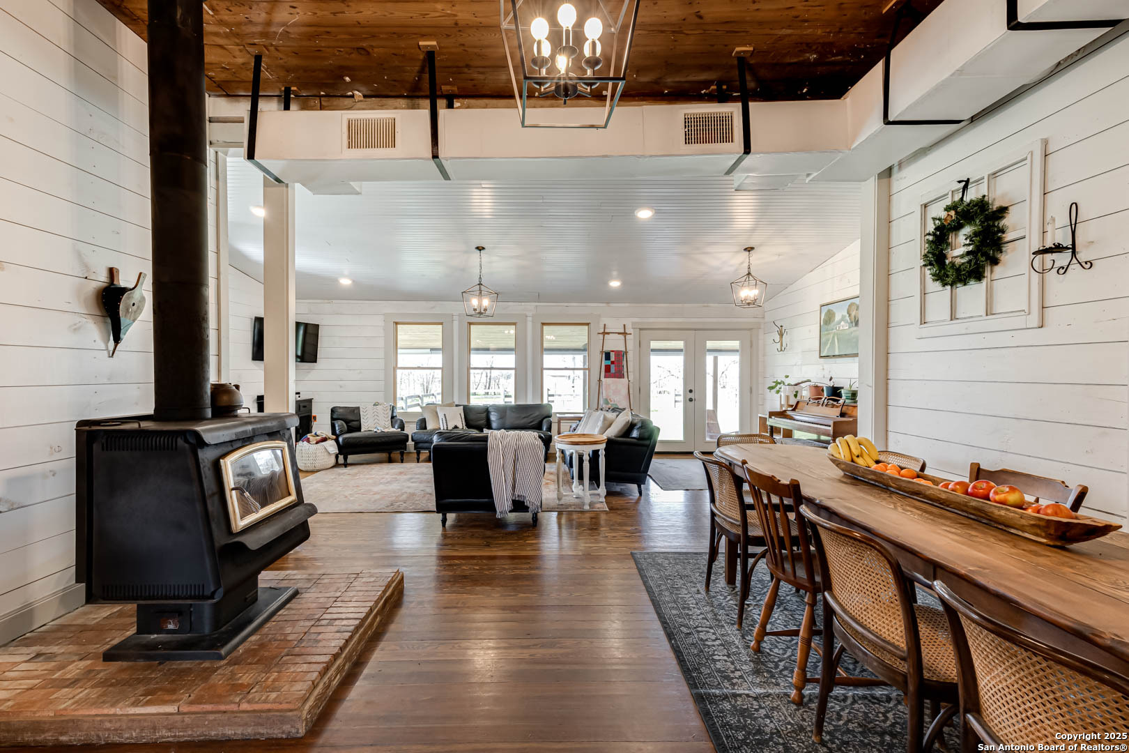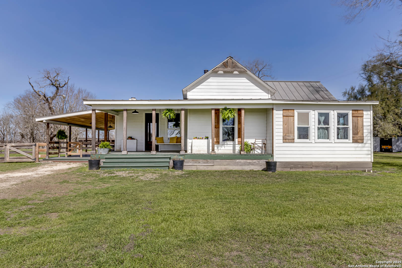 Welcome to this stunningly renovated 1920's farmhouse sitting on 5 acres surrounded by farmland in quiet St Hedwig. This perfect location is close enough to the city for convenience and far enough away to stretch out and have some peace. The land itself boasts not only the farmhouse but numerous included amenities to get you started on your farmhouse journey including a 4 to 500 year old oak tree, chicken coop, workshop, multiple storage sheds, animal pens, producing pecan trees, a garden and small pond with space to spare for anything else you can dream up. At just over 2000sf, this beautifully renovated and thoughtfully appointed 4 bedroom 2 bath farmhouse includes over 500sf of outdoor covered patio space, an enormous open floor plan living room/dining room combo with a fully functional wood burning stove in the middle surrounded by windows. Original refurbished pine wood floors and shiplap walls throughout, a to-die-for kitchen with all the extras including a wall mounted pot filler and commercial gas stove with monster vent hood. Thoughtful taste and stylings are literally everywhere, including the primary suite and bathroom which feature a custom barn style sliding frosted entry, freestanding oversized tub, artisan mirrors, and vintage style lighting throughout. Come see all there is to see, imagine yourself in this elevated farmhouse and come live the simple life in style.