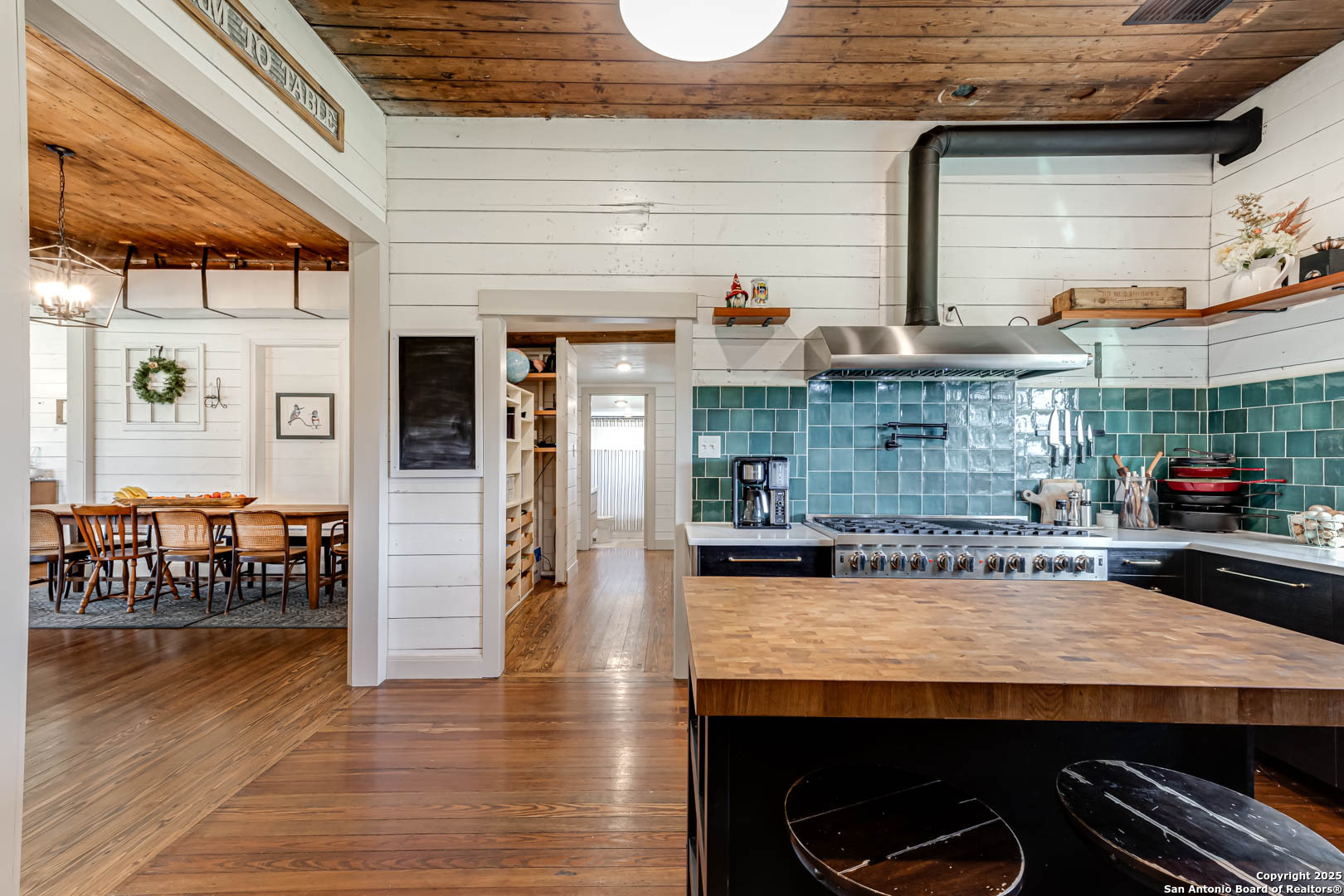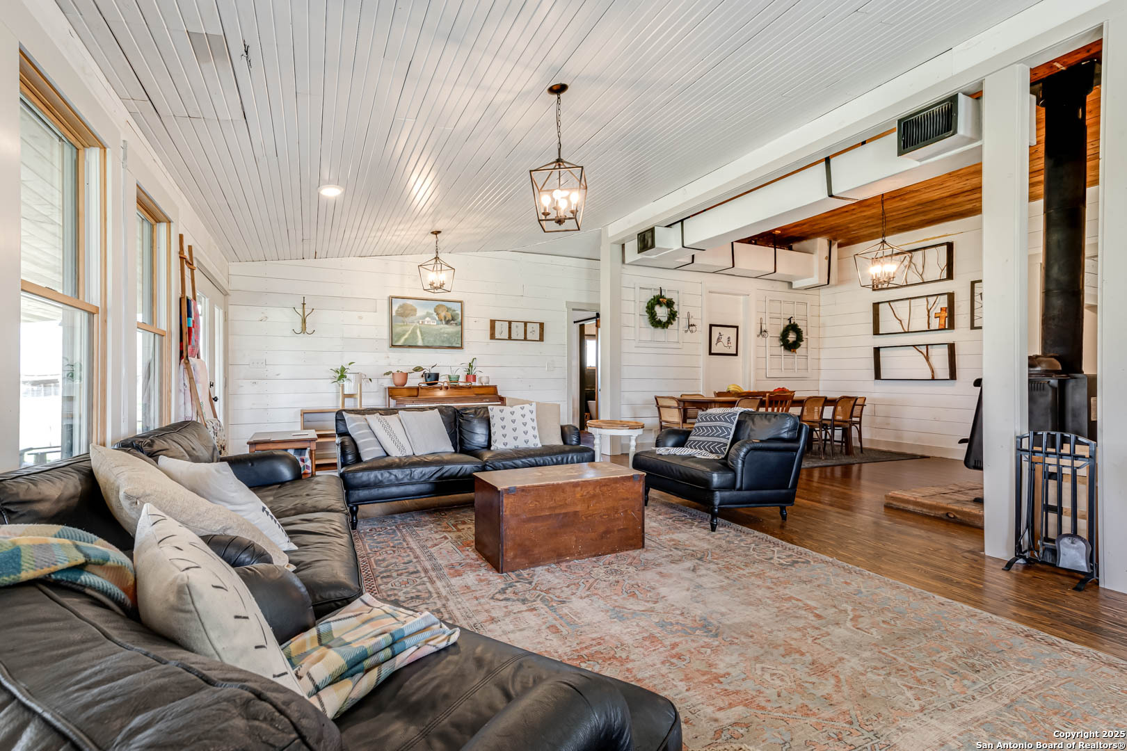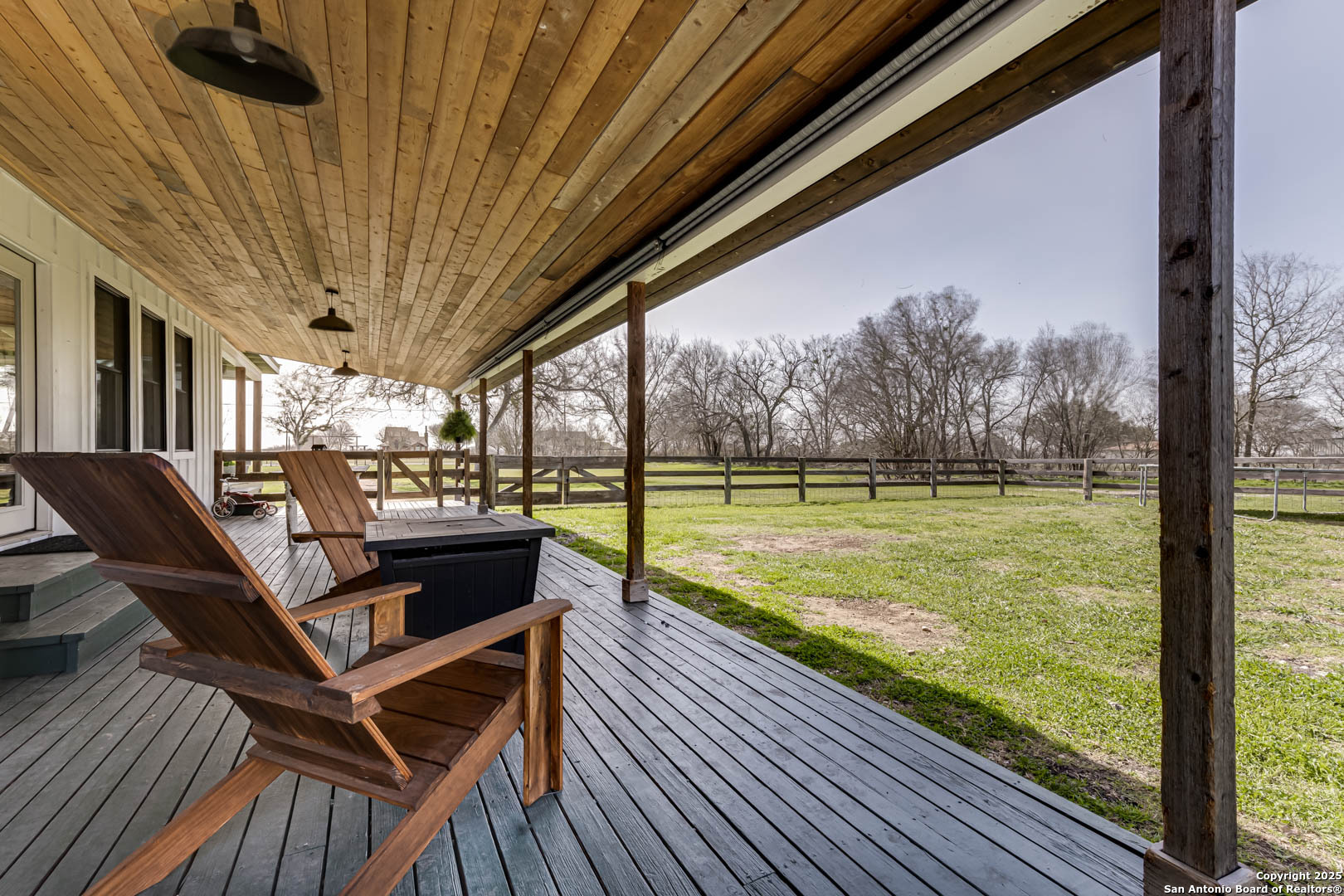 Welcome to this stunningly renovated 1920's farmhouse sitting on 5 acres surrounded by farmland in quiet St Hedwig. This perfect location is close enough to the city for convenience and far enough away to stretch out and have some peace. The land itself boasts not only the farmhouse but numerous included amenities to get you started on your farmhouse journey including a 4 to 500 year old oak tree, chicken coop, workshop, multiple storage sheds, animal pens, producing pecan trees, a garden and small pond with space to spare for anything else you can dream up. At just over 2000sf, this beautifully renovated and thoughtfully appointed 4 bedroom 2 bath farmhouse includes over 500sf of outdoor covered patio space, an enormous open floor plan living room/dining room combo with a fully functional wood burning stove in the middle surrounded by windows. Original refurbished pine wood floors and shiplap walls throughout, a to-die-for kitchen with all the extras including a wall mounted pot filler and commercial gas stove with monster vent hood. Thoughtful taste and stylings are literally everywhere, including the primary suite and bathroom which feature a custom barn style sliding frosted entry, freestanding oversized tub, artisan mirrors, and vintage style lighting throughout. Come see all there is to see, imagine yourself in this elevated farmhouse and come live the simple life in style.