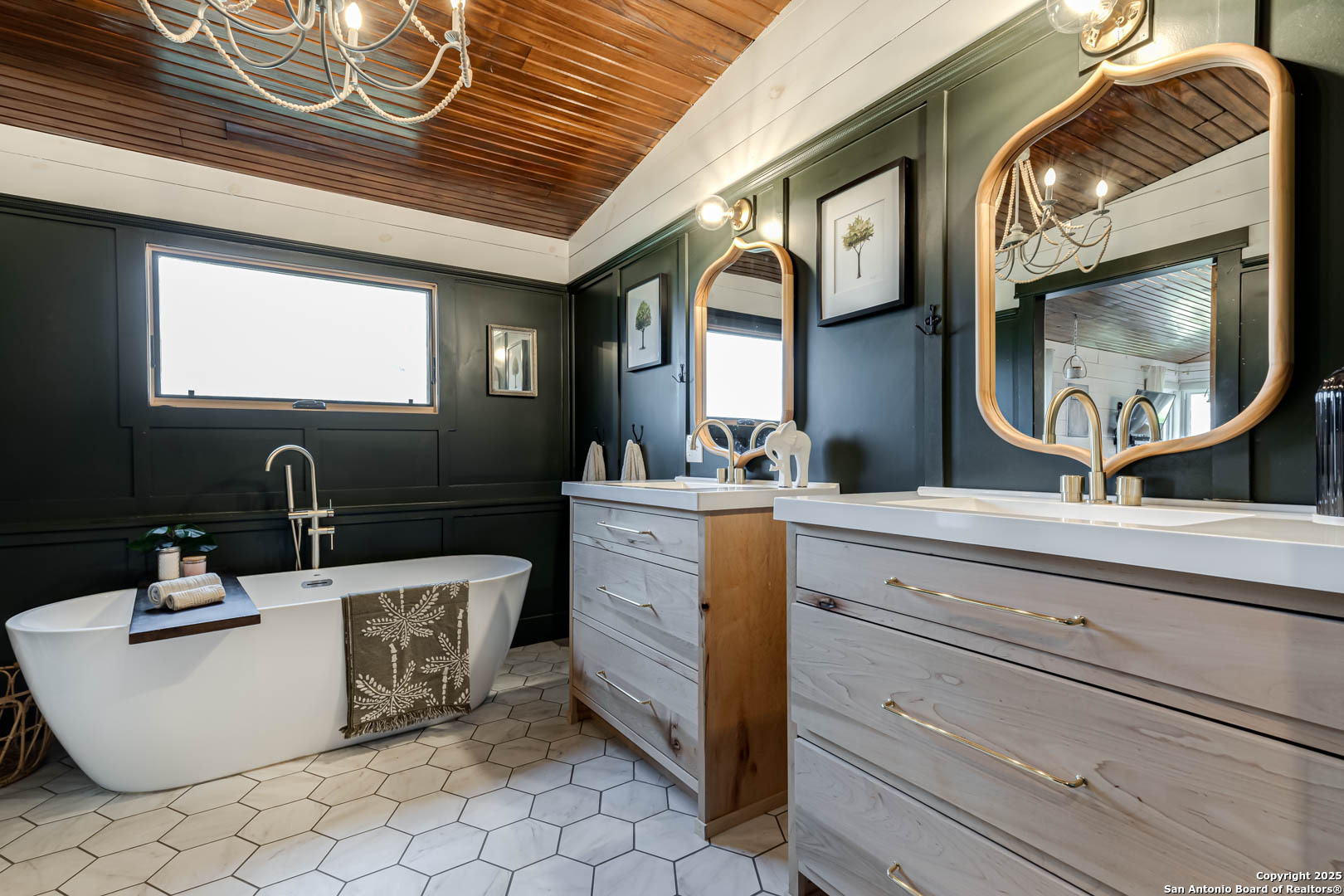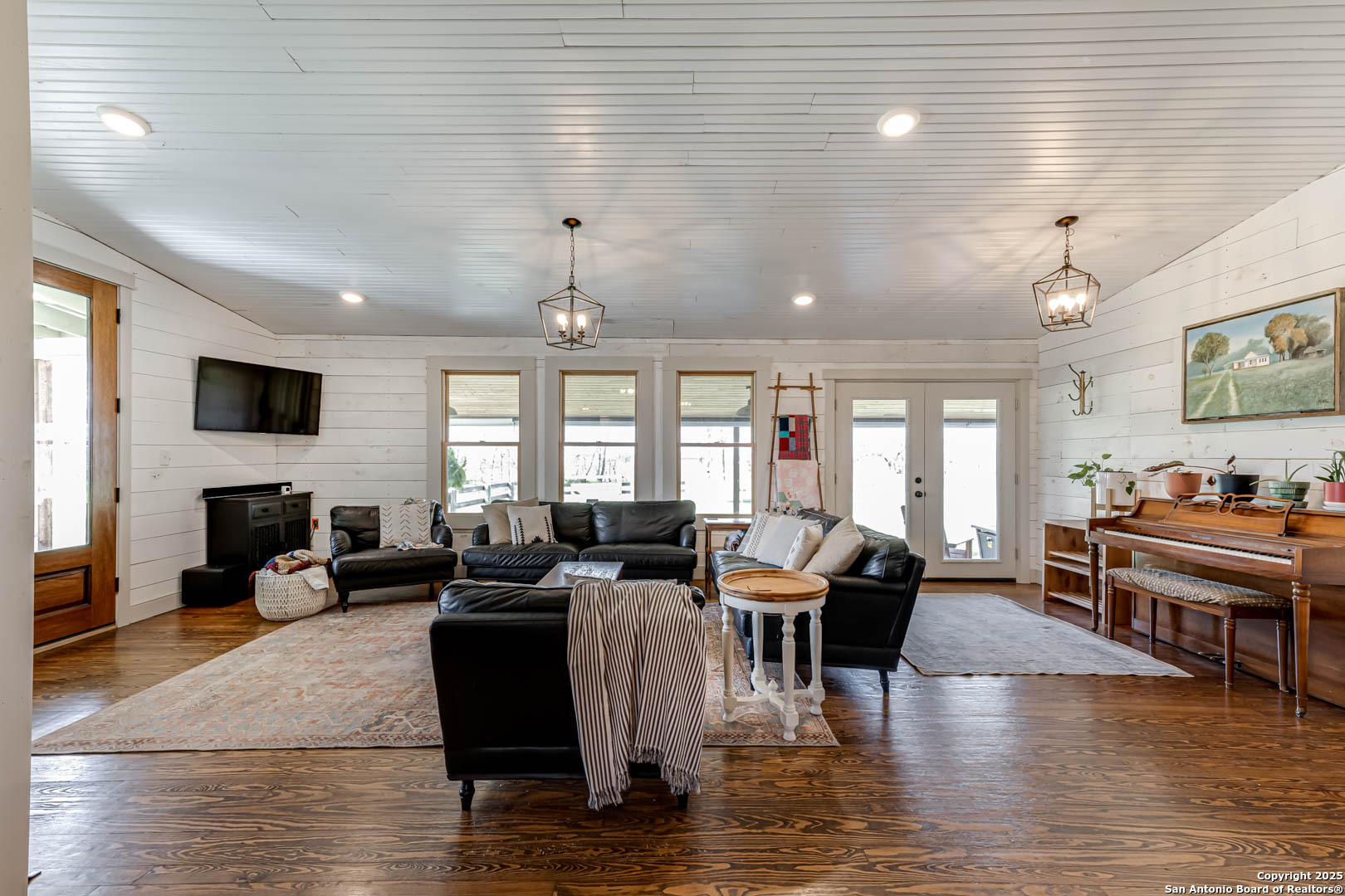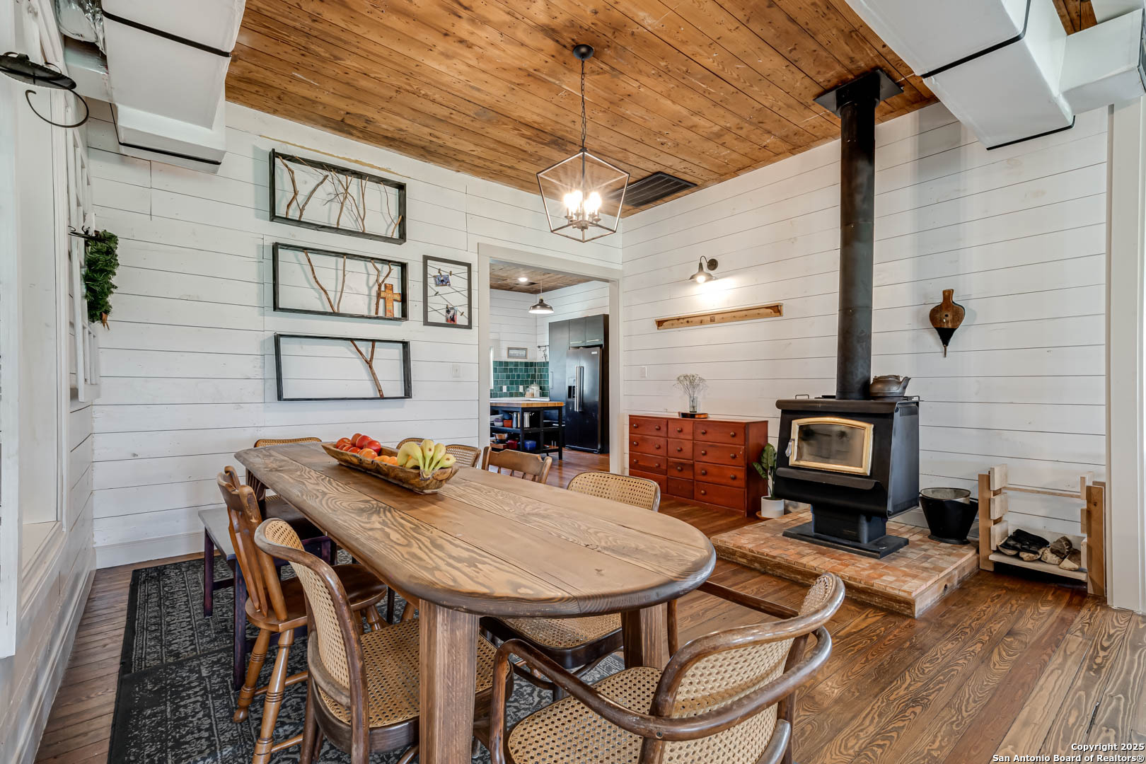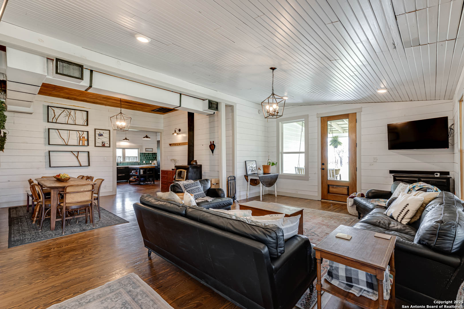 Welcome to this stunningly renovated 1920's farmhouse sitting on 5 acres surrounded by farmland in quiet St Hedwig. This perfect location is close enough to the city for convenience and far enough away to stretch out and have some peace. The land itself boasts not only the farmhouse but numerous included amenities to get you started on your farmhouse journey including a 4 to 500 year old oak tree, chicken coop, workshop, multiple storage sheds, animal pens, producing pecan trees, a garden and small pond with space to spare for anything else you can dream up. At just over 2000sf, this beautifully renovated and thoughtfully appointed 4 bedroom 2 bath farmhouse includes over 500sf of outdoor covered patio space, an enormous open floor plan living room/dining room combo with a fully functional wood burning stove in the middle surrounded by windows. Original refurbished pine wood floors and shiplap walls throughout, a to-die-for kitchen with all the extras including a wall mounted pot filler and commercial gas stove with monster vent hood. Thoughtful taste and stylings are literally everywhere, including the primary suite and bathroom which feature a custom barn style sliding frosted entry, freestanding oversized tub, artisan mirrors, and vintage style lighting throughout. Come see all there is to see, imagine yourself in this elevated farmhouse and come live the simple life in style.
