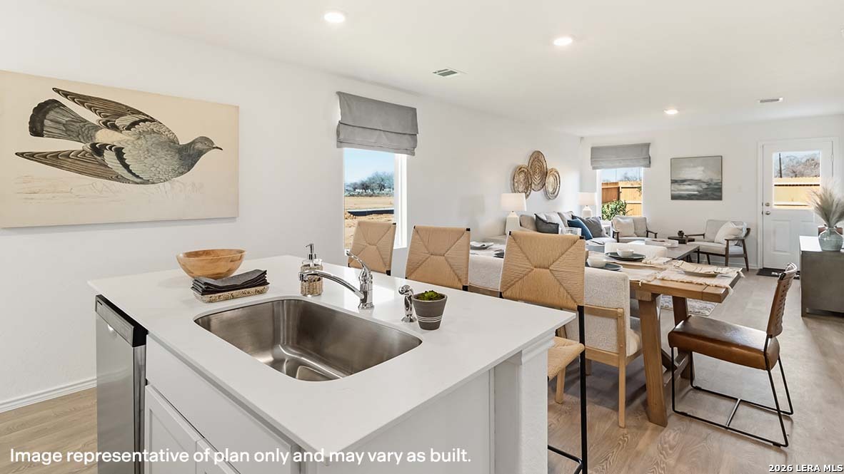The Emory plan is one of our two-story homes featured in Preserve at Medina in Von Ormy, TX. This new home layout offers 2 classic front exteriors, 5 bedrooms, 2.5 baths, 2 car-garage and 1971 square feet of comfortable living. Step inside The Emory to find an elongated foyer opening to an open concept kitchen, dining area, and family room. The gourmet kitchen faces the living area so you don't miss a thing while cooking and includes quartz counter tops, stainless steel appliances and shaker style cabinetry. The main bedroom is located toward the back of the home on the first floor and features an attractive attached bathroom with a walk-in shower, quartz countertops, a grand walk-in closet and plenty of storage space. The second story includes all secondary bedrooms, a full bathroom with double-vanity sinks, and game room. You'll have carpeted floors in every bedroom and sheet vinyl flooring in your bathrooms and utility room. Additional features include sheet vinyl flooring in entry, living room, and all wet areas, quartz counter tops in all bathrooms and HOME IS CONNECTED base package. Using one central hub that talks to all the devices in your home, you can control the lights, thermostat and locks, all from your cellular device.