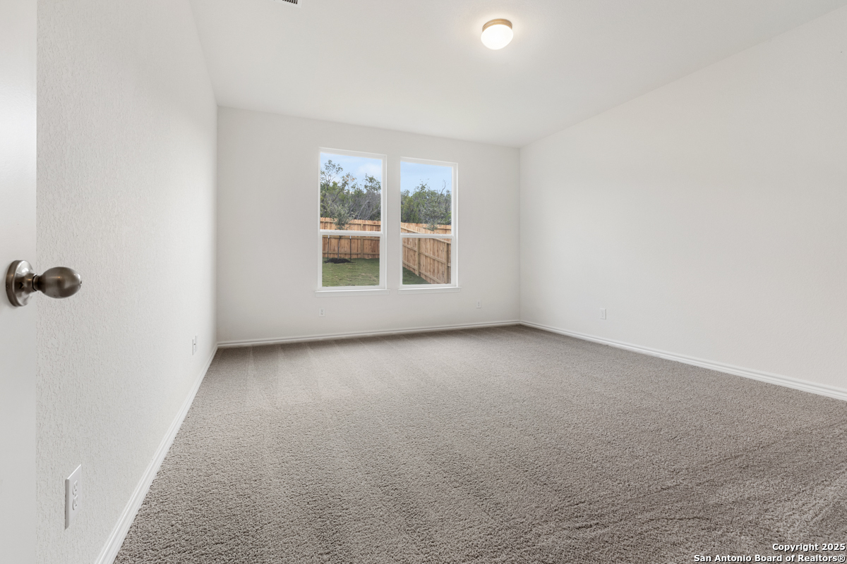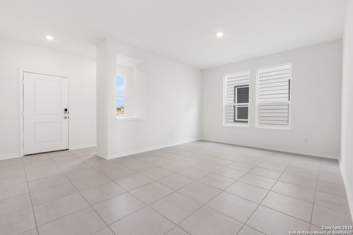 Enjoy elevated living in this beautifully designed home featuring 9-ft. first floor ceilings and Stella Vista ceramic tile flooring in the kitchen, baths, and great room. The kitchen impresses with Whirlpool stainless steel appliances, Woodmont Dakota Shaker panel 42-in. upper cabinets, a Daltile tile backsplash, Silestone Blanco Maple countertops, and an extended breakfast bar. The primary bath offers a raised vanity, upgraded cabinets, and a 42-in. shower with Daltile tile surround. Thoughtful touches include a Carrara-style entry door, Kwikset Polo interior hardware, a wireless security system, covered patio, full sod, and an automatic sprinkler system.