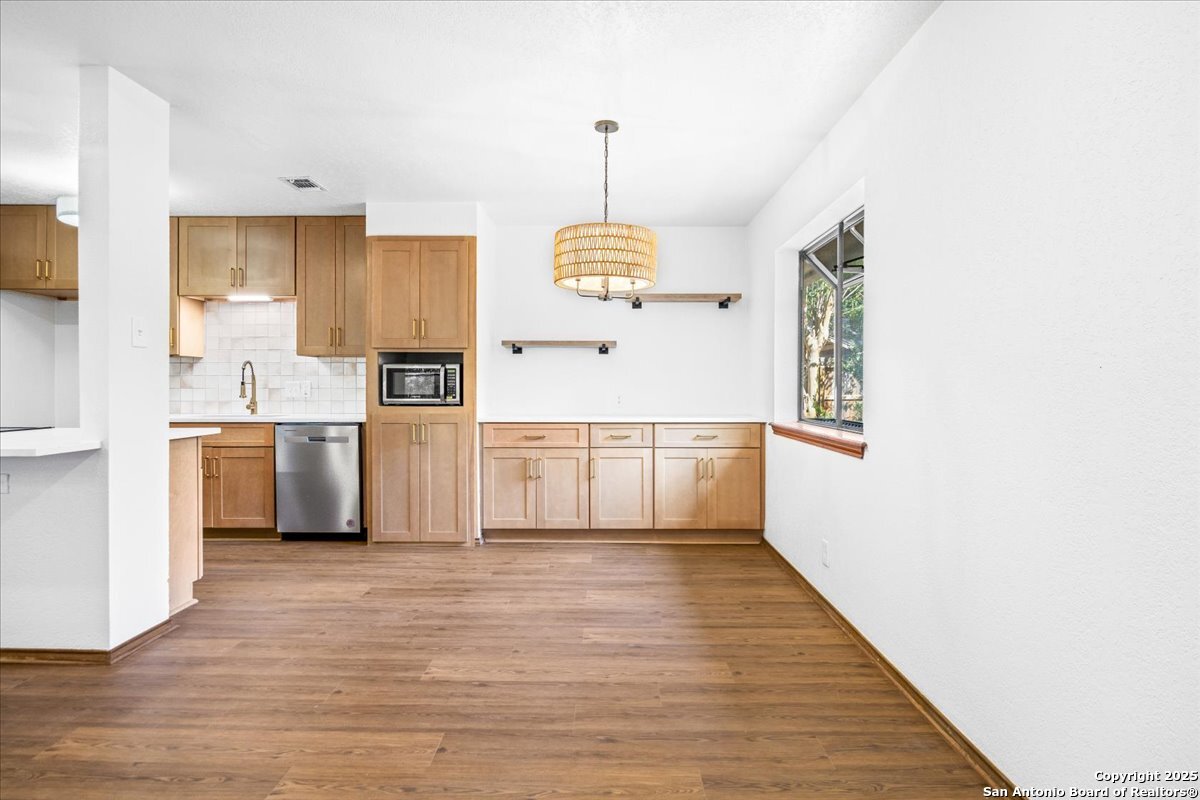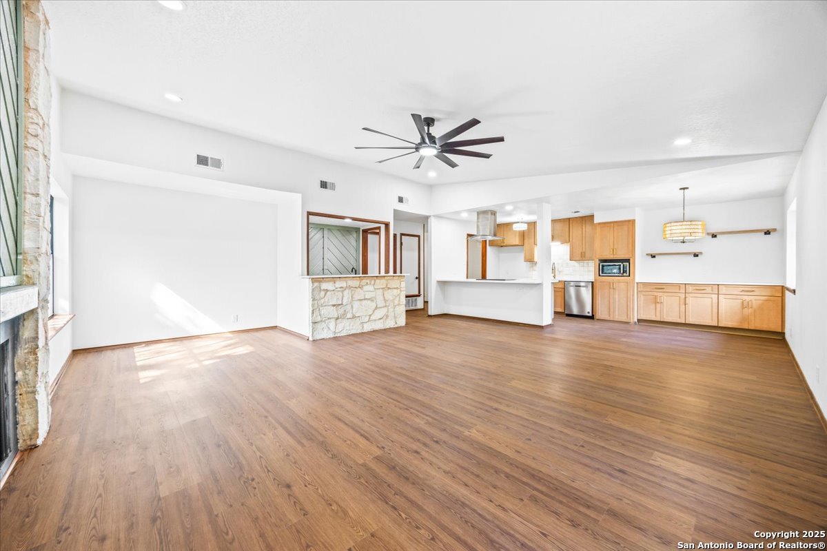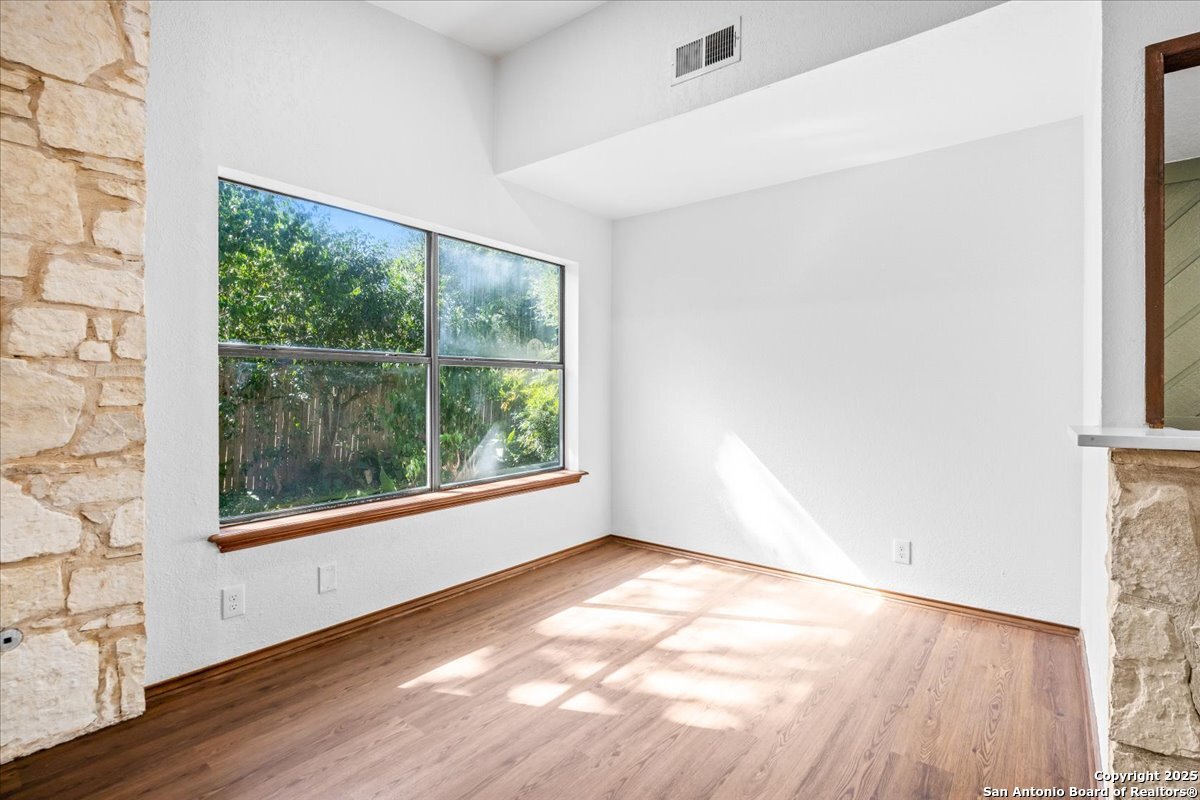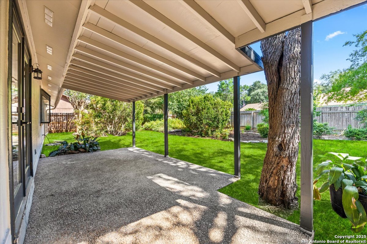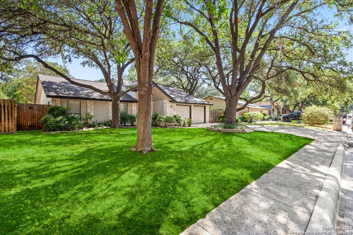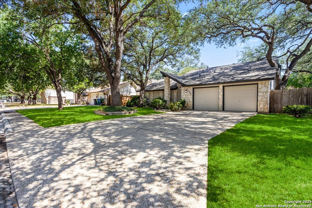 Discover the perfect blend of timeless character and modern luxury in this custom single-story home, nestled in the heart of Green Spring Valley. This renowned community is a true escape, defined by its mature trees and a list of amenities that can't be beat. Every inch of this home has been thoughtfully renovated. The open-concept design creates an inviting atmosphere, with a seamless flow from the living room, complete with a classic wet bar, to the dining area and kitchen. You'll find a fresh, contemporary feel thanks to new paint and beautiful LVP flooring, which runs throughout the entire home-no carpet in sight! There is even a new roof and double pane windows so you don't have to worry about a thing. The kitchen is a showcase of clean design, featuring new cabinets and beautiful quartz countertops. Both bathrooms have also been completely transformed with the same high-end finishes offering a spa-like feel. Outside, the property is a private sanctuary. A covered patio provides a perfect spot for morning coffee. The expansive backyard, shaded by majestic oaks, offers a blank slate for your personal touch, whether it's a lush garden or a vibrant play area. This home is not just a place to live; it's a lifestyle. Enjoy access to a community pool, tennis, basketball, and pickleball courts, plus a 32-acre nature park with walking trails and picnic areas. With easy access to major highways (1604, 410, and 281), you get the perfect blend of a peaceful suburban setting with the convenience of city life.