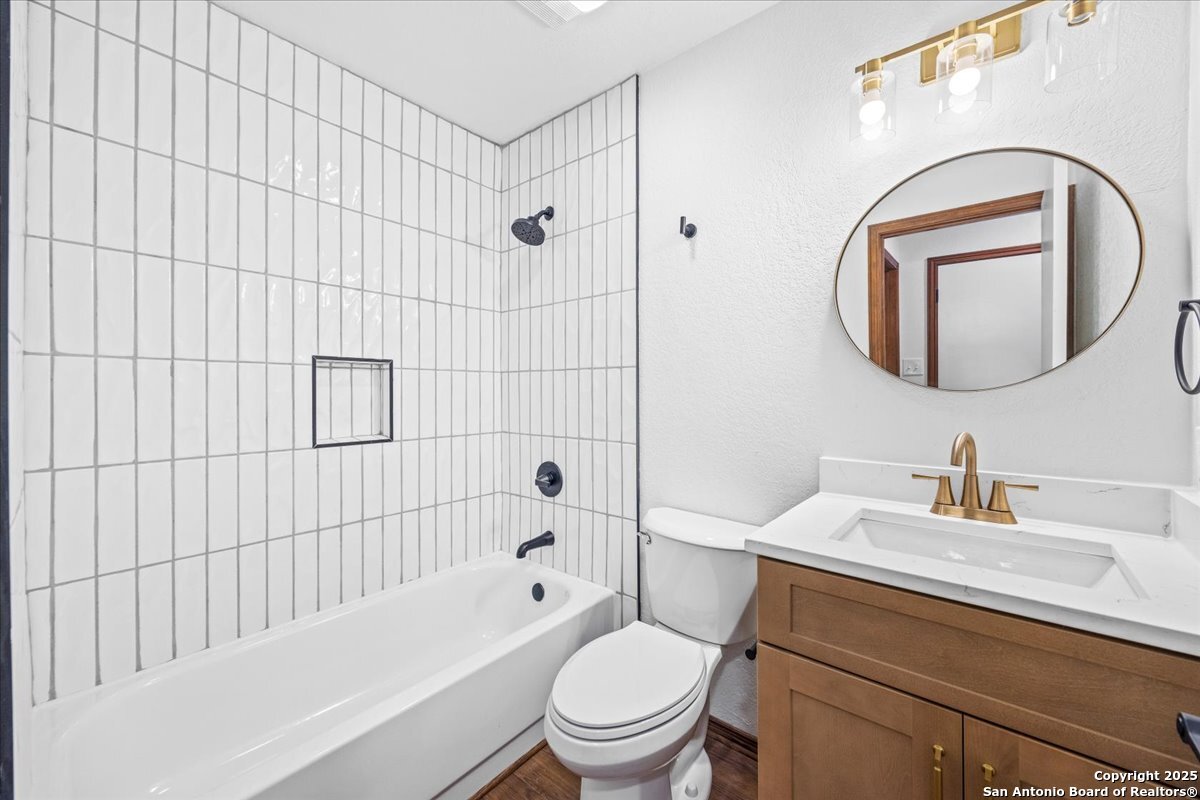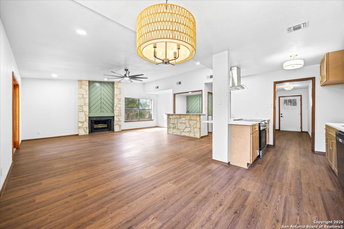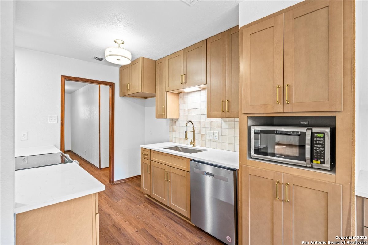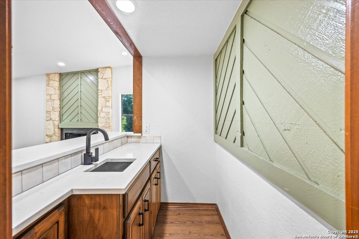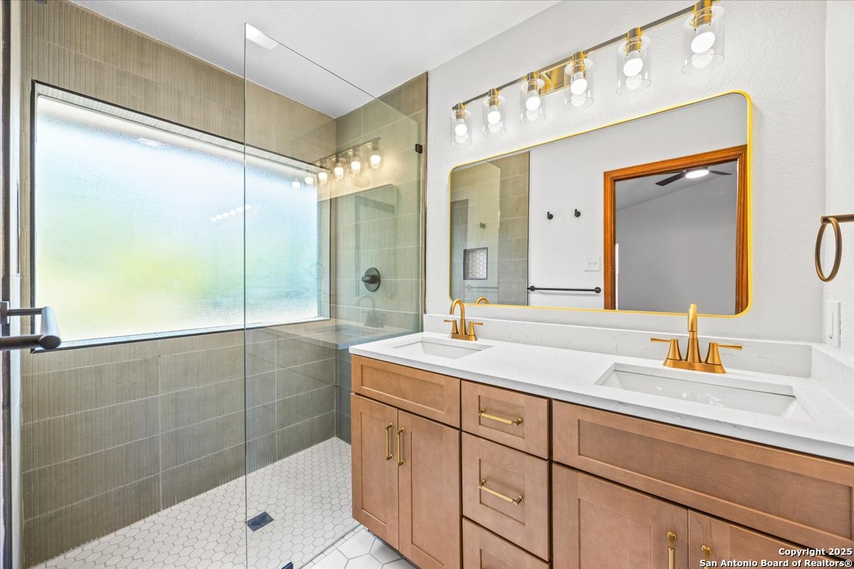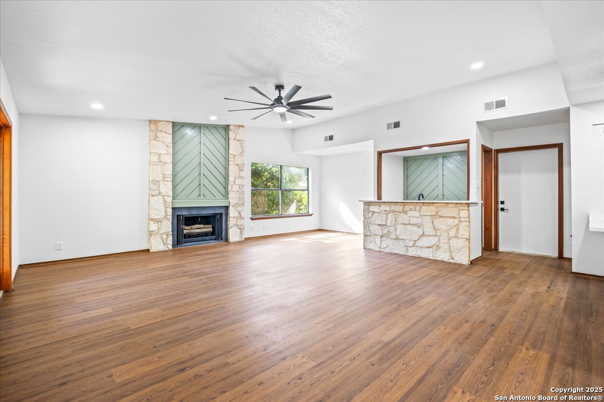 Discover the perfect blend of timeless character and modern luxury in this custom single-story home, nestled in the heart of Green Spring Valley. This renowned community is a true escape, defined by its mature trees and a list of amenities that can't be beat. Every inch of this home has been thoughtfully renovated. The open-concept design creates an inviting atmosphere, with a seamless flow from the living room, complete with a classic wet bar, to the dining area and kitchen. You'll find a fresh, contemporary feel thanks to new paint and beautiful LVP flooring, which runs throughout the entire home-no carpet in sight! There is even a new roof and double pane windows so you don't have to worry about a thing. The kitchen is a showcase of clean design, featuring new cabinets and beautiful quartz countertops. Both bathrooms have also been completely transformed with the same high-end finishes offering a spa-like feel. Outside, the property is a private sanctuary. A covered patio provides a perfect spot for morning coffee. The expansive backyard, shaded by majestic oaks, offers a blank slate for your personal touch, whether it's a lush garden or a vibrant play area. This home is not just a place to live; it's a lifestyle. Enjoy access to a community pool, tennis, basketball, and pickleball courts, plus a 32-acre nature park with walking trails and picnic areas. With easy access to major highways (1604, 410, and 281), you get the perfect blend of a peaceful suburban setting with the convenience of city life.
