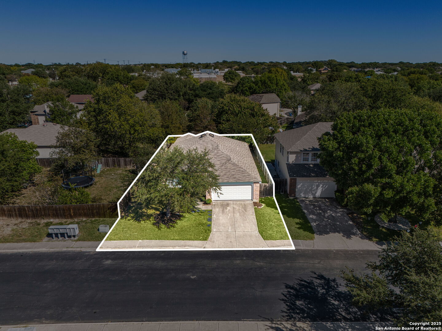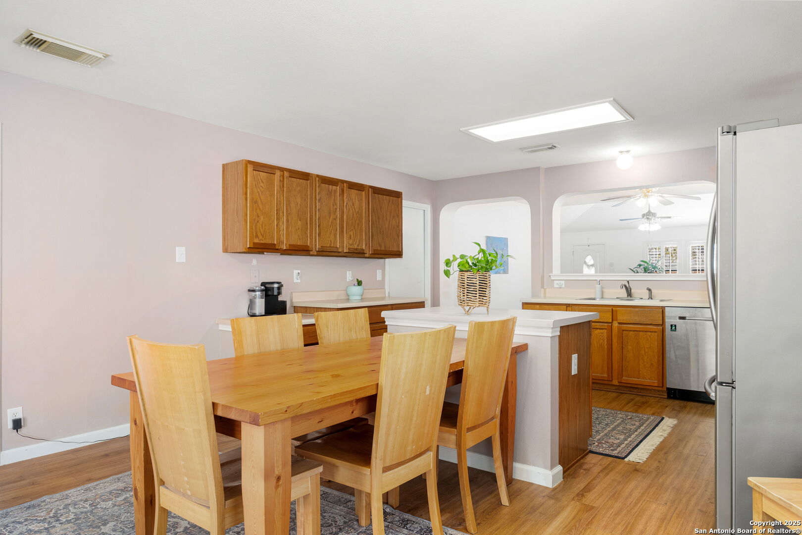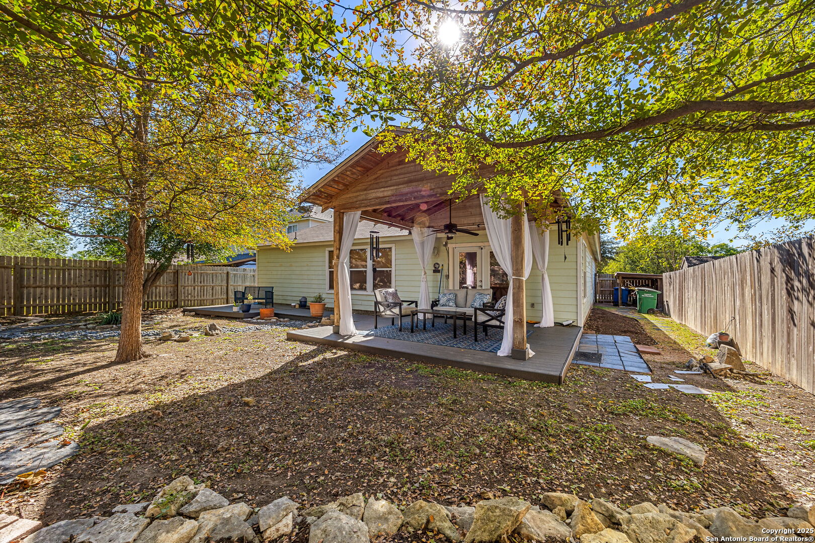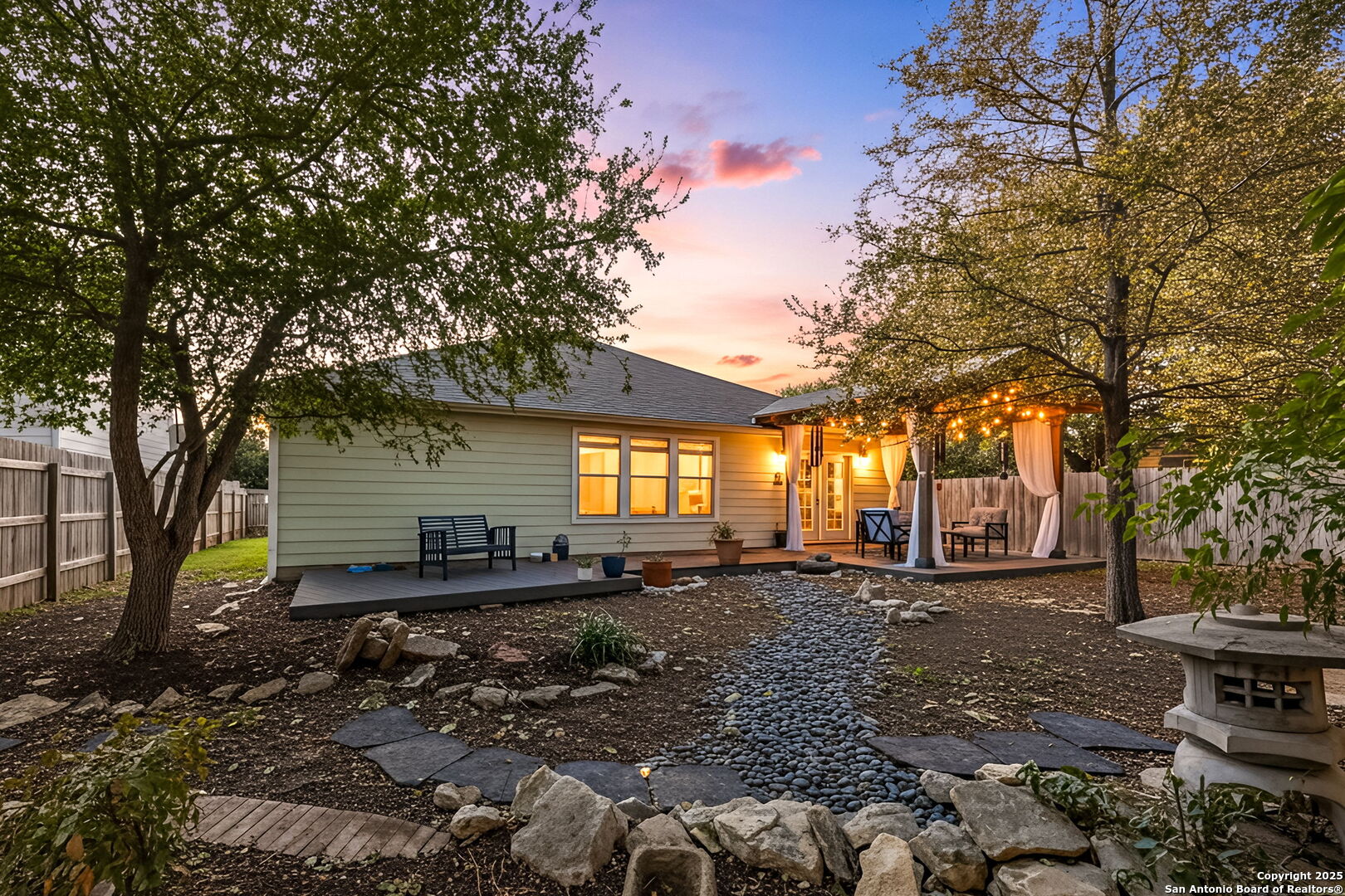 Located in the desirable gated community of the Villas of Spring Creek, this one-story, 3-bedroom, 2-bath home offers a practical layout and is full of many thoughtful updates. The open floor plan provides a light and spacious feel, with a living/dining combo, and luxury vinyl flooring throughout for easy maintenance. The kitchen features an island, stainless steel appliances, and separate breakfast area. The primary bedroom includes an extra room that works well as an office, nursery, or quiet reading space, and two walk-in closets. Both bathrooms have been upgraded, with the secondary bath offering a spa-like feel and the primary bath showcasing a deep oval tub/shower combo with tilework. Enjoy time outdoors on two Trex decks, connected by a Trex pathway, as well as a redwood-covered patio. The backyard has several mature elm trees, creating a peaceful and shaded space. The surrounding neighborhood is known for its mature trees and quiet atmosphere, with convenient access to shopping, Friesenhahn Park, the local library, and multiple schools-two elementary schools and a high school are within walking distance. Don't miss the opportunity to make this beautiful home in your own. Book your personal tour today!