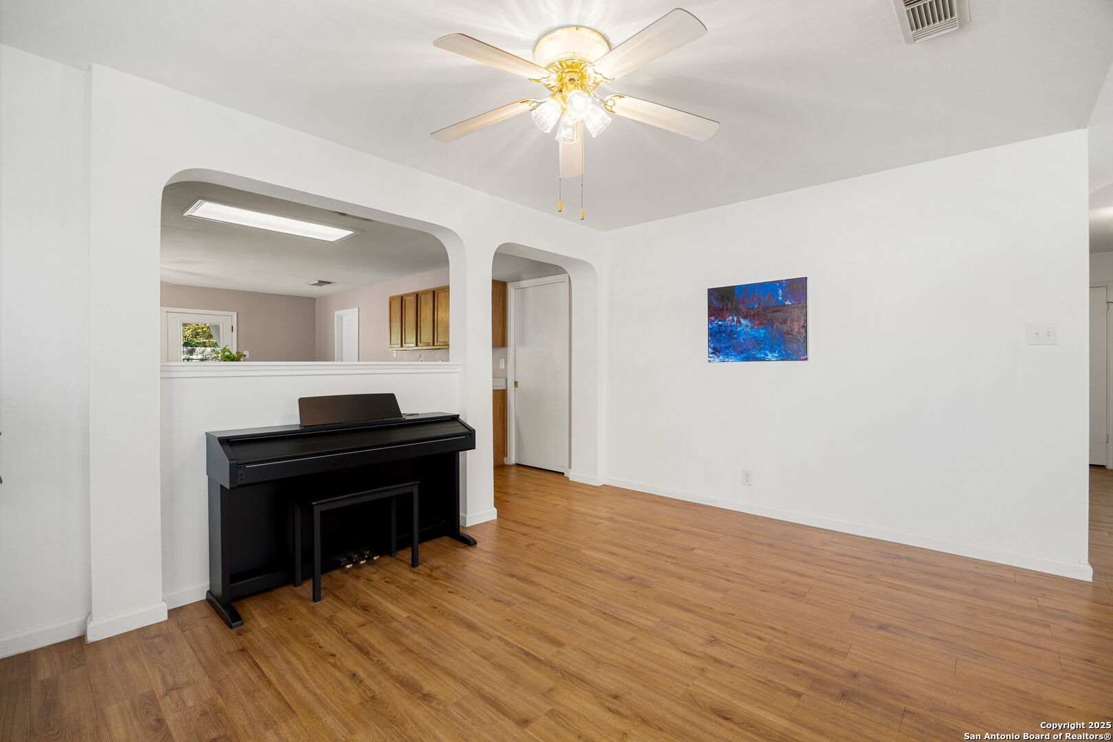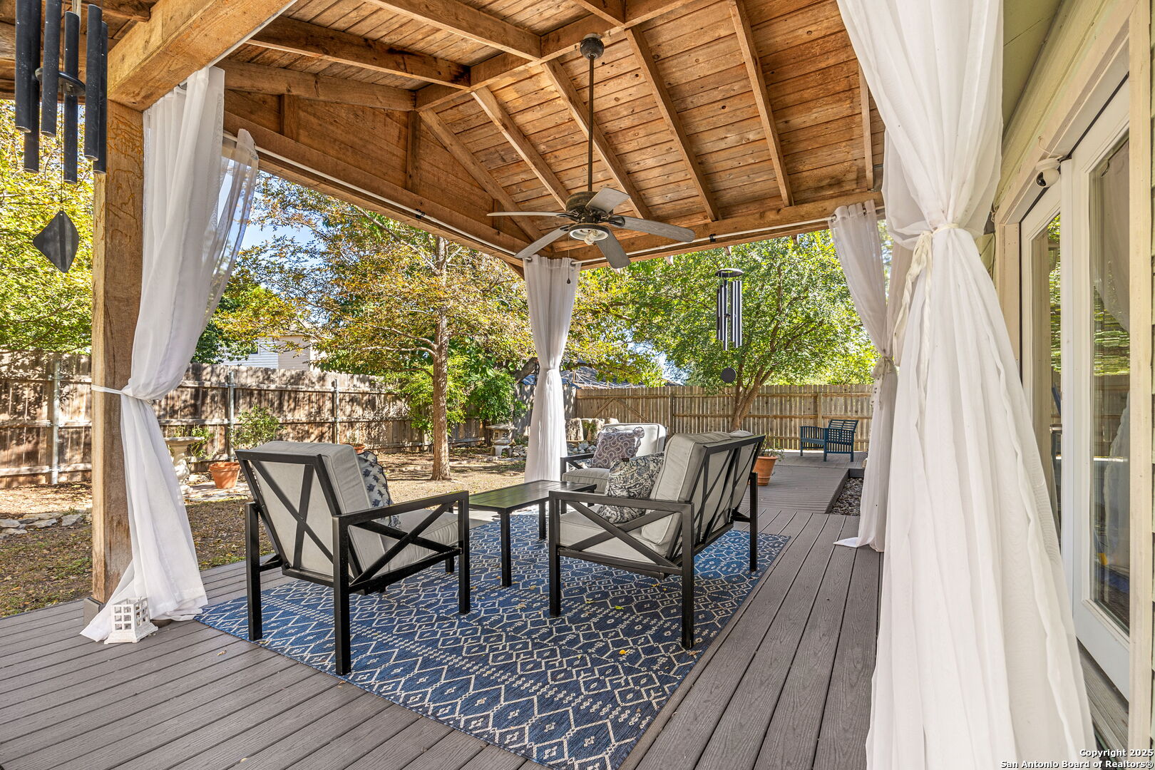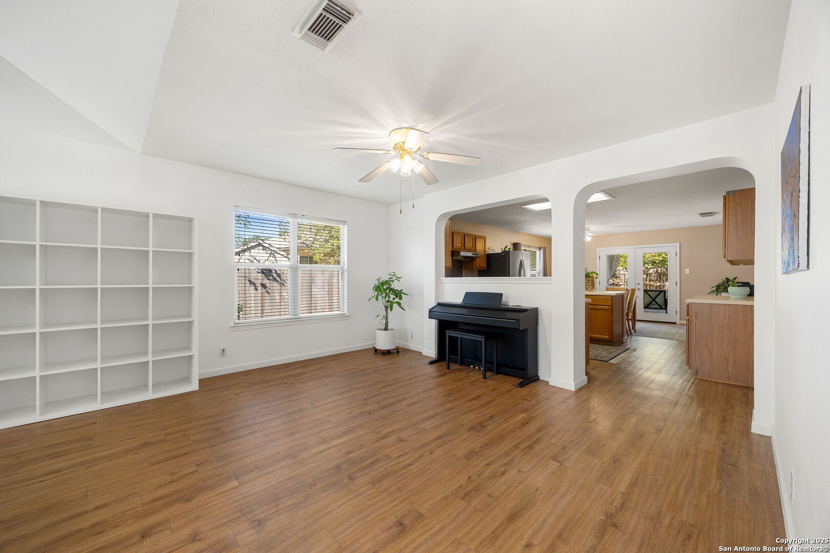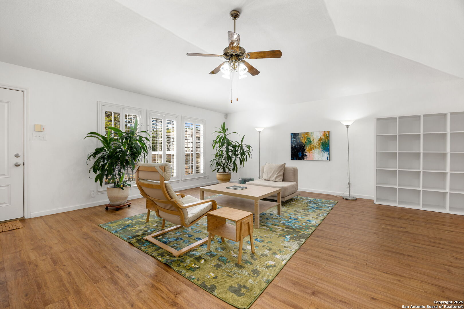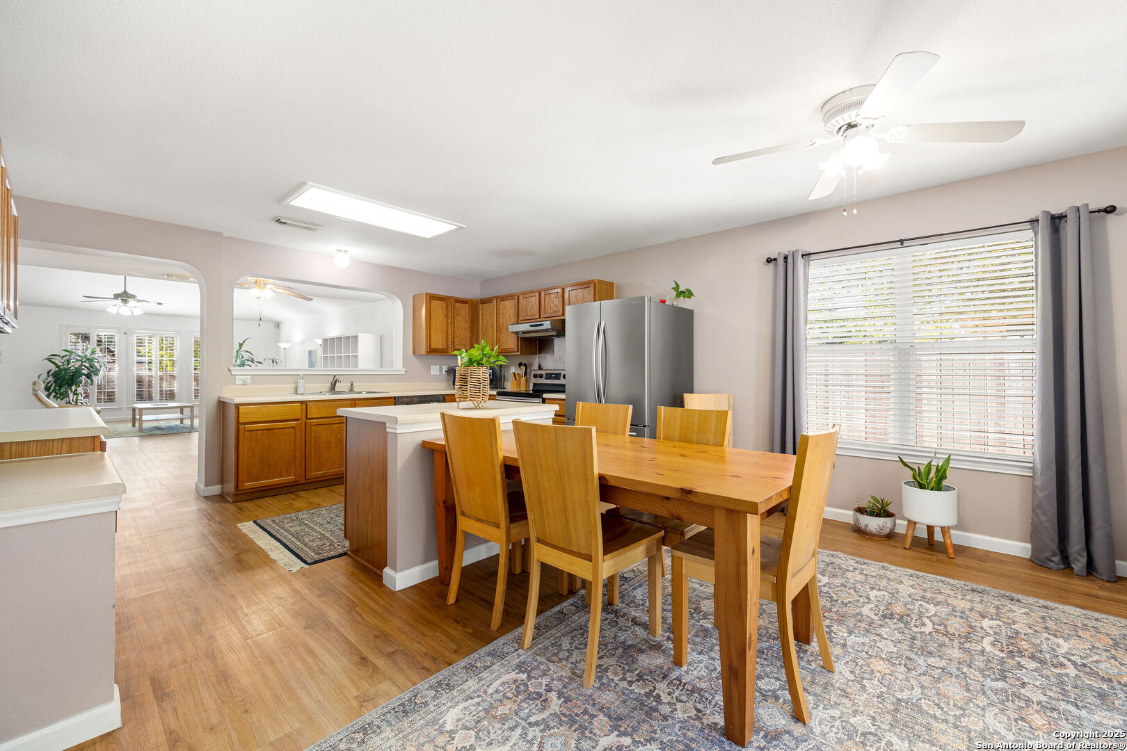 Located in the desirable gated community of the Villas of Spring Creek, this one-story, 3-bedroom, 2-bath home offers a practical layout and is full of many thoughtful updates. The open floor plan provides a light and spacious feel, with a living/dining combo, and luxury vinyl flooring throughout for easy maintenance. The kitchen features an island, stainless steel appliances, and separate breakfast area. The primary bedroom includes an extra room that works well as an office, nursery, or quiet reading space, and two walk-in closets. Both bathrooms have been upgraded, with the secondary bath offering a spa-like feel and the primary bath showcasing a deep oval tub/shower combo with tilework. Enjoy time outdoors on two Trex decks, connected by a Trex pathway, as well as a redwood-covered patio. The backyard has several mature elm trees, creating a peaceful and shaded space. The surrounding neighborhood is known for its mature trees and quiet atmosphere, with convenient access to shopping, Friesenhahn Park, the local library, and multiple schools-two elementary schools and a high school are within walking distance. Don't miss the opportunity to make this beautiful home in your own. Book your personal tour today!