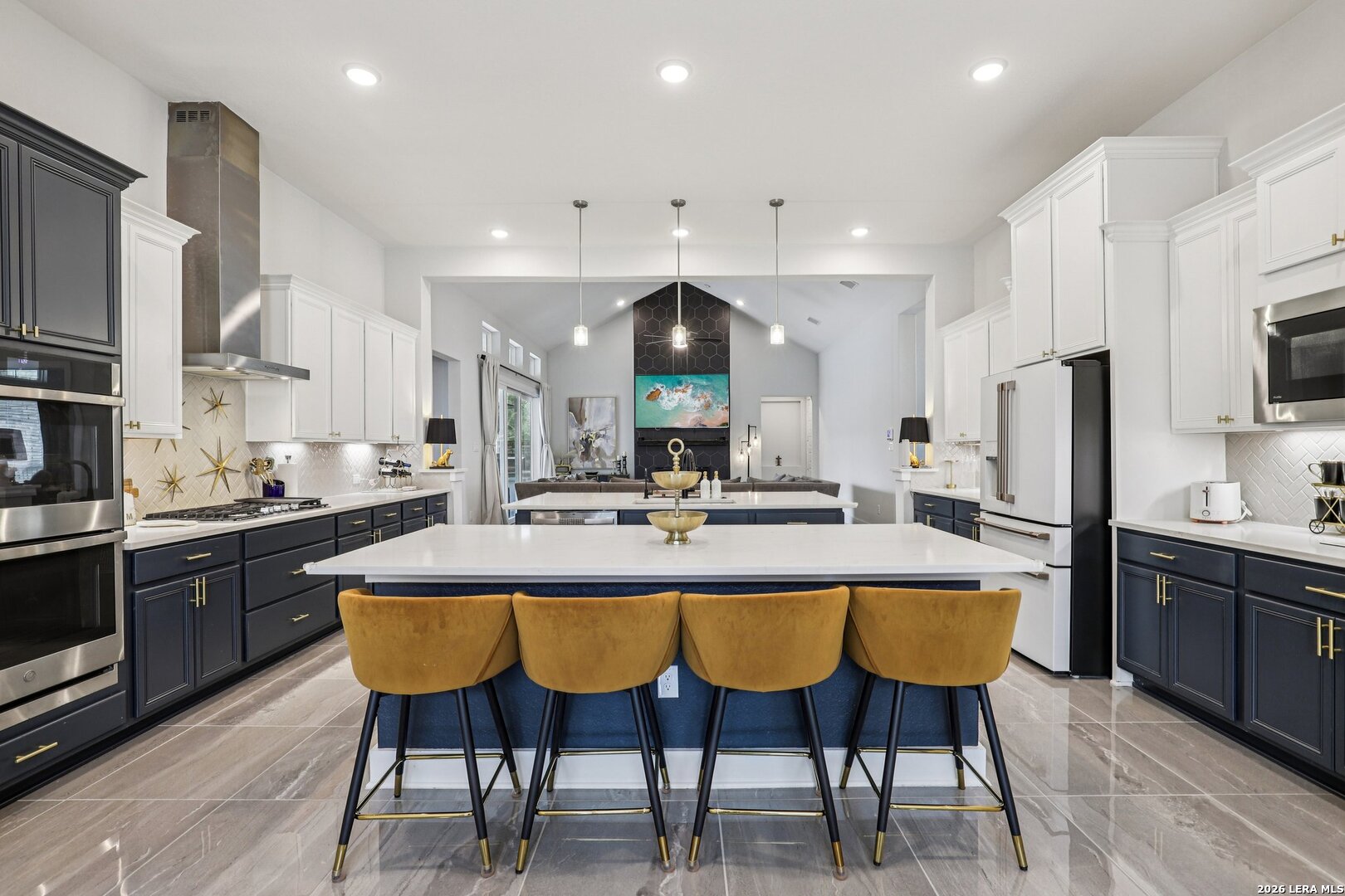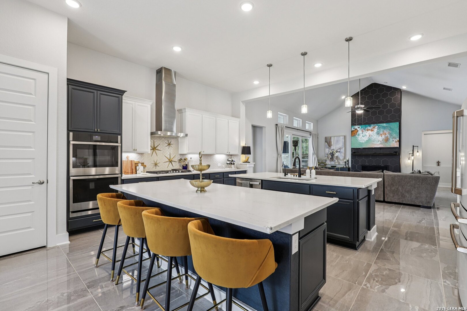 This exquisite Chesmar Bethany floor plan is situated on a spacious one-acre estate, affording uncompromised seclusion and luxury. The outdoor kitchen, complete with a heated spa and gas fireplace, seamlessly integrates indoor and outdoor living via wall-to-wall sliding glass doors that frame the expansive outdoor living area. This stunning open floor plan boasts a double island kitchen, formal dining area, and floor-to-ceiling tile fireplace, fostering an ideal atmosphere for entertainment. With four generously proportioned bedrooms, each featuring its own ensuite bathroom, plus a half bath downstairs and another upstairs, this residence provides ample accommodation for residents. Additional features include a mud room, full-sized laundry facility, media room, game room, and three-car garage with a driveway extension for convenient parking, rendering this property a veritable must-see!