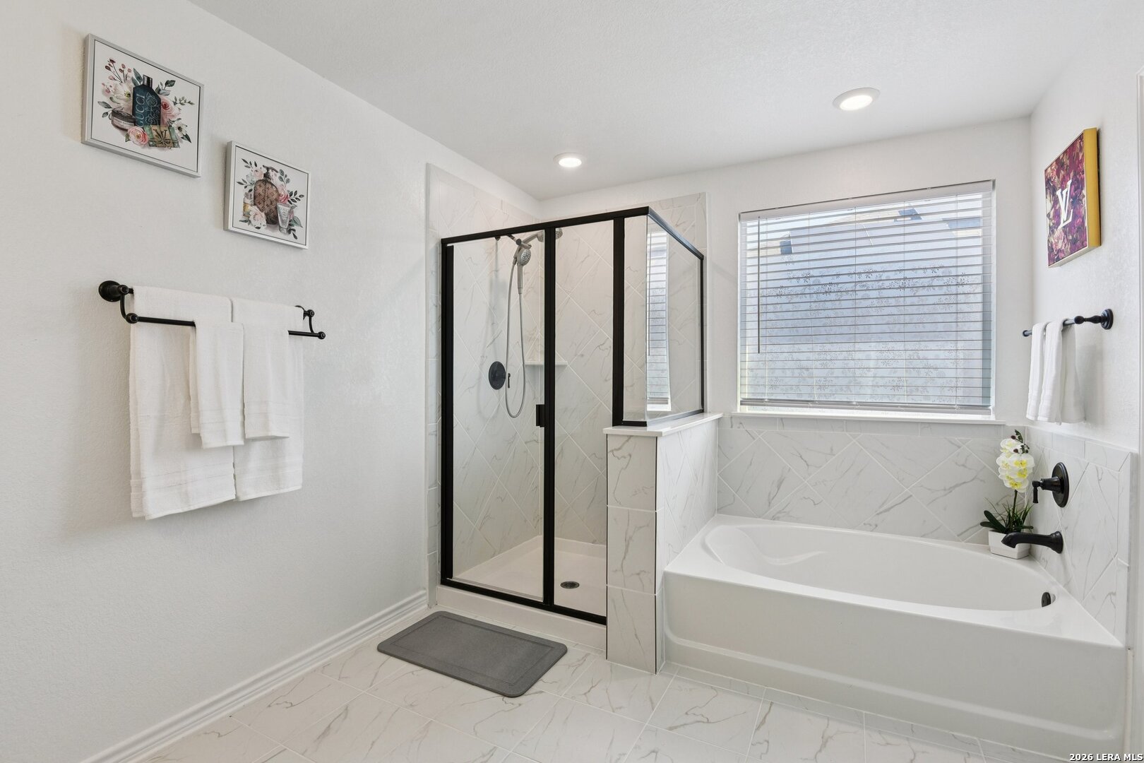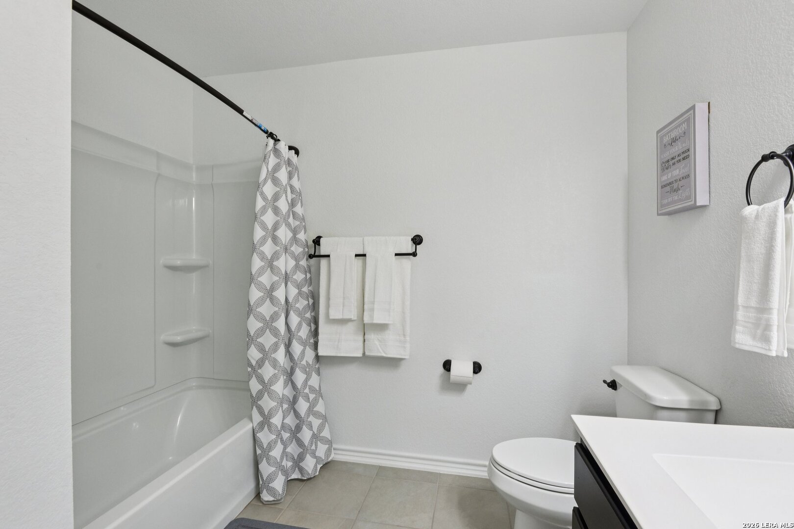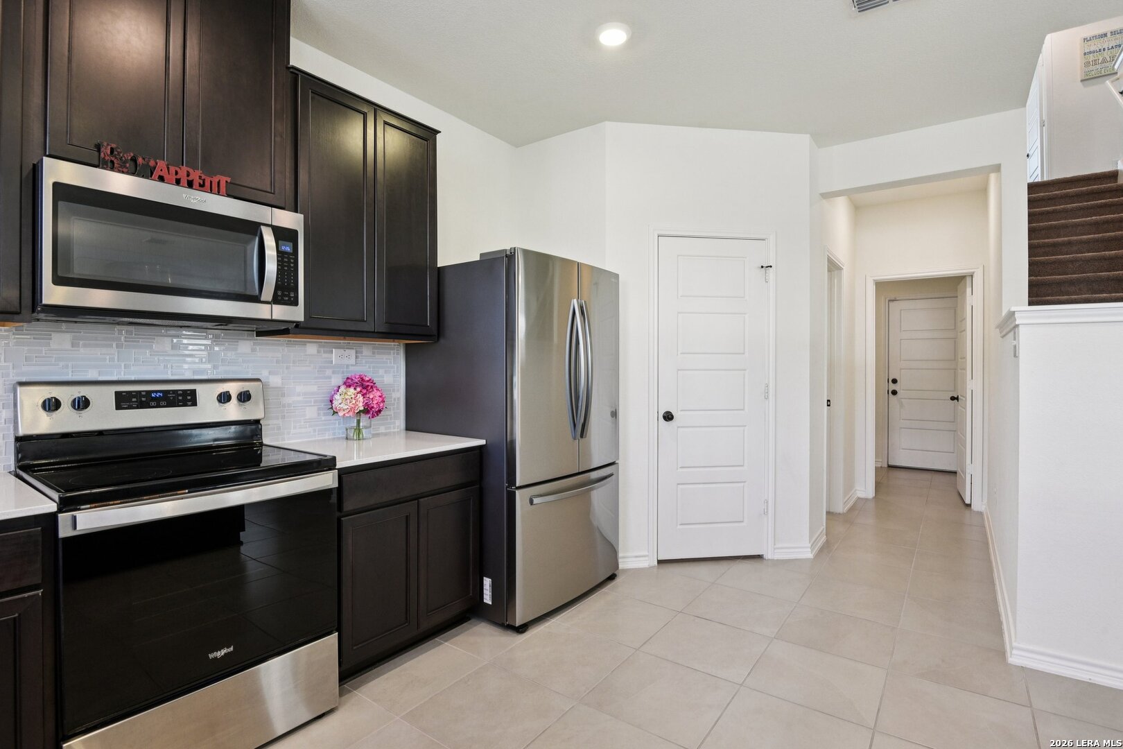 This lovely home has open 9-ft. first floor ceilings. Enjoy trying new recipes in the modern kitchen with Woodmont Cabinetry Belmont 42-in. upper cabinets with maple stain, Silestone countertop with Emser Entity Energy glossy tile backsplash, extended breakfast bar, Moen Sleek faucet, and Whirlpool appliances. The spacious primary bath has a raised vanity, a separate 42-in. garden tub and shower with tile surround, and Moen Dartmoor faucets and showerhead. Durable Emser ceramic tile flooring covers the great room, kitchen, primary bath, and powder bath. Outdoor living is a breeze with a covered patio and full sprinkler system. Other features include garage door opener with transmitters, soft water loop, wireless security system, Kwikset Polo interior door hardware. Don't miss the chance to live in the wonderful TEXAS RESEARCH PARK Subdivision which provides neighborhood ammenites to include a pool and playground.