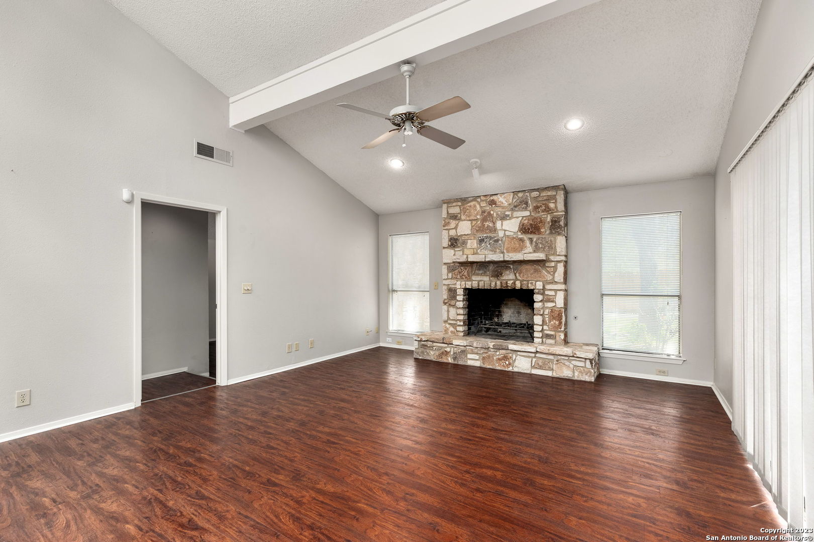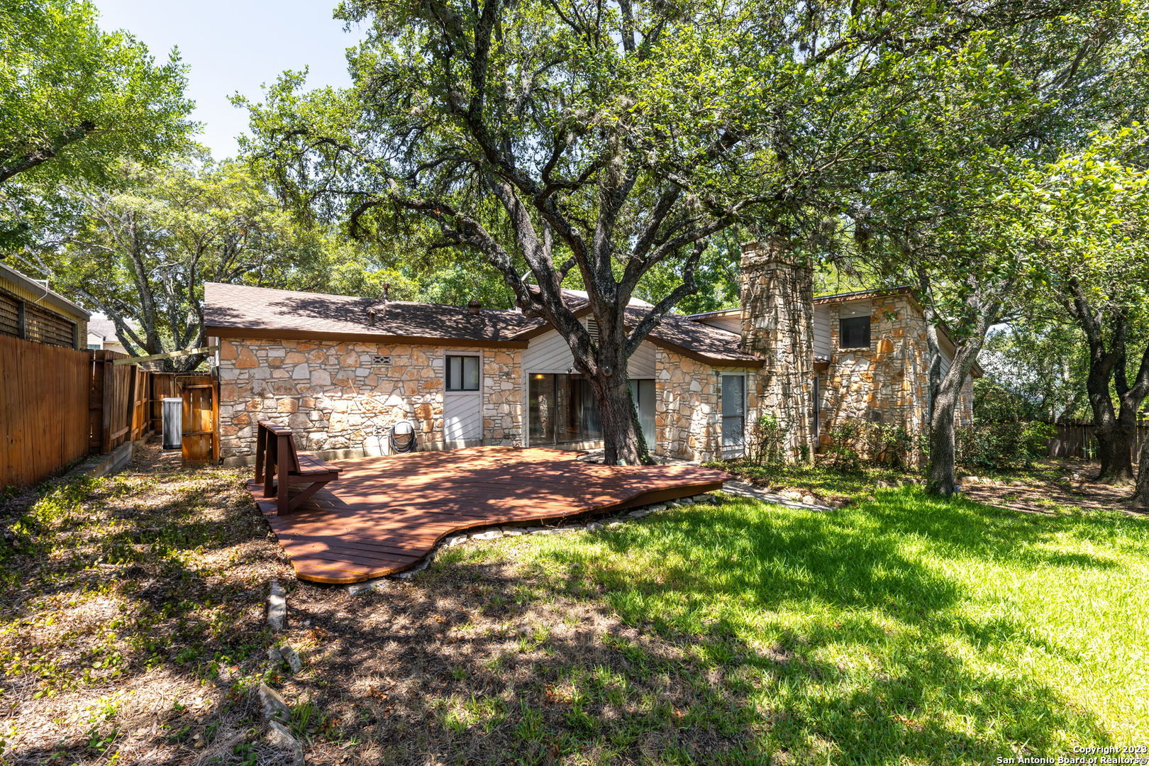 BEAUTIFUL 3 BEDROOM, 2 BATH HOME FOR SALE IN THE HIGHLY SOUGHT-AFTER GREEN SPRING VALLEY SUBDIVISIION. ATRIUM, HIGH CEILINGS, SPLIT FLOORPLAN, LARGE LIVING AREA WITH ROCK FIREPLACE, SEPARATE DINING ROOM, 2 CAR GARAGE, MANY MATURE TREES, LARGE WOODEN DECK IN BACKYARD UNDER BEAUTIFUL HUGE OAK TREE, PRIVACY FENCED, UTILITY ROOM INSIDE. GREAT LOCATION WITH EASY ACCESS TO LOOP 1604. SUBDIVISION OFFERS SWIMMING POOL WITHIN CLOSE WALKING DISTANCE TO THIS PROPERTY. NEIGHBORHOOD AMMENITIES ALSO INCLUDE A CLUBHOUSE, WALKING/JOGGING TRAIL, TENNIS COURT, PICKLEBALL COURT, PARK/PLAYGROUND, SPORTS COURT, AND BBQ GRILLS. LOCATED CLOSE TO GROCERY STORES AND SHOPPING.