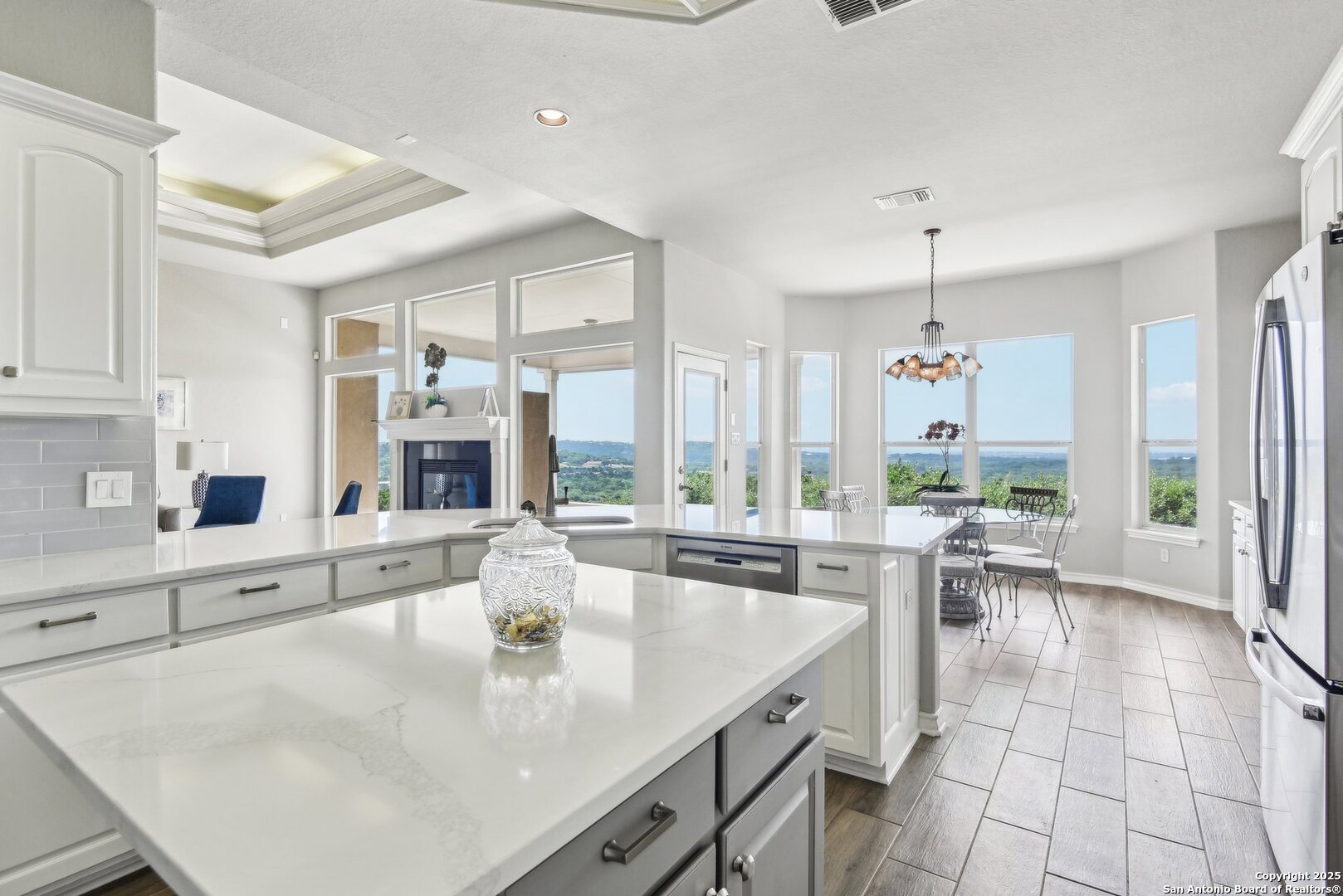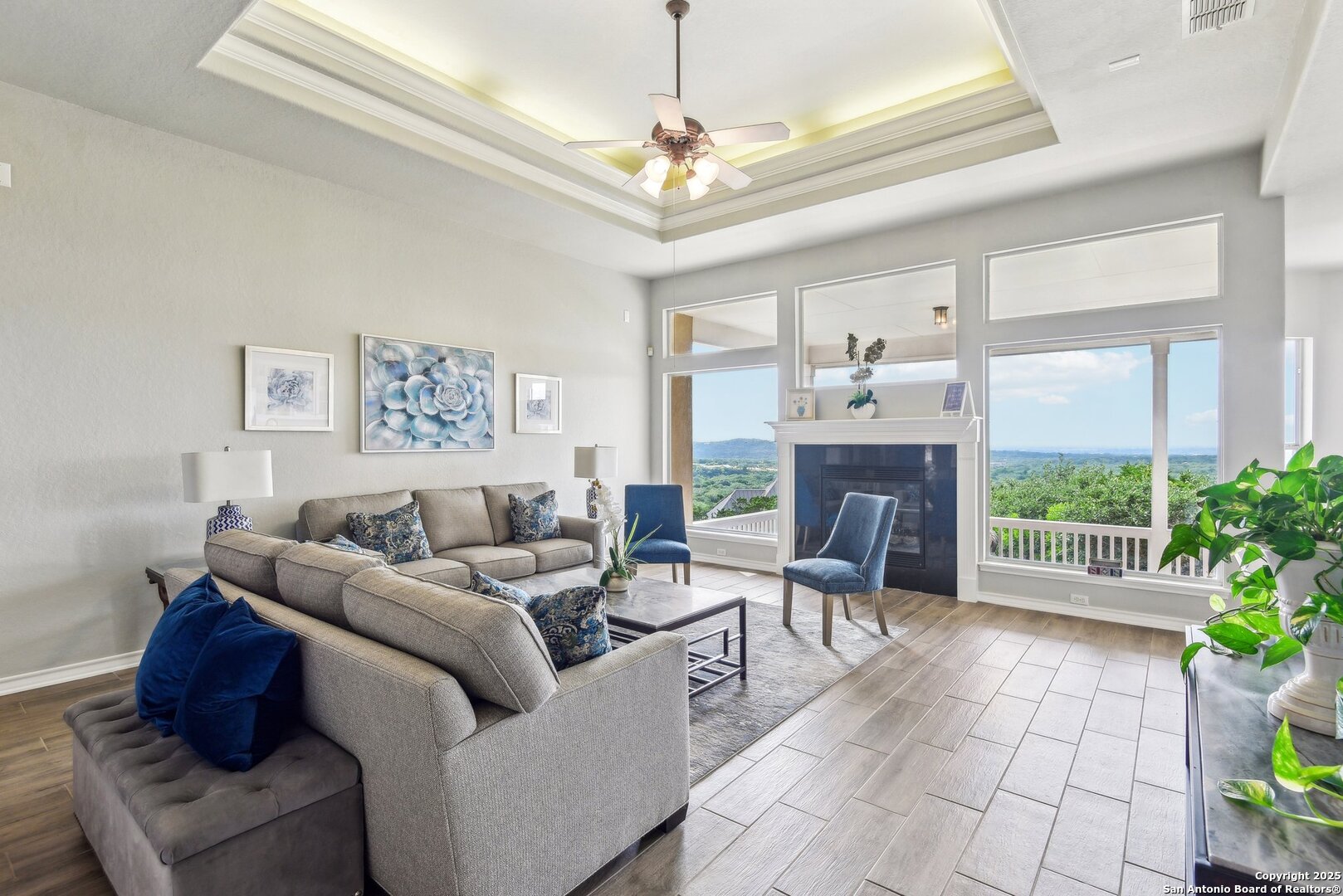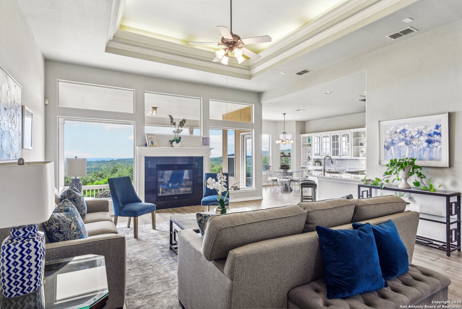The Stunning Hill Country Views will leave you speechless! This is a "Top of the List" house that is located in the great city of Helotes Texas and sits on one acre of land! This breathtaking home features a welcoming entrance that leads you straight to the living room where you will begin your mornings with a sense of tranquility and happiness as you gaze into the endless view of the horizon. The fireplace looks amazing and it adds perfectly to the overall ambiance of the room. As you make your way to the immaculate kitchen area you will see a breakfast space that is perfectly positioned with the best views! The kitchen is ideal for entertaining and it features elegant countertops, a good sized island, gas cooktop, walk in pantry and plenty of pretty cabinet space. The remaining areas of the main floor of the home feature a stylish office area along with another eating/entertainment space. The beautiful office will make working out of the house feel like a vacation! The Owners retreat is on the main floor of the home and it is large and inviting. When you walk into the bathroom area you will be impressed by the design, look and appeal that awaits you with a relaxing reward to the end of your day. As you make your way to the top floor of the home you will see a game/entertainment room that includes a bar area which is perfect for gatherings. Bedrooms 2 and 3 are spacious and located near the 2nd full bathroom. The upstairs area is truly a well thought out space! When you visit the home make sure to take some time to enjoy the back patio area. It will be worth it! Come and get your own private piece of the Hill Country where you are close enough to shopping, access to highways, schools and large corporations for work but far enough to be away from it all as well. You will be happy you did.