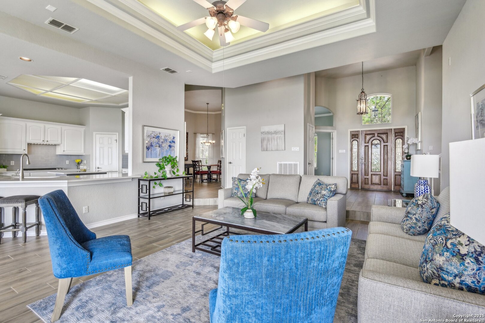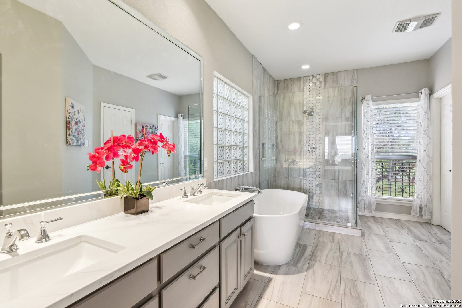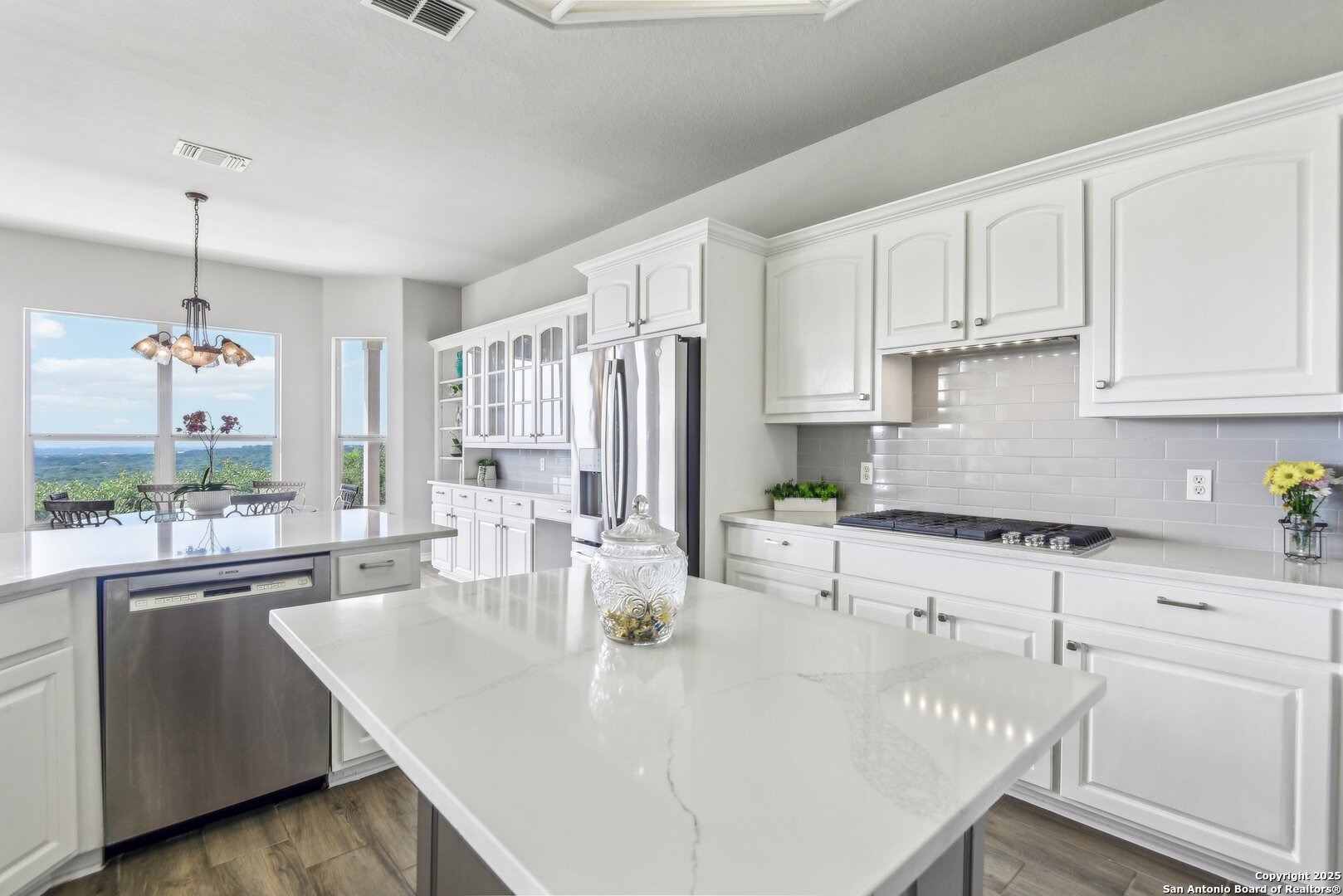 The Stunning Hill Country Views will leave you speechless! This is a "Top of the List" house that is located in the great city of Helotes Texas and sits on one acre of land! This breathtaking home features a welcoming entrance that leads you straight to the living room where you will begin your mornings with a sense of tranquility and happiness as you gaze into the endless view of the horizon. The fireplace looks amazing and it adds perfectly to the overall ambiance of the room. As you make your way to the immaculate kitchen area you will see a breakfast space that is perfectly positioned with the best views! The kitchen is ideal for entertaining and it features elegant countertops, a good sized island, gas cooktop, walk in pantry and plenty of pretty cabinet space. The remaining areas of the main floor of the home feature a stylish office area along with another eating/entertainment space. The beautiful office will make working out of the house feel like a vacation! The Owners retreat is on the main floor of the home and it is large and inviting. When you walk into the bathroom area you will be impressed by the design, look and appeal that awaits you with a relaxing reward to the end of your day. As you make your way to the top floor of the home you will see a game/entertainment room that includes a bar area which is perfect for gatherings. Bedrooms 2 and 3 are spacious and located near the 2nd full bathroom. The upstairs area is truly a well thought out space! When you visit the home make sure to take some time to enjoy the back patio area. It will be worth it! Come and get your own private piece of the Hill Country where you are close enough to shopping, access to highways, schools and large corporations for work but far enough to be away from it all as well. You will be happy you did.