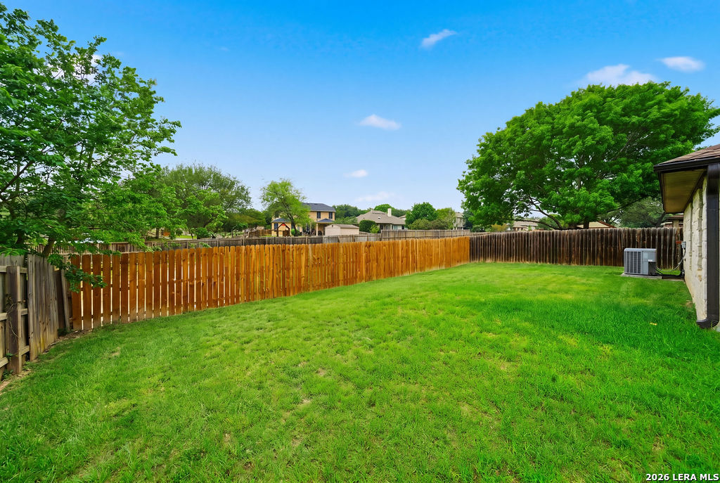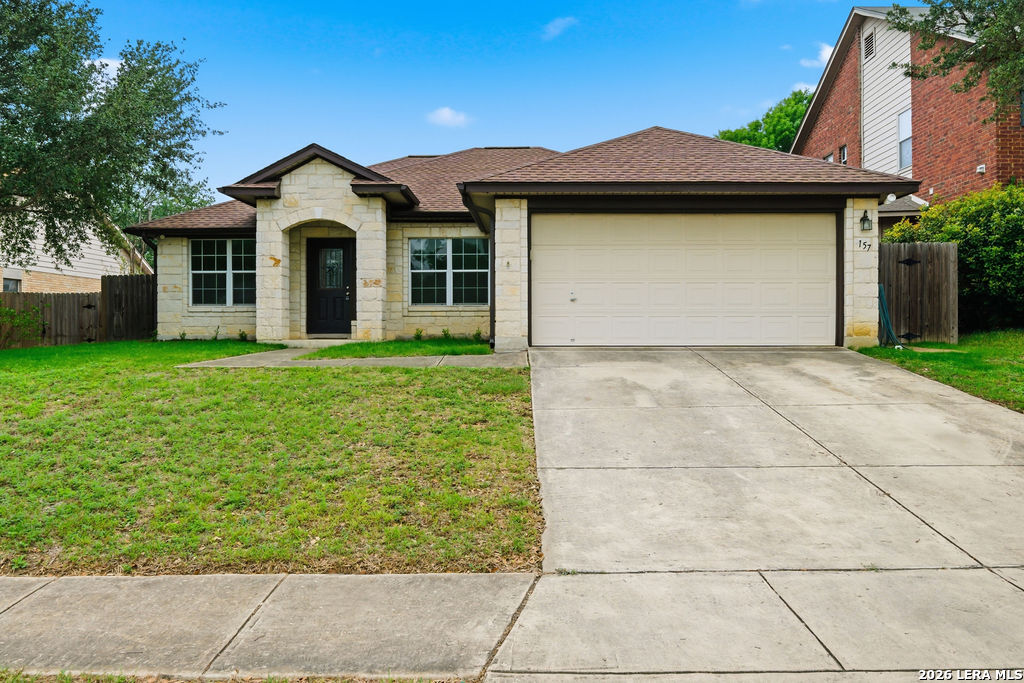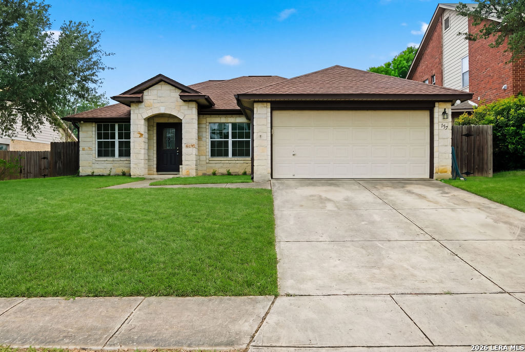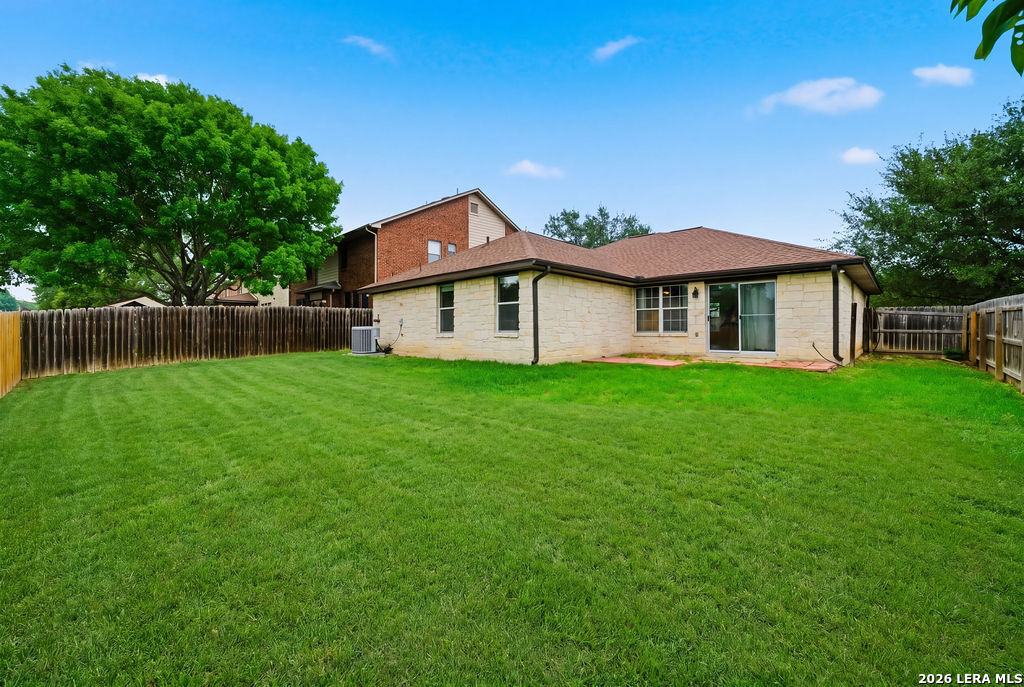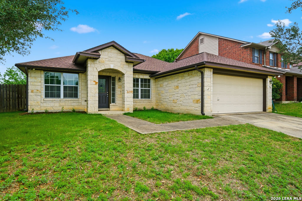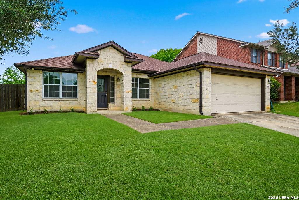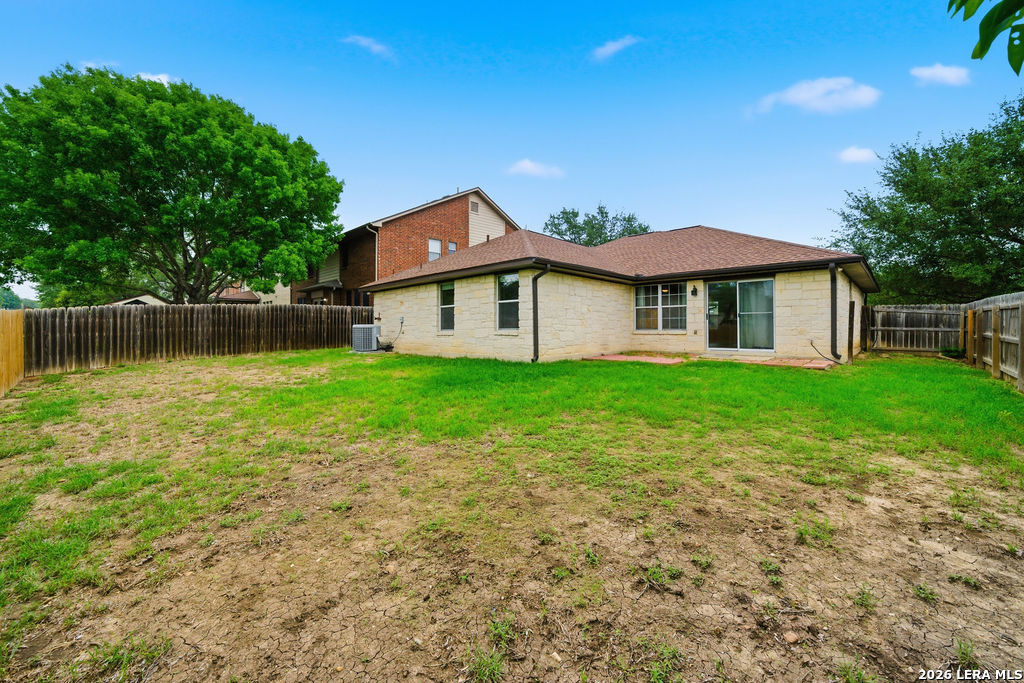 Your new home awaits! This single story 3 bed/2 bath home offers plenty of entertaining space with a second living room and formal dining room as you enter the home. The kitchen and living room flow seamlessly, opening up the space. Enjoy a faux electric fireplace with flickering flames that provides plenty of heat. Perfect for those chilly winter nights. In the kitchen, the countertops have been upgraded to granite and feature stainless steel appliances. The primary bedroom is located at the rear of the home, for added privacy. The primary bathroom features dual vanities and a separate shower/tub. A spacious backyard is your new canvas to create your own personal oasis. The back fence was replaced in 2024 and backs up to a greenbelt. Recent updates: New roof (replaced in October of 2023), A/C was replaced in June of 2019, and the water heater was replaced in March of 2023. Conveniently located just six miles outside of Loop 1604 in Schertz/Cibolo with easy access to plenty of options for shopping, dining, and entertainment. Within 20 minutes of Randolph AFB, and Brooke Army Medical Center. Only 20 minutes to San Antonio International and 50 minutes to Austin-Bergstrom Airport.