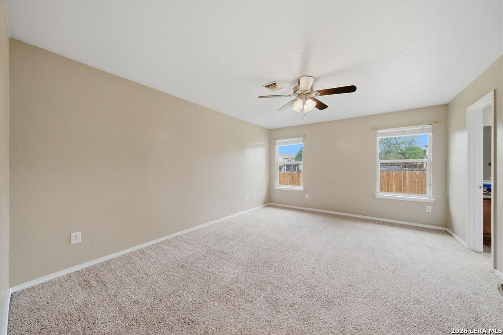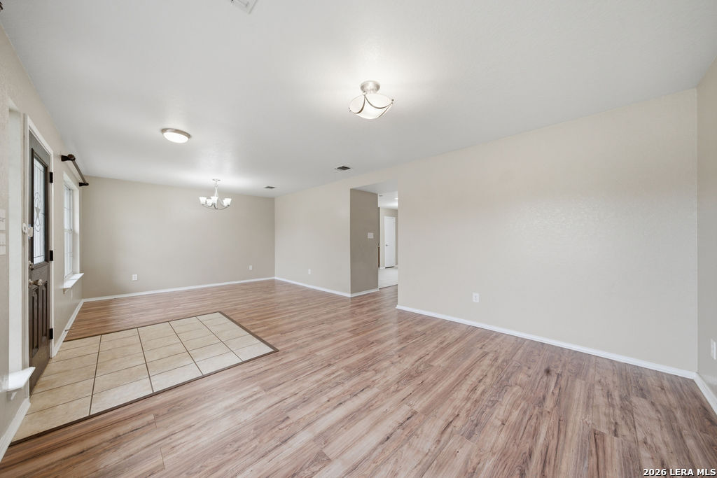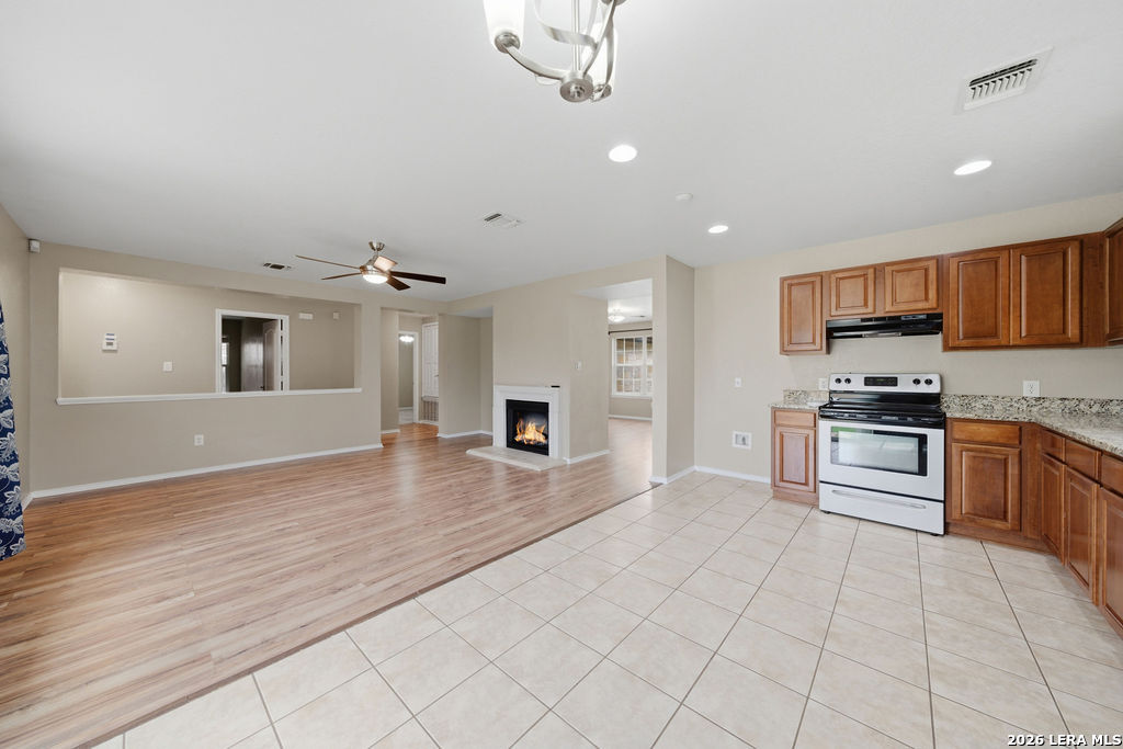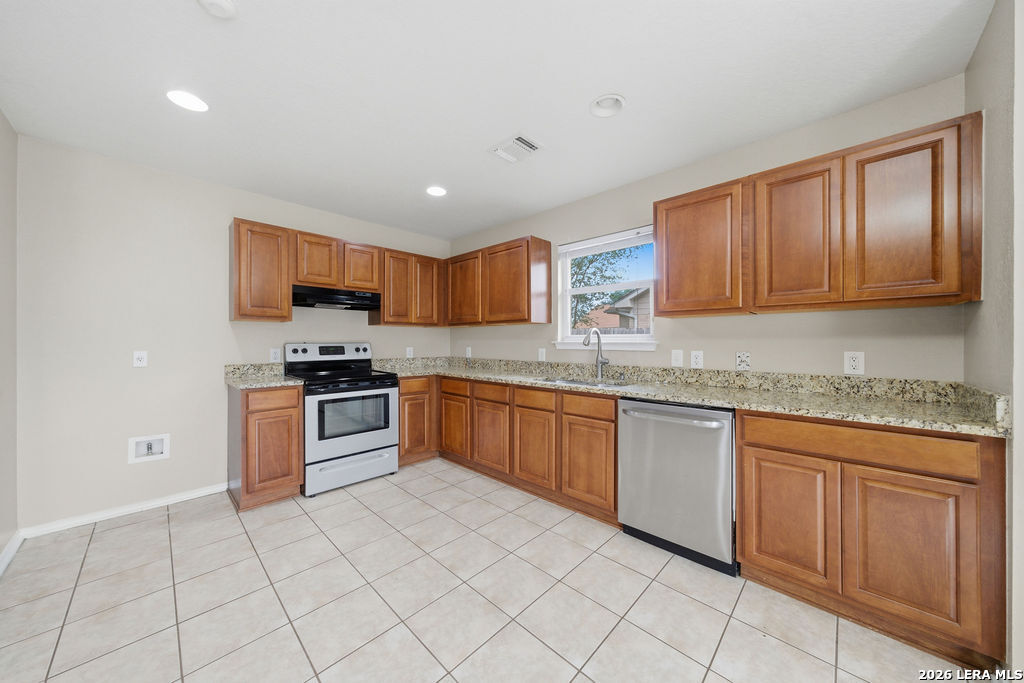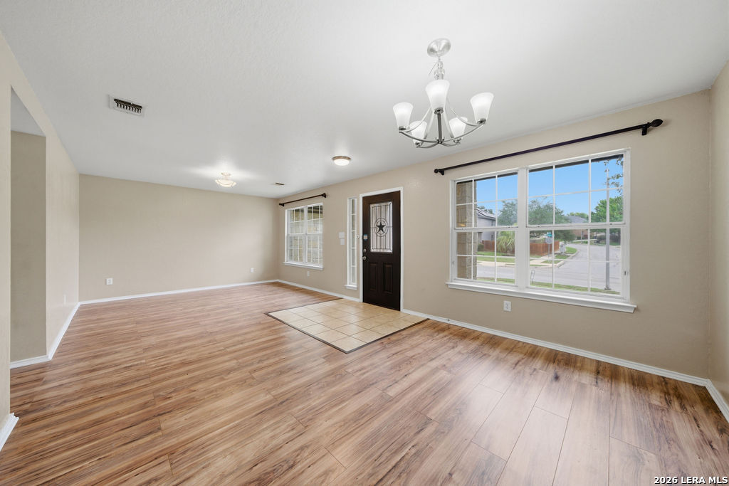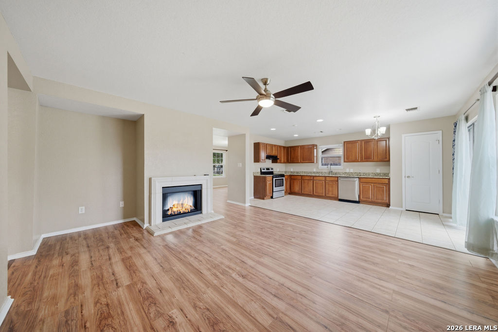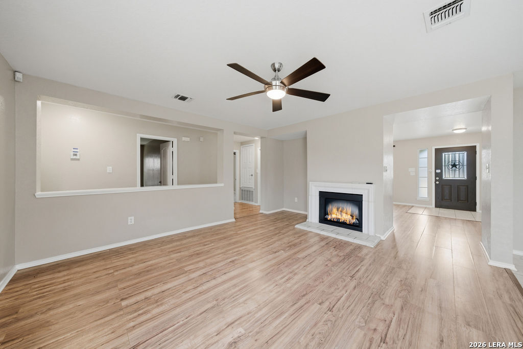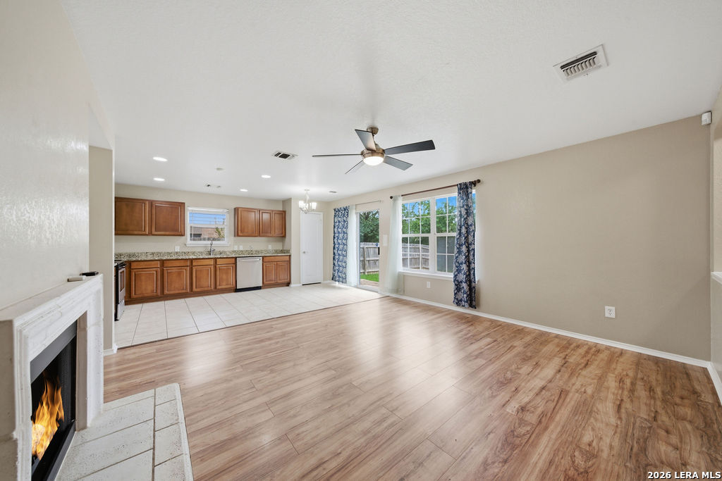 Your new home awaits! This single story 3 bed/2 bath home offers plenty of entertaining space with a second living room and formal dining room as you enter the home. The kitchen and living room flow seamlessly, opening up the space. Enjoy a faux electric fireplace with flickering flames that provides plenty of heat. Perfect for those chilly winter nights. In the kitchen, the countertops have been upgraded to granite and feature stainless steel appliances. The primary bedroom is located at the rear of the home, for added privacy. The primary bathroom features dual vanities and a separate shower/tub. A spacious backyard is your new canvas to create your own personal oasis. The back fence was replaced in 2024 and backs up to a greenbelt. Recent updates: New roof (replaced in October of 2023), A/C was replaced in June of 2019, and the water heater was replaced in March of 2023. Conveniently located just six miles outside of Loop 1604 in Schertz/Cibolo with easy access to plenty of options for shopping, dining, and entertainment. Within 20 minutes of Randolph AFB, and Brooke Army Medical Center. Only 20 minutes to San Antonio International and 50 minutes to Austin-Bergstrom Airport.
