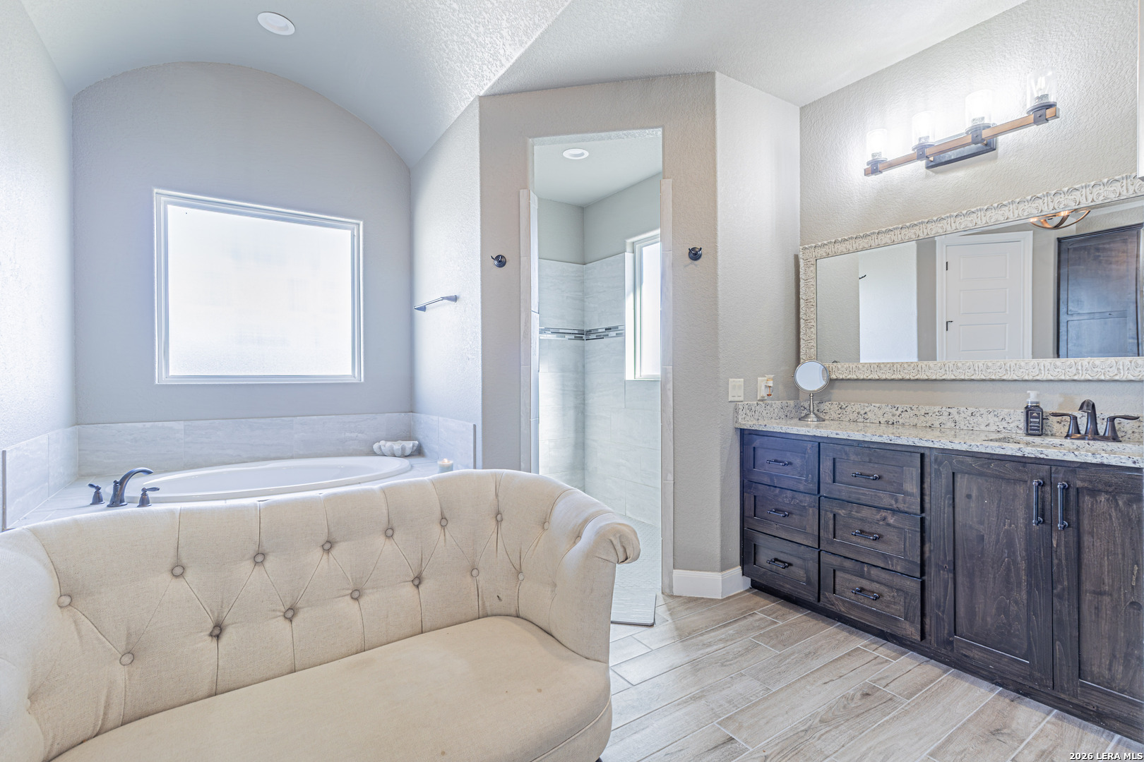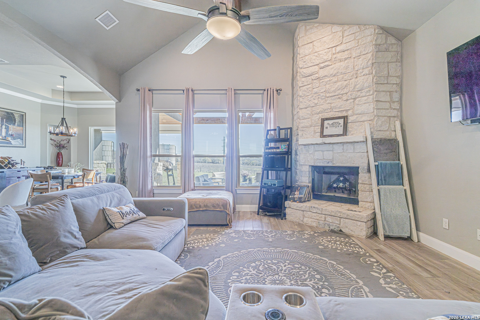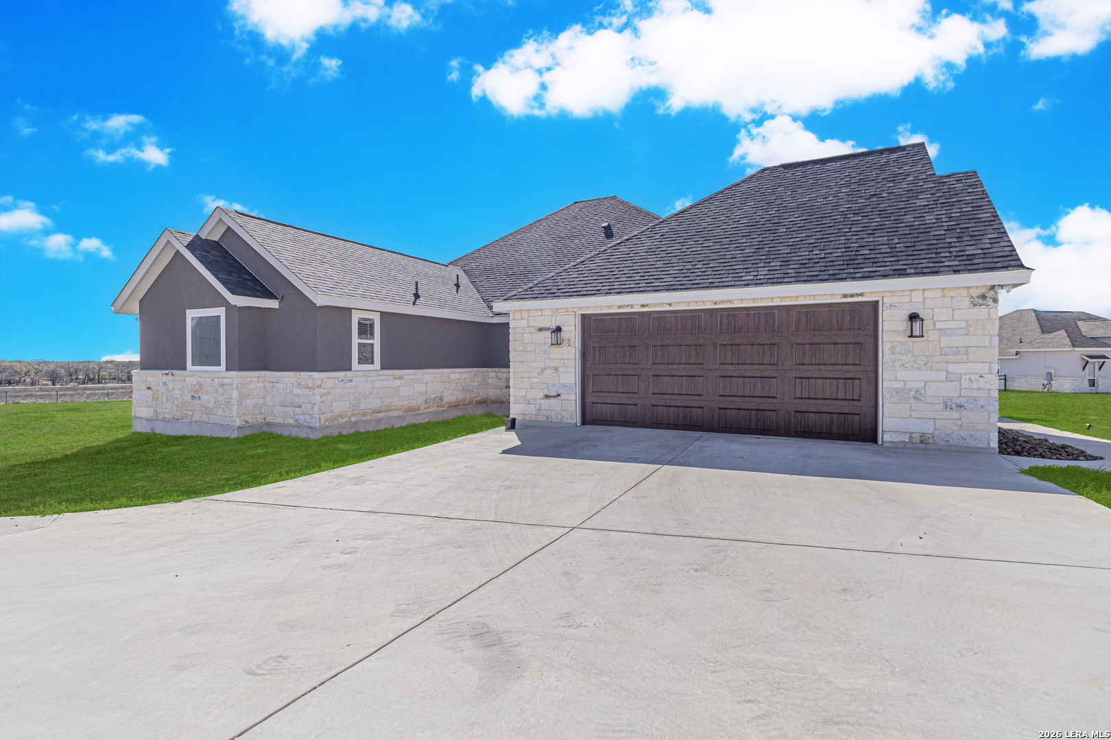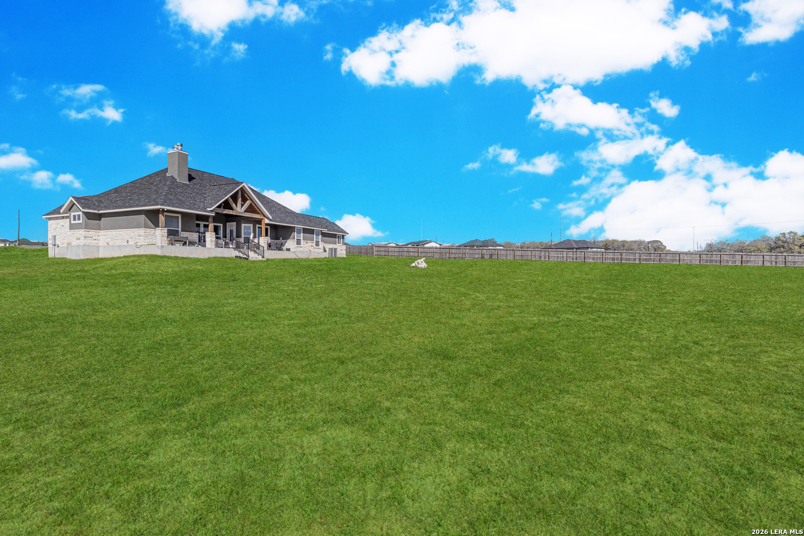 Beautiful 4-bedroom, 2.5-bath home situated on a spacious 1.22-acre cul-de-sac lot in the heart of La Vernia. Offering 2,541 sq ft of thoughtfully designed living space, this home features soaring 12-foot tray ceilings, elegant porcelain tile flooring, and an open-concept layout ideal for everyday living and entertaining. The chef's kitchen is a standout with granite countertops, custom backsplash, walk-in pantry, and a striking architectural archway that adds character and charm. The private owner's suite provides a relaxing retreat with a double vanity and beautiful tumbled stone walk-in shower in the en-suite bath. Enjoy the dog shower in the utility room to keep your furry friend clean! Step outside to the covered patio overlooking wide open space, perfect for relaxing evenings, weekend gatherings, or simply enjoying the peaceful surroundings. This beautifully maintained property offers comfort, style, and plenty of room to grow.