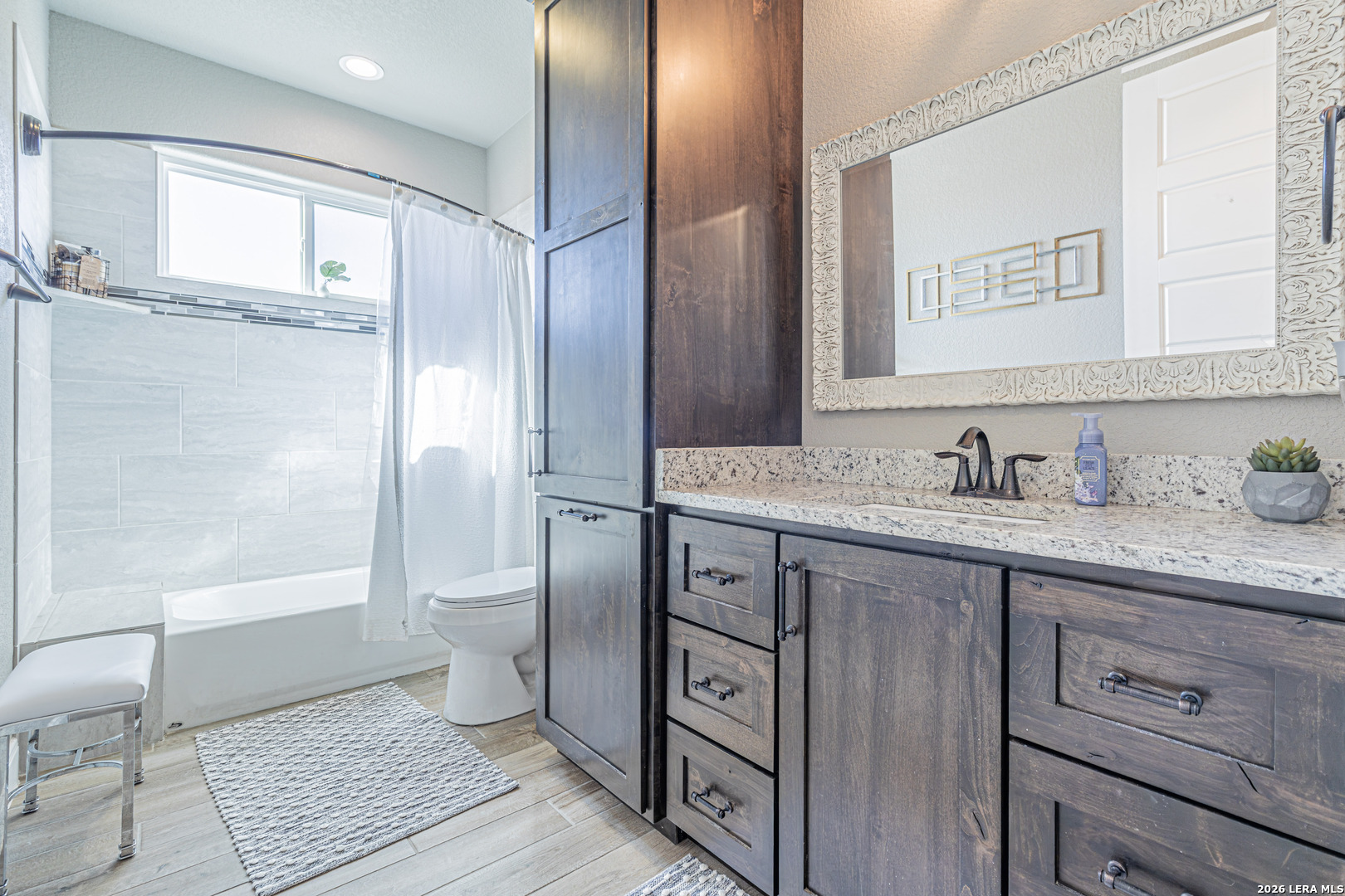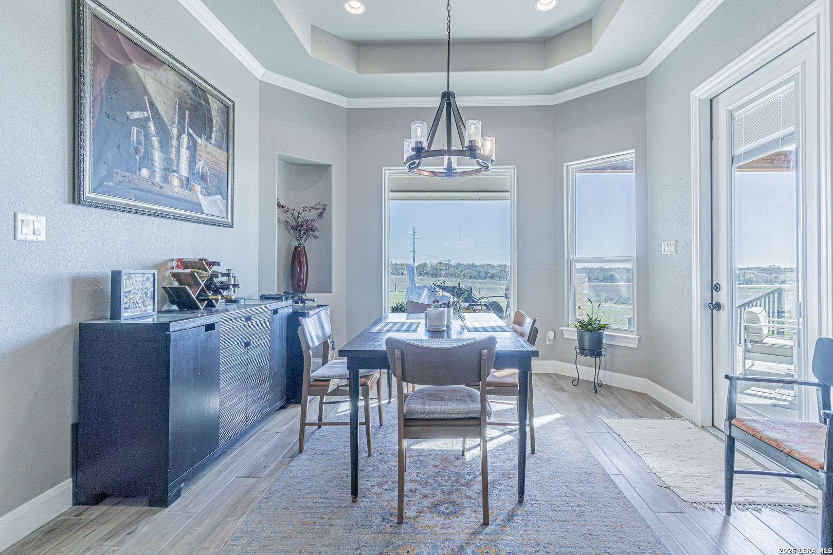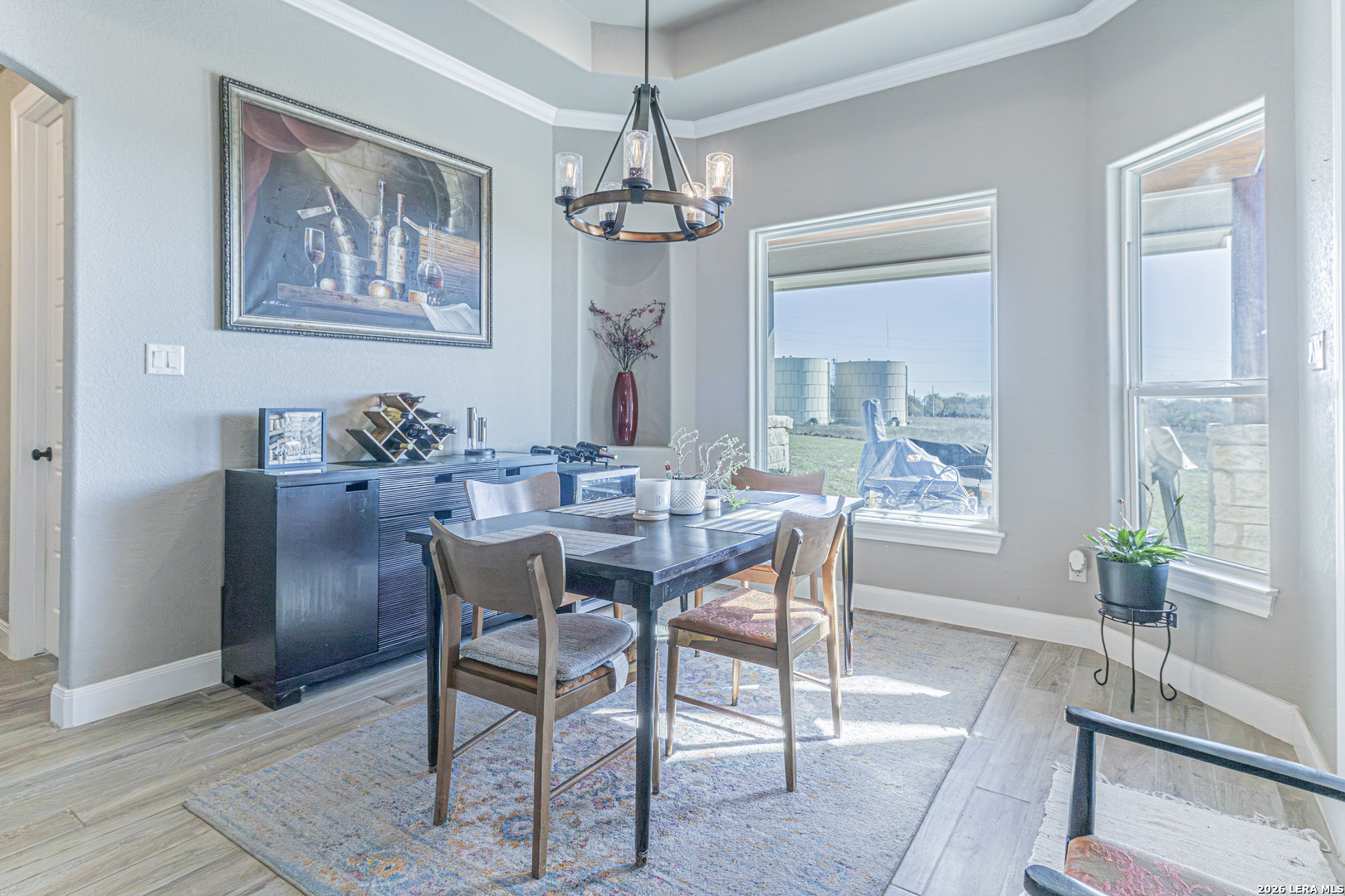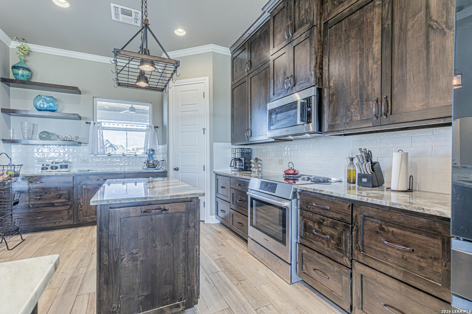 Beautiful 4-bedroom, 2.5-bath home situated on a spacious 1.22-acre cul-de-sac lot in the heart of La Vernia. Offering 2,541 sq ft of thoughtfully designed living space, this home features soaring 12-foot tray ceilings, elegant porcelain tile flooring, and an open-concept layout ideal for everyday living and entertaining. The chef's kitchen is a standout with granite countertops, custom backsplash, walk-in pantry, and a striking architectural archway that adds character and charm. The private owner's suite provides a relaxing retreat with a double vanity and beautiful tumbled stone walk-in shower in the en-suite bath. Enjoy the dog shower in the utility room to keep your furry friend clean! Step outside to the covered patio overlooking wide open space, perfect for relaxing evenings, weekend gatherings, or simply enjoying the peaceful surroundings. This beautifully maintained property offers comfort, style, and plenty of room to grow.