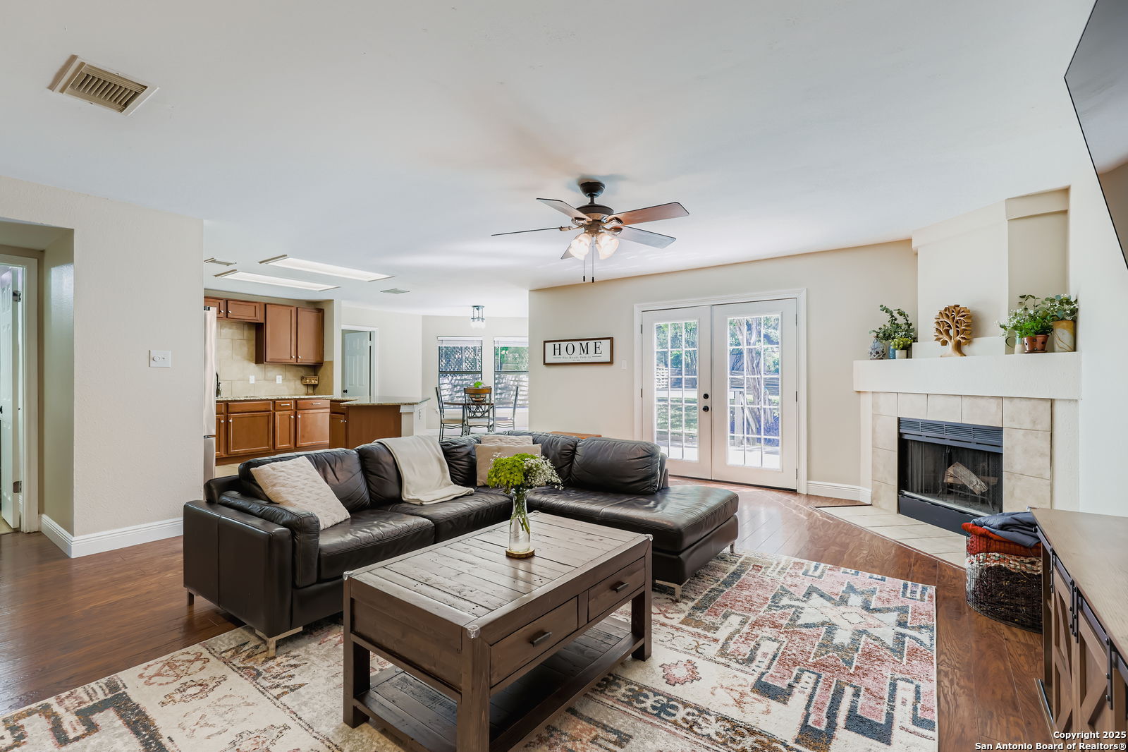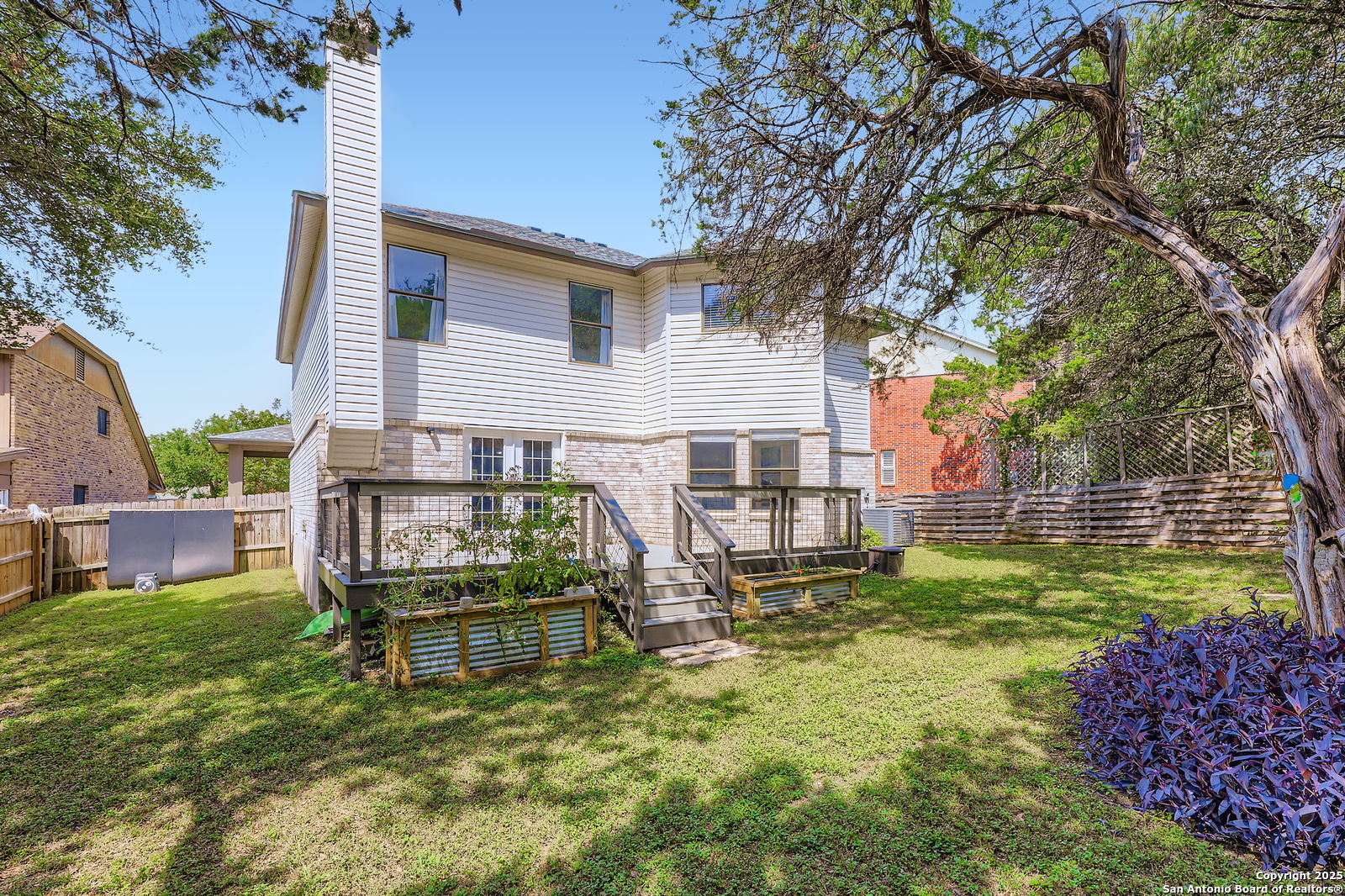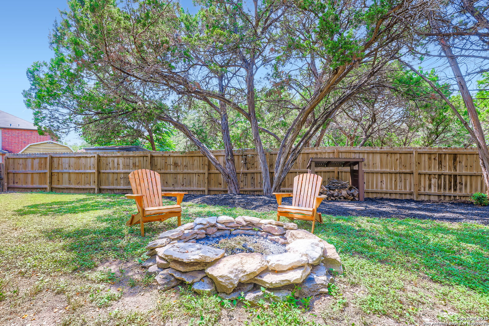 Welcome home - where updated comfort meets backyard bliss! Nestled at the end of a quiet cul-de-sac, this beautifully updated 4-bedroom, 2.5-bath gem sits on an oversized lot of over a quarter acre - a rare find inside the city limits. Competitively priced, this home offers flexible living, modern updates, and an outdoor retreat designed for both relaxation and functionality. Inside, you'll find fresh paint, removed popcorn ceilings, and new carpet (Oct 2023). A cozy wood-burning fireplace anchors the spacious living room- perfect for quiet evenings or lively gatherings. The kitchen shines with granite countertops, stainless steel appliances, an oversized pantry, and abundant prep space - ideal for cooking, hosting, or casual meals. The bright breakfast nook flows naturally from the kitchen, framed by large windows and stylish new lighting. The primary suite includes a private bath with double vanities and a flex space currently used as an office - perfect as a nursery, gym, library, meditation room, or cozy sitting area. Smart home upgrades include a Ring camera, Schlage smart lock, Ecobee thermostat, a 240V garage outlet (EV-ready or ideal for workshop tools), and hidden TV wiring in the living room for a clean, modern look. Step outside to your backyard oasis: a rebuilt deck (July 2025), custom fire pit built from backyard stone, solar Edison lights, a firewood cradle, and a thriving vegetable garden. The front yard features a sprawling green space, a covered entry, and an oversized driveway that fits up to 4 vehicles. Located in Longs Creek, this home offers easy access to shopping, dining, and is under 30 minutes from Fort Sam Houston, JBSA-Randolph, San Antonio Medical Center, and downtown - all just minutes from Loop 1604 and I-35. With a new roof (Aug 2023), new water heater (July 2024), and a home warranty plan through March 2026, this home is more than move-in ready, it's peace of mind.