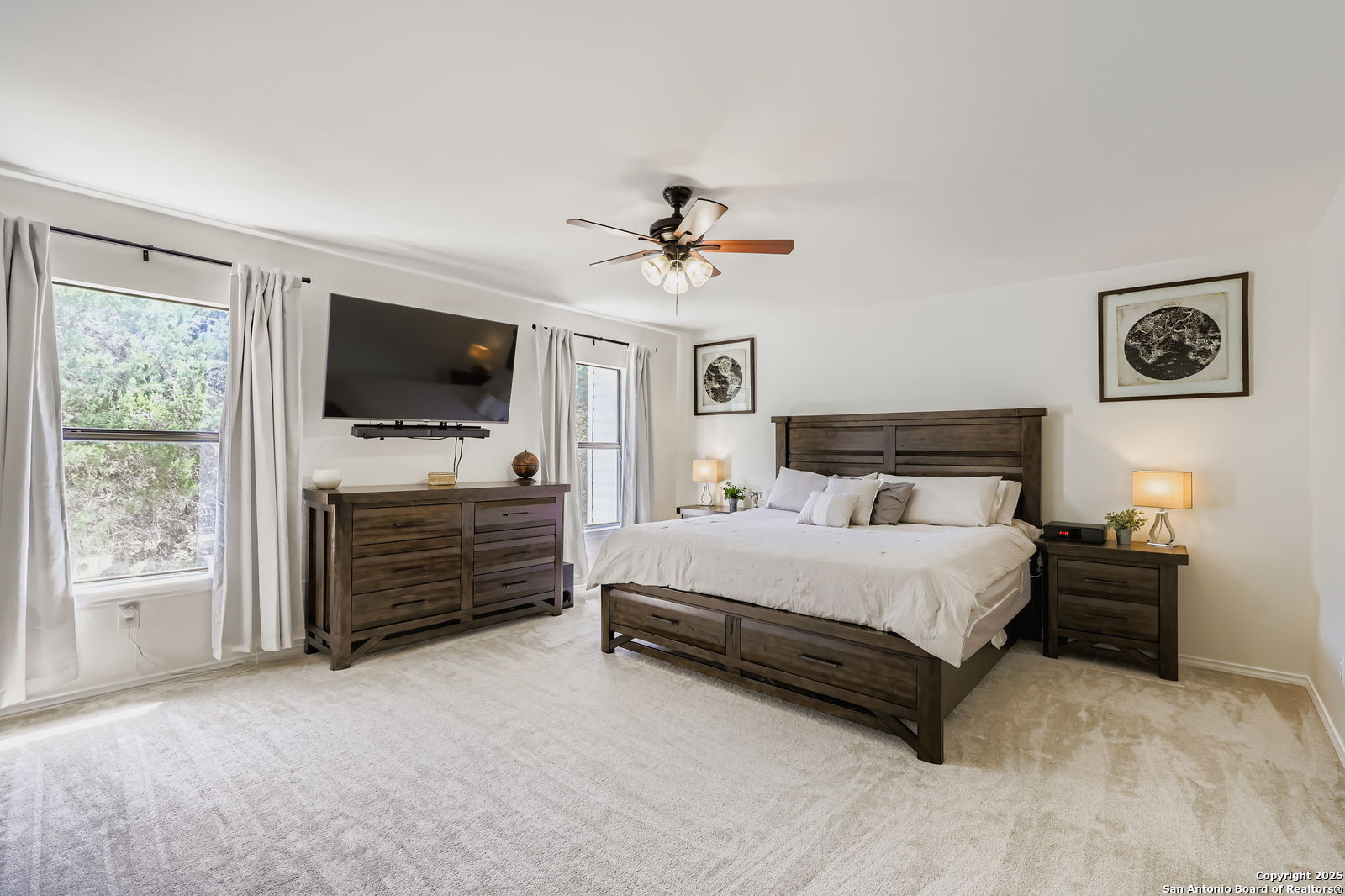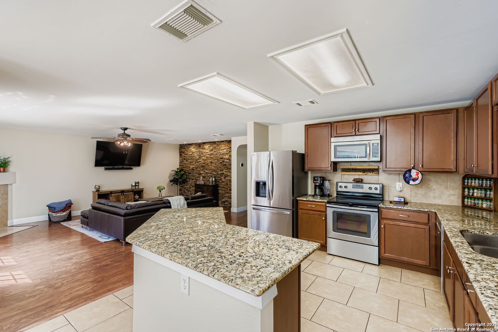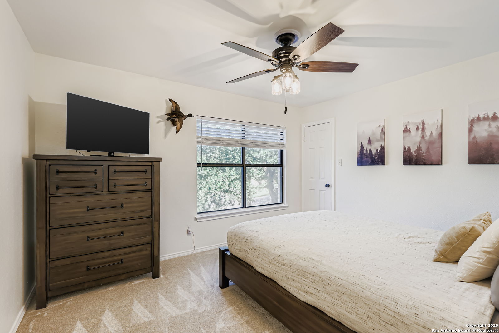 Welcome home - where updated comfort meets backyard bliss! Nestled at the end of a quiet cul-de-sac, this beautifully updated 4-bedroom, 2.5-bath gem sits on an oversized lot of over a quarter acre - a rare find inside the city limits. Competitively priced, this home offers flexible living, modern updates, and an outdoor retreat designed for both relaxation and functionality. Inside, you'll find fresh paint, removed popcorn ceilings, and new carpet (Oct 2023). A cozy wood-burning fireplace anchors the spacious living room- perfect for quiet evenings or lively gatherings. The kitchen shines with granite countertops, stainless steel appliances, an oversized pantry, and abundant prep space - ideal for cooking, hosting, or casual meals. The bright breakfast nook flows naturally from the kitchen, framed by large windows and stylish new lighting. The primary suite includes a private bath with double vanities and a flex space currently used as an office - perfect as a nursery, gym, library, meditation room, or cozy sitting area. Smart home upgrades include a Ring camera, Schlage smart lock, Ecobee thermostat, a 240V garage outlet (EV-ready or ideal for workshop tools), and hidden TV wiring in the living room for a clean, modern look. Step outside to your backyard oasis: a rebuilt deck (July 2025), custom fire pit built from backyard stone, solar Edison lights, a firewood cradle, and a thriving vegetable garden. The front yard features a sprawling green space, a covered entry, and an oversized driveway that fits up to 4 vehicles. Located in Longs Creek, this home offers easy access to shopping, dining, and is under 30 minutes from Fort Sam Houston, JBSA-Randolph, San Antonio Medical Center, and downtown - all just minutes from Loop 1604 and I-35. With a new roof (Aug 2023), new water heater (July 2024), and a home warranty plan through March 2026, this home is more than move-in ready, it's peace of mind.