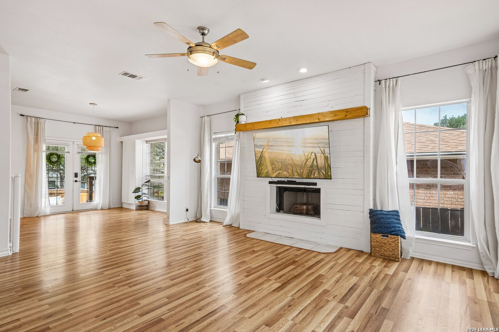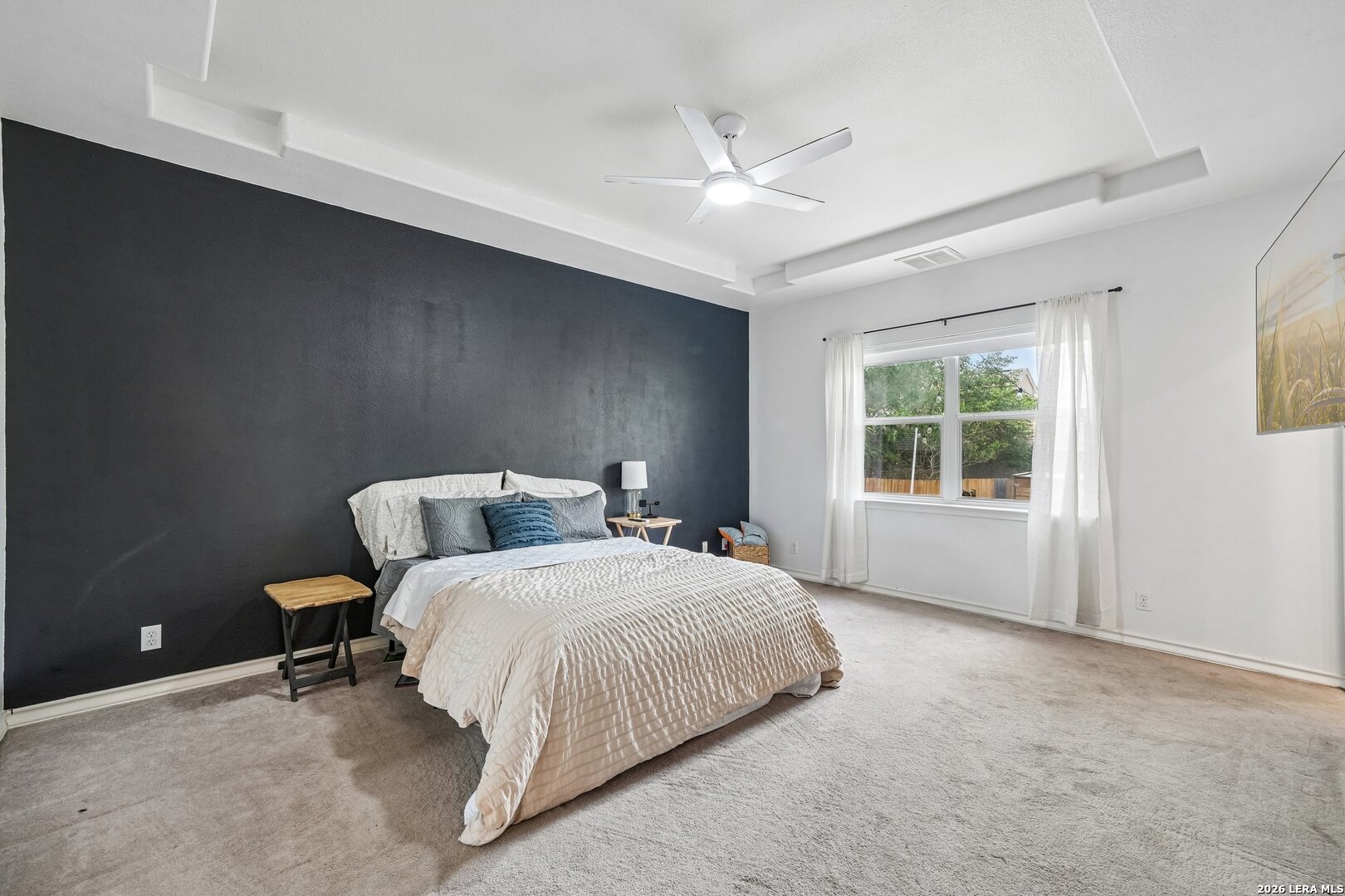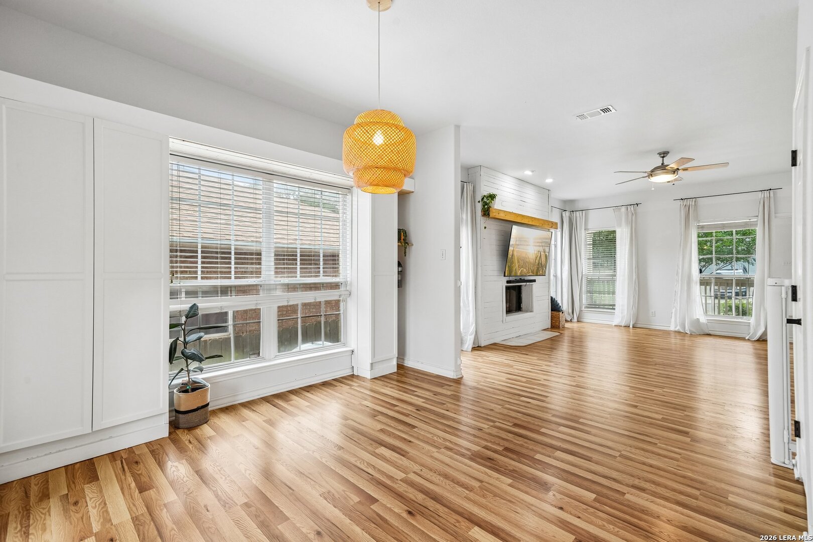 Welcome Home to this nicely updated, move-in ready home! It showcases thoughtful upgrades...a striking whitewashed wood fireplace facade that adds warmth and character. The kitchen is equipped with stainless steel appliances and a new dishwasher. A naturally bright dining room offers added convenience with custom storage cabinets. New ceiling fans, a designer board and batten hallway accent wall, and a garage with durable epoxy-sealed flooring. This home blends comfort, style, and functionality. New wood laminate flooring added throughout the living and dining areas. Brand new carpet on stairs, upstairs, hallway, and three bedrooms. Upstairs, a fully remodeled secondary bathroom designed with modern finishes. The attic has been fully insulated and floored, providing excellent additional storage space. A newer water heater adds peace of mind. A nicely landscaped backyard includes a shed, stained fence, and an extended deck-perfect for entertaining. Don't miss out. Schedule your showing today!