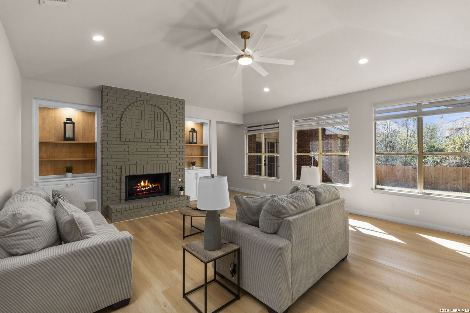 OPEN HOUSE 2/14/2026 12-2PM. This beautiful 1-story home in the sought-after DEERFIELD community offers the perfect blend of modern upgrades and timeless charm. Newly renovated, the home features 2 living areas, a MUST-SEE CUSTOM PRIMARY BATHROOM, an open-concept kitchen, and a beautiful private backyard OASIS. As you step inside, you'll be greeted by a light and bright floorplan accentuated with designer fixtures that create an airy and open atmosphere. Enjoy 2 inviting living areas, both showcasing multiple picturesque windows, that allow for ample space to entertain. The primary cozy living room, centered around a charming brick fireplace with built-in shelves and cabinetry, offers the perfect spot to unwind while enjoying serene views of the backyard. The kitchen and bathrooms have been completely updated with stylish modern finishes, and the home features porcelain tile and waterproof luxury vinyl plank flooring that flows seamlessly throughout, promising both durability and aesthetic appeal. The kitchen is a true highlight, including stunning quartz countertops, brand new stainless steel appliances, pantry, breakfast bar, ample countertop space and soft-closing cabinetry, and a breakfast nook offering a cozy window seat and outside access. Retreat to the spacious primary bedroom suite complemented by dual large walk-in closets and a luxury en-suite that promises the ultimate spa-like experience. The beautiful primary bathroom features a glamorous walk-in shower, free-standing tub, and double vanity with matching quartz countertops. Step over to the adjacent bonus room with a custom built-in desk and shelving, perfect for an office just off the Primary suite or even a gym. Secondary bedrooms are well-sized and versatile for guests, or additional overflow spaces. Step outside to a peaceful backyard oasis featuring new landscaping, a large patio for outdoor gatherings, a sprinkler system, privacy fence, and mature trees that offer ample amounts of shade for relaxing or entertaining outdoors. Residents enjoy access to the Deerfield community amenities, including a swimming pool, sports courts, and playground. Located in a quiet, family-oriented neighborhood with excellent schools nearby, this home strikes the perfect balance between modern luxury and everyday convenience. With quick access to 1604 and Wurzbach parkway, this home is ideally positioned to offer comfortable living with convenience to shopping, dining, and multiple parks to enjoy.