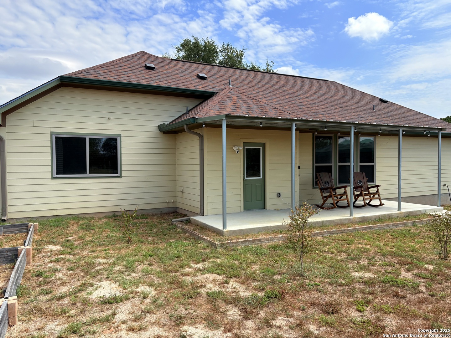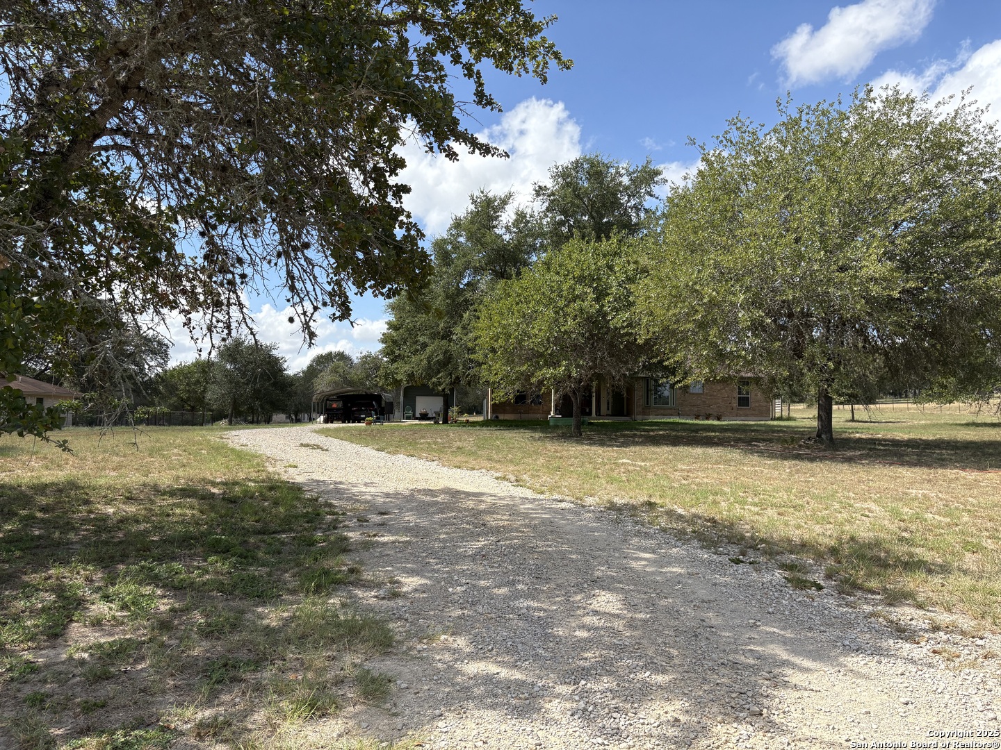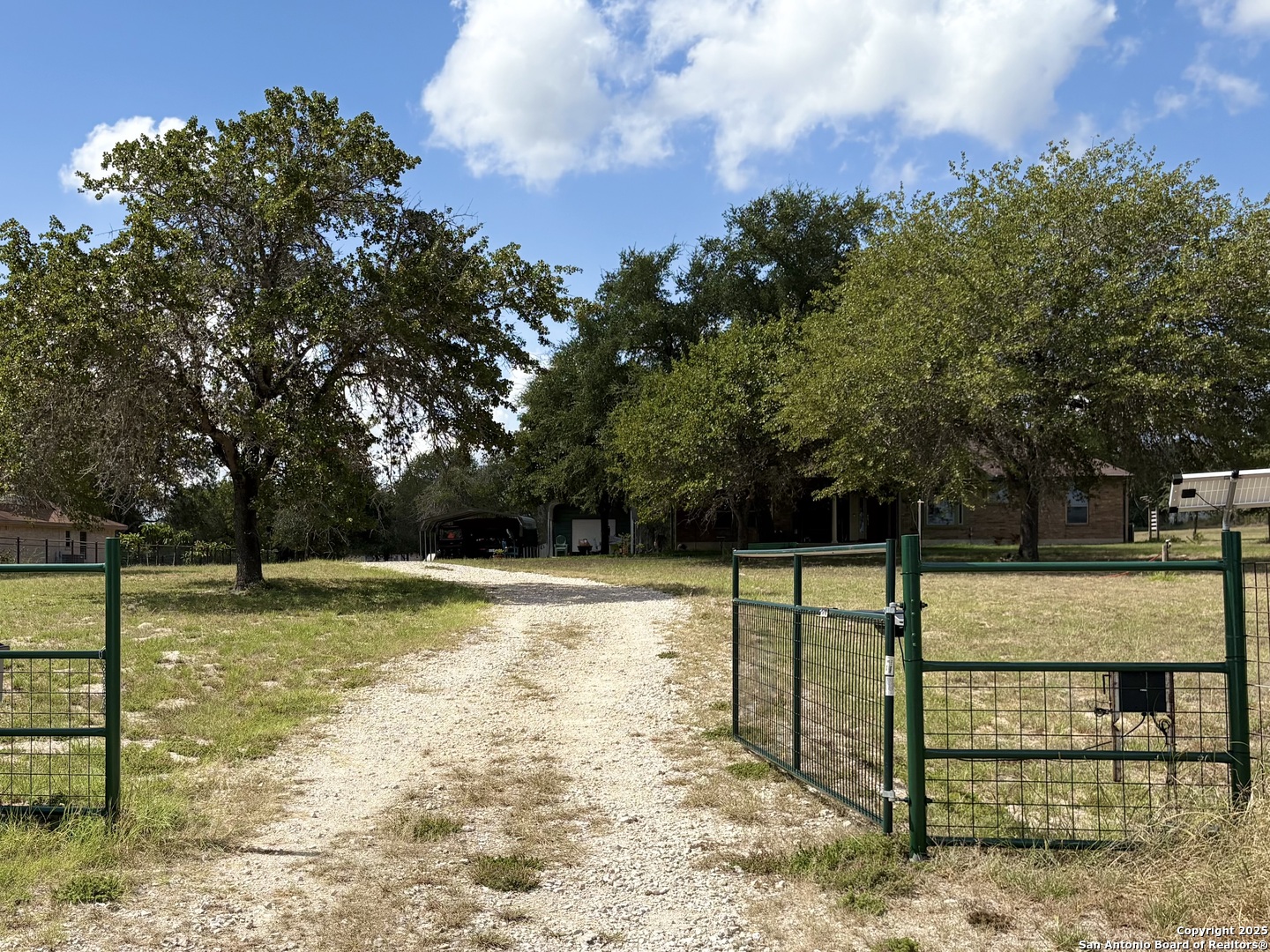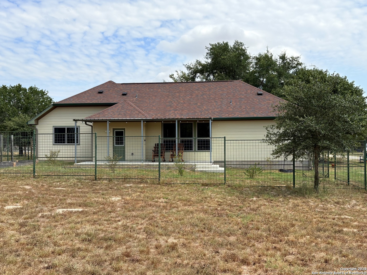 Country charm meets modern living in Presidents Park - Move-In ready custom built home on 1.98 acres. Pride of ownership shows in this 3 bedroom, 2 bath, all tile, single story home. Designed for comfort and convenience in mind, the home features no steps, smart lighting (compatible with Alexa, Echo, and other Amazon devises), a Ring camera, recessed lighting and raised ceilings that create a spacious, open feel, granite countertops throughout. Located in desirable Presidents Park subdivision no HOA dues or city taxes - La Vernia ISD, just 15 minutes to Hwy 87 & Loop 410 to San Antonio. Enjoy country sunsets from the covered front porch and back patio. The property also includes a 20' x 25' roll-top storage building opening to a covered patio. Washer, Dryer & Refrigerator negotiable. Fenced and crossed-fenced with gated entrance, this home combines modern amenities with peaceful country living.
