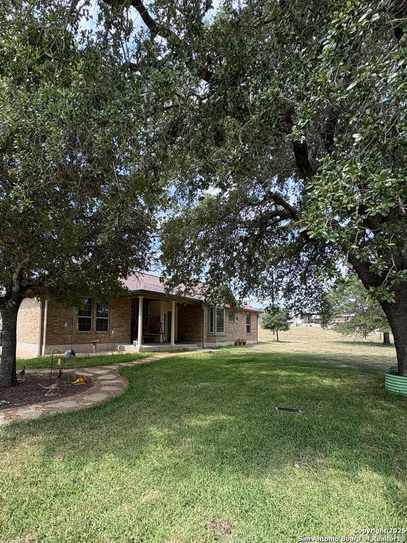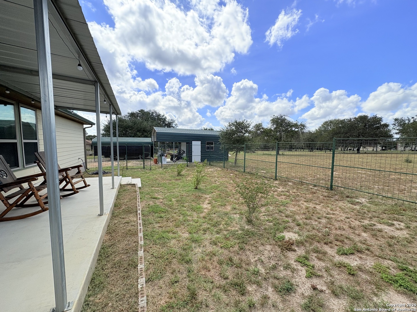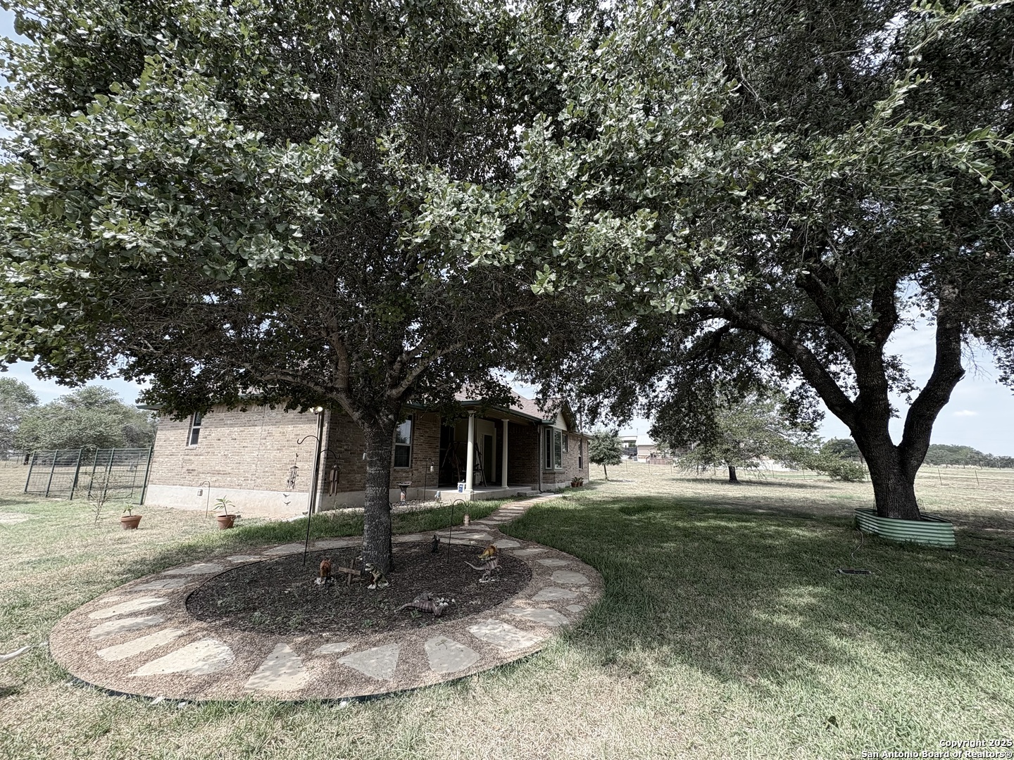 Country charm meets modern living in Presidents Park - Move-In ready custom built home on 1.98 acres. Pride of ownership shows in this 3 bedroom, 2 bath, all tile, single story home. Designed for comfort and convenience in mind, the home features no steps, smart lighting (compatible with Alexa, Echo, and other Amazon devises), a Ring camera, recessed lighting and raised ceilings that create a spacious, open feel, granite countertops throughout. Located in desirable Presidents Park subdivision no HOA dues or city taxes - La Vernia ISD, just 15 minutes to Hwy 87 & Loop 410 to San Antonio. Enjoy country sunsets from the covered front porch and back patio. The property also includes a 20' x 25' roll-top storage building opening to a covered patio. Washer, Dryer & Refrigerator negotiable. Fenced and crossed-fenced with gated entrance, this home combines modern amenities with peaceful country living.