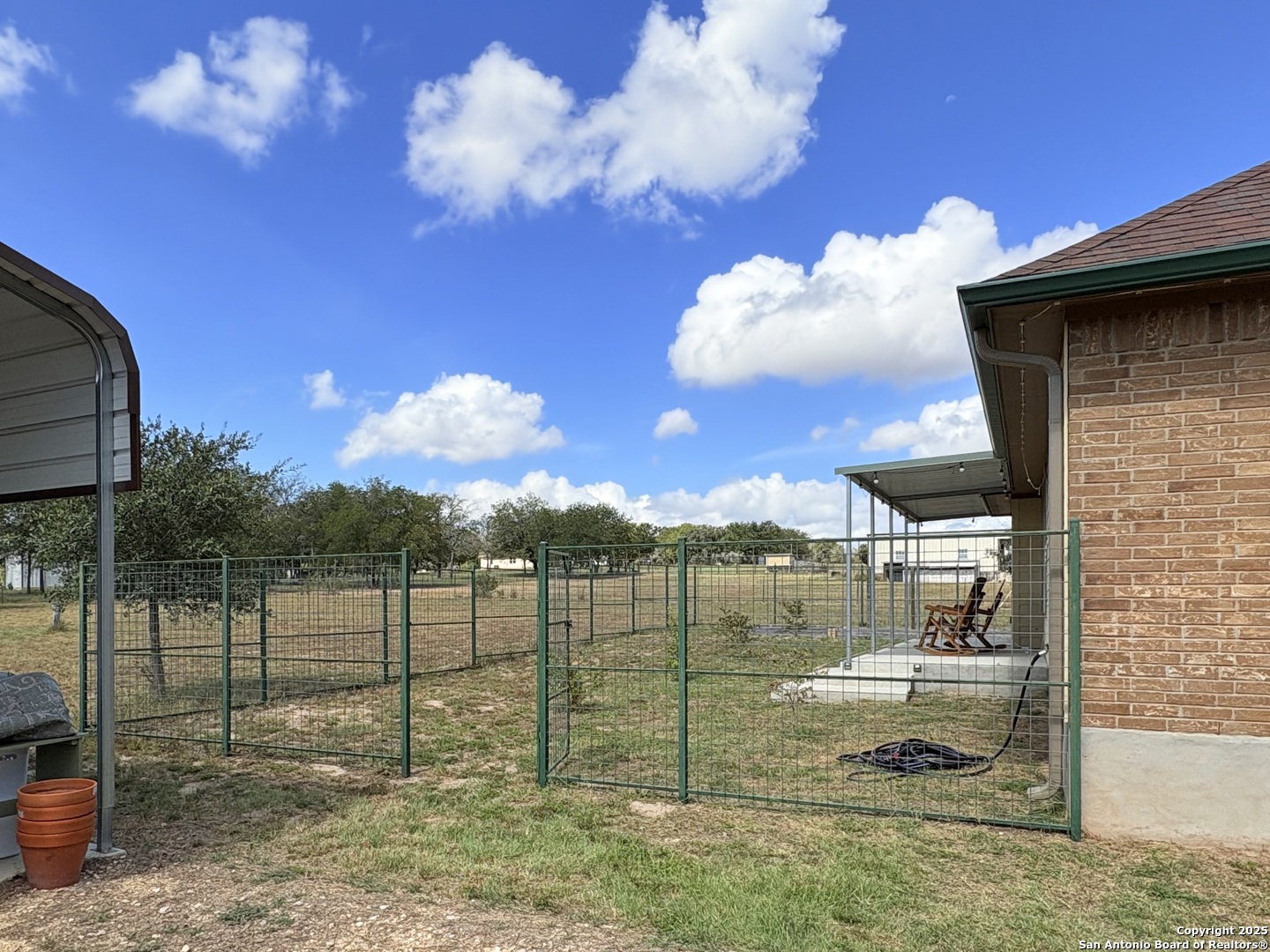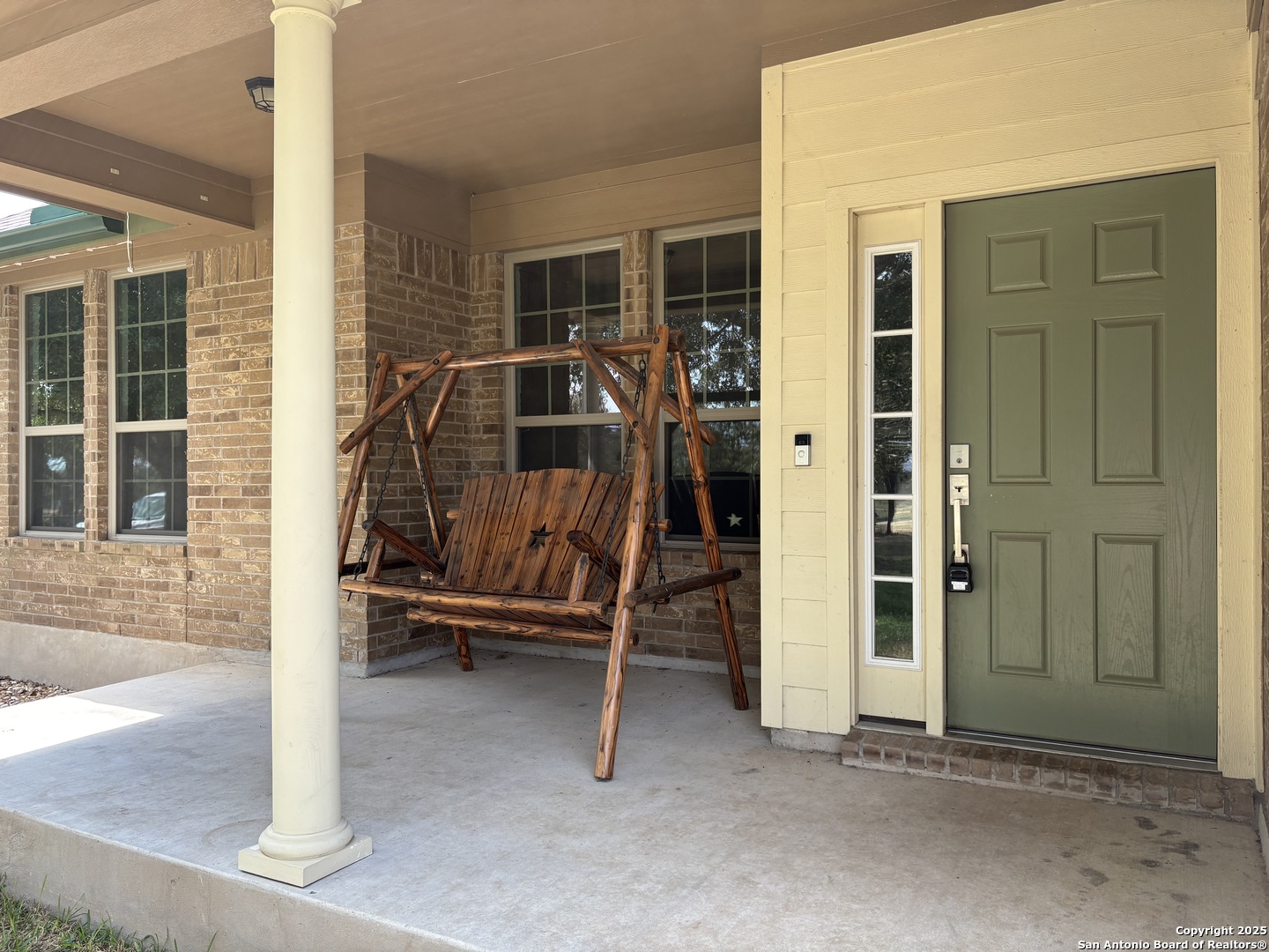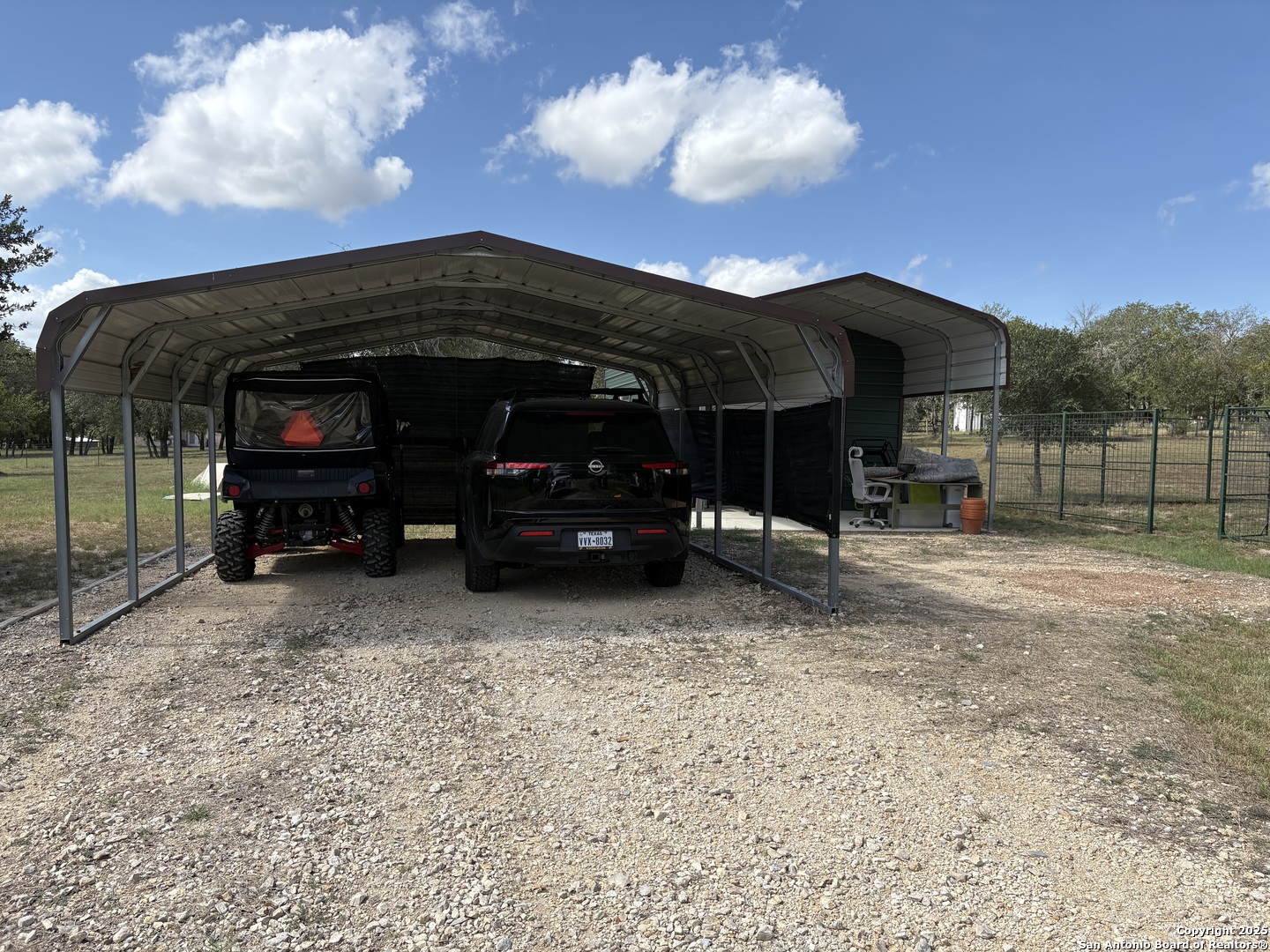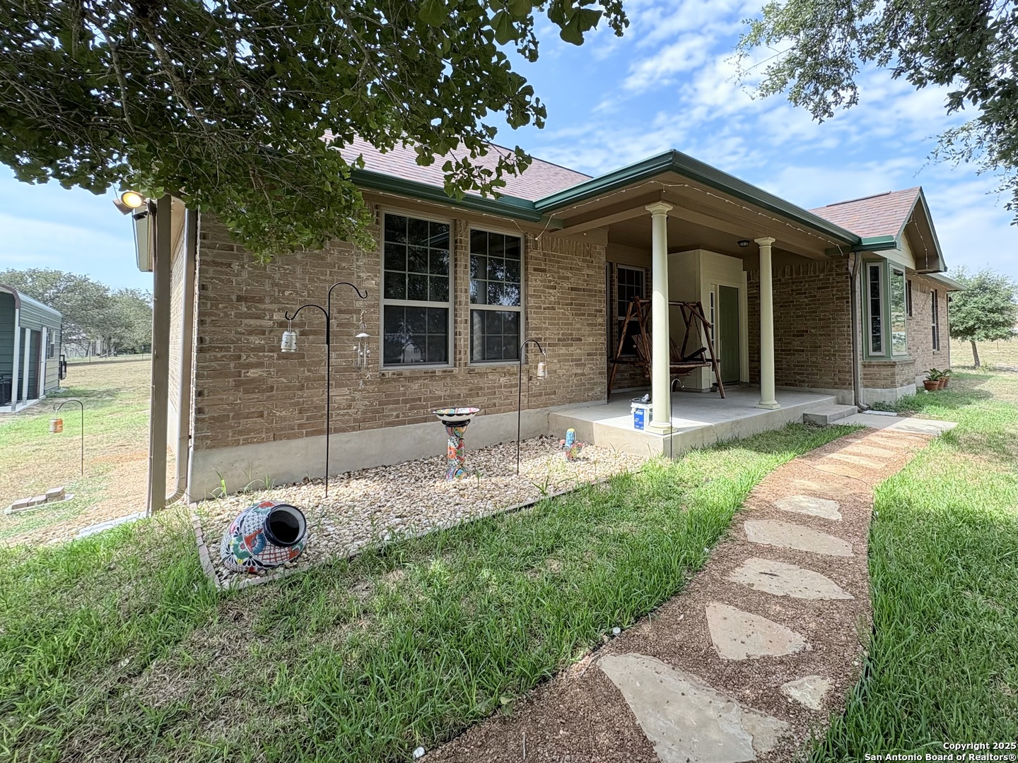 Country charm meets modern living in Presidents Park - Move-In ready custom built home on 1.98 acres. Pride of ownership shows in this 3 bedroom, 2 bath, all tile, single story home. Designed for comfort and convenience in mind, the home features no steps, smart lighting (compatible with Alexa, Echo, and other Amazon devises), a Ring camera, recessed lighting and raised ceilings that create a spacious, open feel, granite countertops throughout. Located in desirable Presidents Park subdivision no HOA dues or city taxes - La Vernia ISD, just 15 minutes to Hwy 87 & Loop 410 to San Antonio. Enjoy country sunsets from the covered front porch and back patio. The property also includes a 20' x 25' roll-top storage building opening to a covered patio. Washer, Dryer & Refrigerator negotiable. Fenced and crossed-fenced with gated entrance, this home combines modern amenities with peaceful country living.