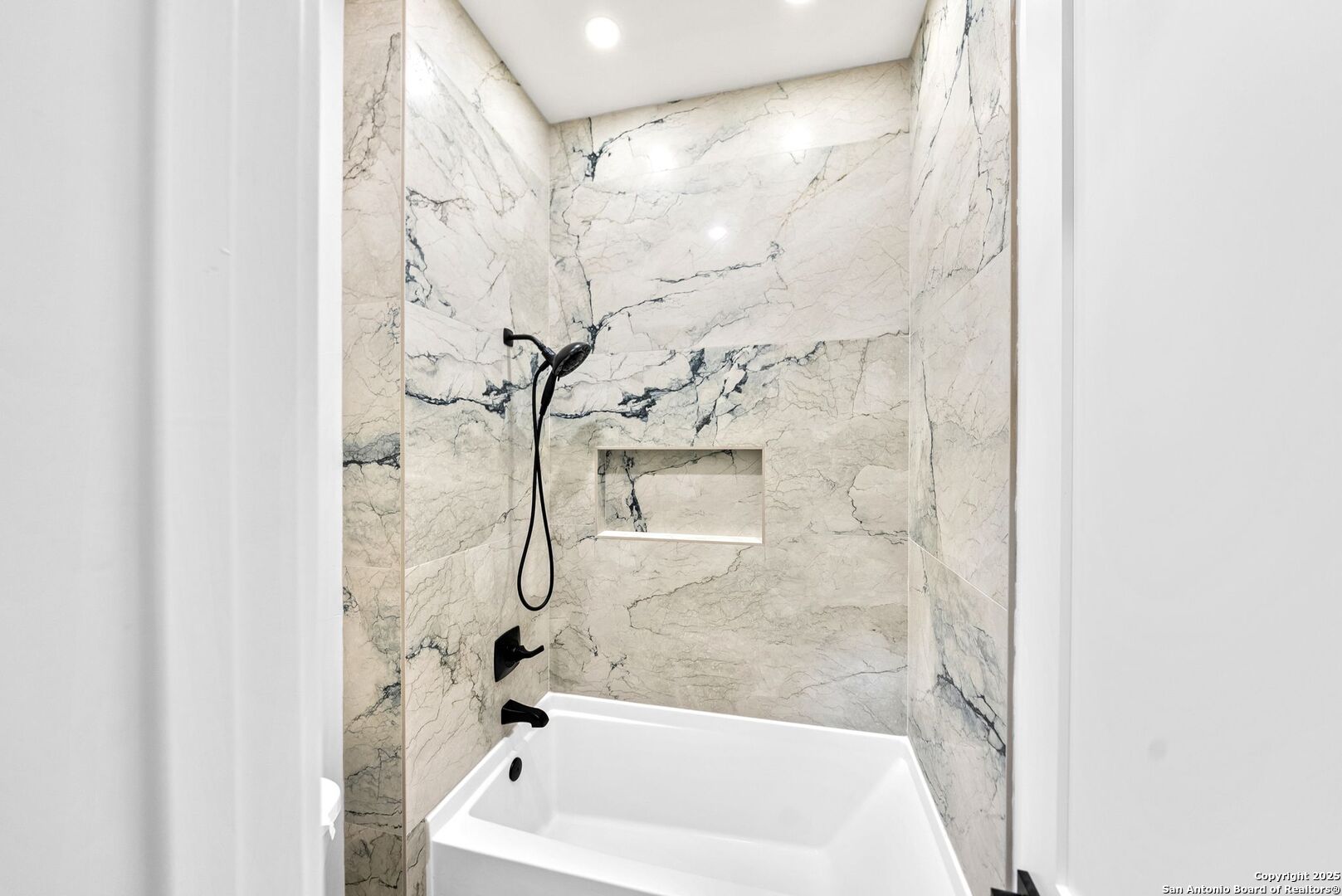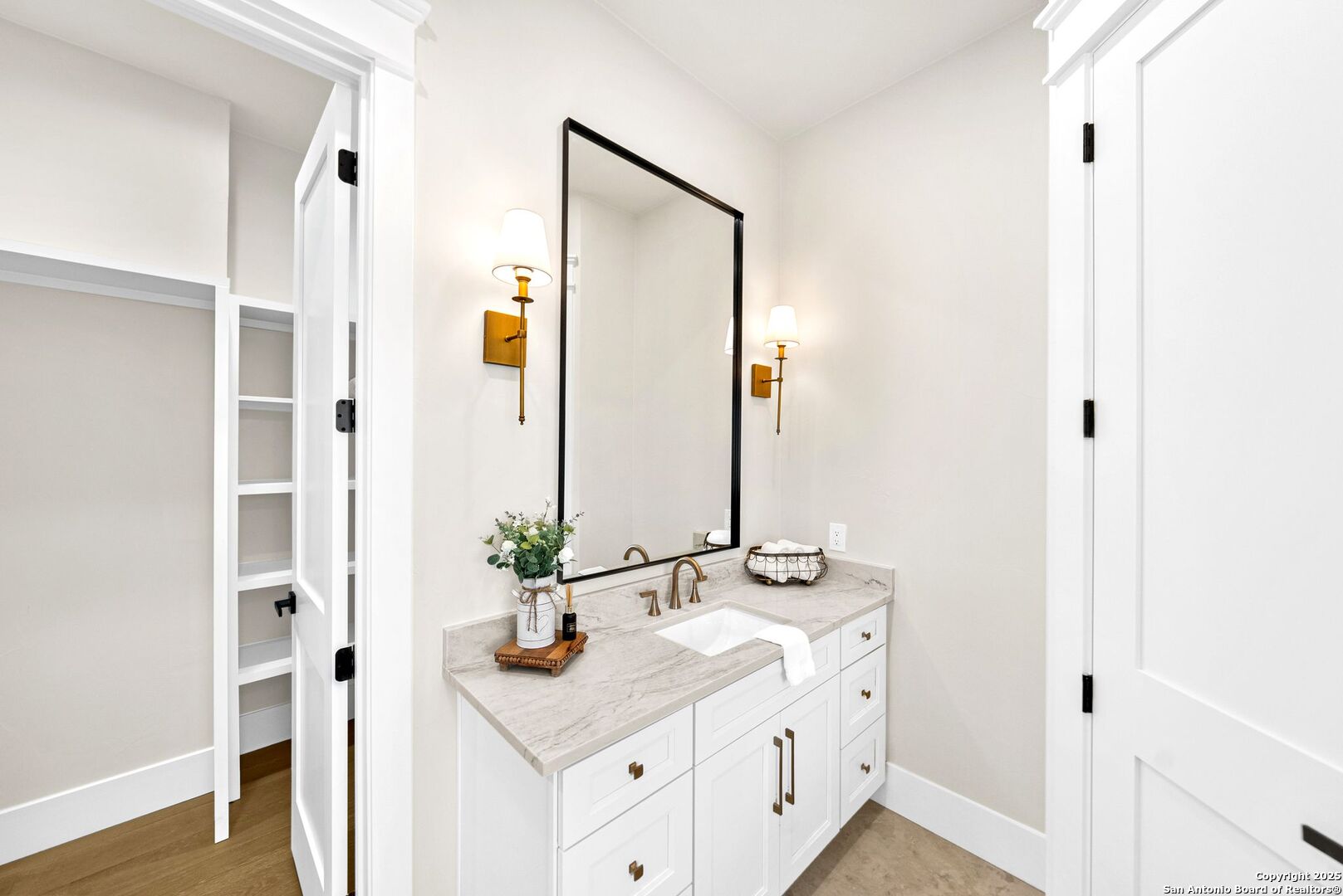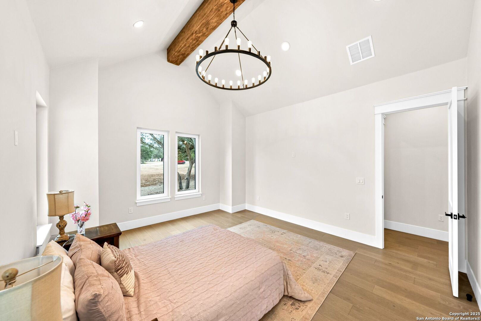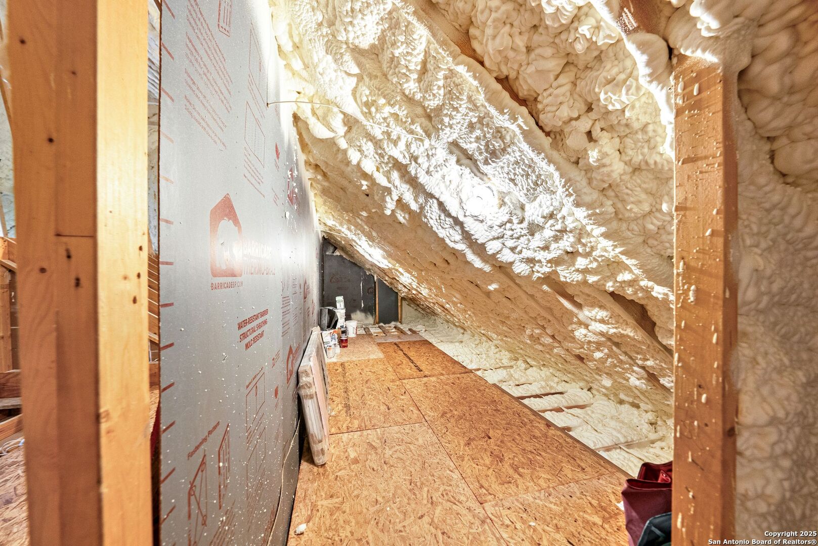 Exceptional new construction located in the Bridlegate community of Bandera, Texas, set on over 3 acres of Hill Country landscape. This thoughtfully designed home offers 4 bedrooms, 3.5 baths, a dedicated office, and an upstairs bonus room with restroom (700sqft) that can be finished out by the builder - request details. The interior showcases vaulted ceilings with faux beams, Venetian plaster accents at the hood and fireplace, and high-end fixtures throughout. The chef's kitchen features an oversized island, Taj Mahal quartzite countertops, gas cooking with pot filler, and all brand-new kitchen appliances included (backordered range/hood vent). Delta plumbing fixtures, foam insulation, and triple-pane European-style windows reflect the builder's commitment to quality and energy efficiency-no details were overlooked. Enjoy seamless indoor-outdoor living with a covered patio featuring an outdoor fireplace and kitchen, perfect for entertaining. The builder has also prepared the backyard for a future shop or ADU, offering flexibility for additional living space, storage, or a workspace. Additional highlights include decked attic storage, premium finishes throughout, and a design that blends luxury with function. This is a rare opportunity to own a truly well-built home in one of Bandera's most sought-after communities.