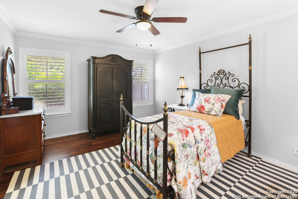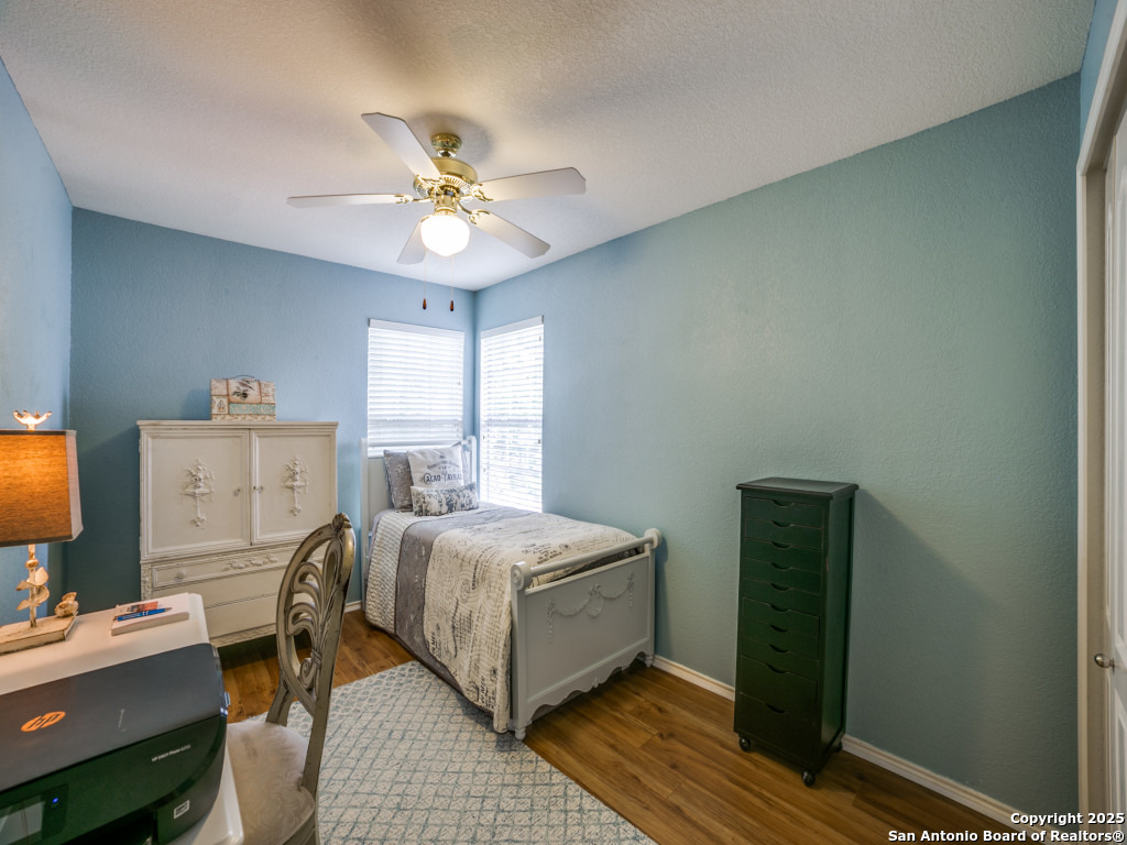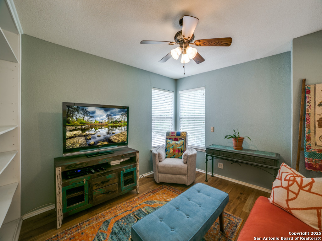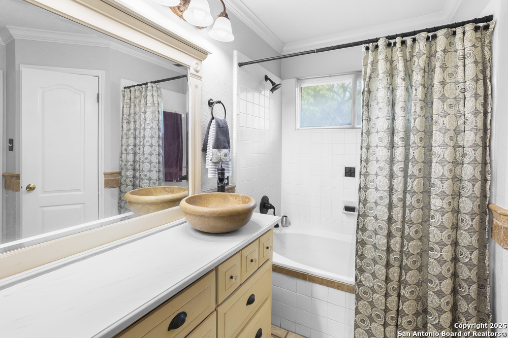 Step into this charming 3-bedroom, 2.5-bath home in northwest San Antonio, where high ceilings and a cozy fireplace in the living area create a warm and inviting ambiance. The spacious kitchen features silestone and ceramic tile counters with decorative backsplash, custom cabinetry and stainless steel appliances, perfect for home chefs and entertaining. The primary suite on the main floor offers privacy and wood flooring and a serene en suite bathroom. Upstairs, a loft area and additional bedrooms provide flexibility and room to grow. Outside, a beautifully landscaped backyard with a flagstone terrace with brick walkway, shaded by a mature tree, invites you to relax with minimal upkeep. Located just minutes from OP Schnabel Park, the Medical Center, and convenient shopping and dining, this home combines comfort, style, and convenience.