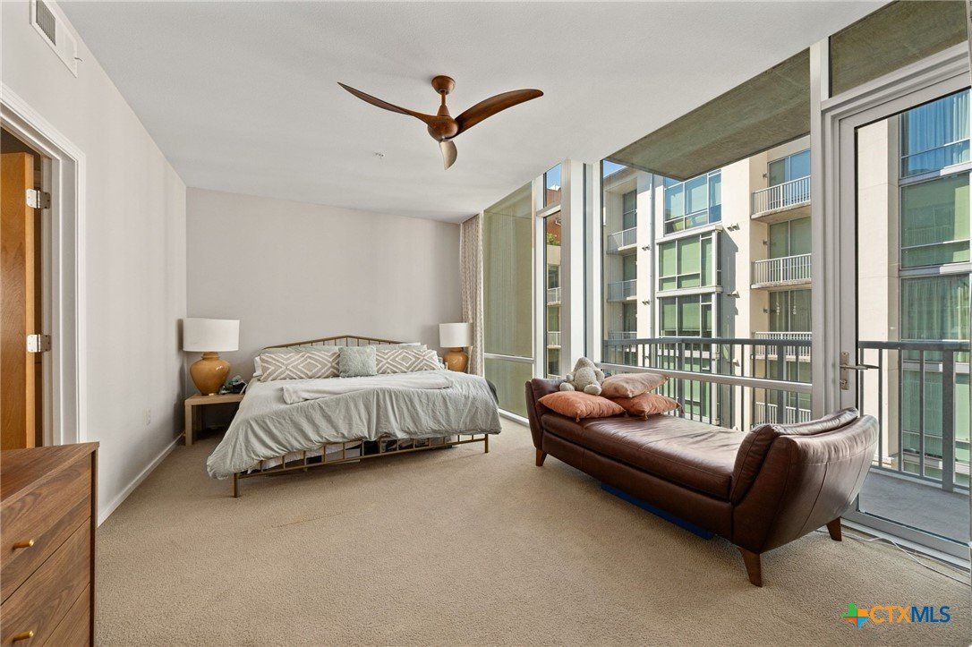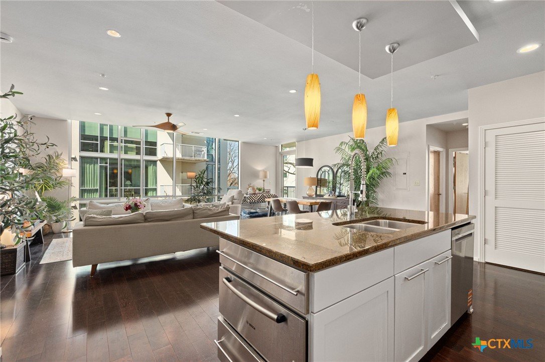 Perfectly positioned in one of Austin’s most desirable zip codes, Barton Place delivers walkable access to downtown, the hike-and-bike trails, and the vibrant energy of the city—while maintaining a peaceful setting just south of the lake. This fourth-floor, west-facing CORNER residence is coming to market for the very first time. Offering three bedrooms and an exceptional layout, the home is filled with natural light thanks to dramatic floor-to-ceiling windows in every room. From the two secondary bedrooms, enjoy views of downtown Austin—including a spectacular vantage point for local fireworks. The kitchen is designed to impress, featuring built-in Bosch appliances, a Bosch 90-bottle wine cooler, great for entertaining, and freshly painted cabinetry that complements the updated interior paint throughout the home. Recent improvements include replaced A/C units, a new water heater, new washer and dryer, and custom built-in closets in all three bedrooms—making this home truly move-in ready. Outdoor living is effortless with two private balconies and access to a 1,000-square-foot rooftop gathering space just two floors above—ideal for entertaining or unwinding under the Texas sky. Directly across the street, the trails around Lady Bird Lake offer miles of scenic paths for walking, running, or cycling. Additional highlights include two extra-wide, full-sized parking spaces located close to the elevator, plus two private Urban Storage units—one at each space—perfect for storing paddleboards, kayaks, and gear in the secured garage. Residents also enjoy the convenience of an on-site fitness center within the building. A rare opportunity to own a light-filled corner unit in one of Austin’s premier lakefront communities—where lifestyle and location come together effortlessly.