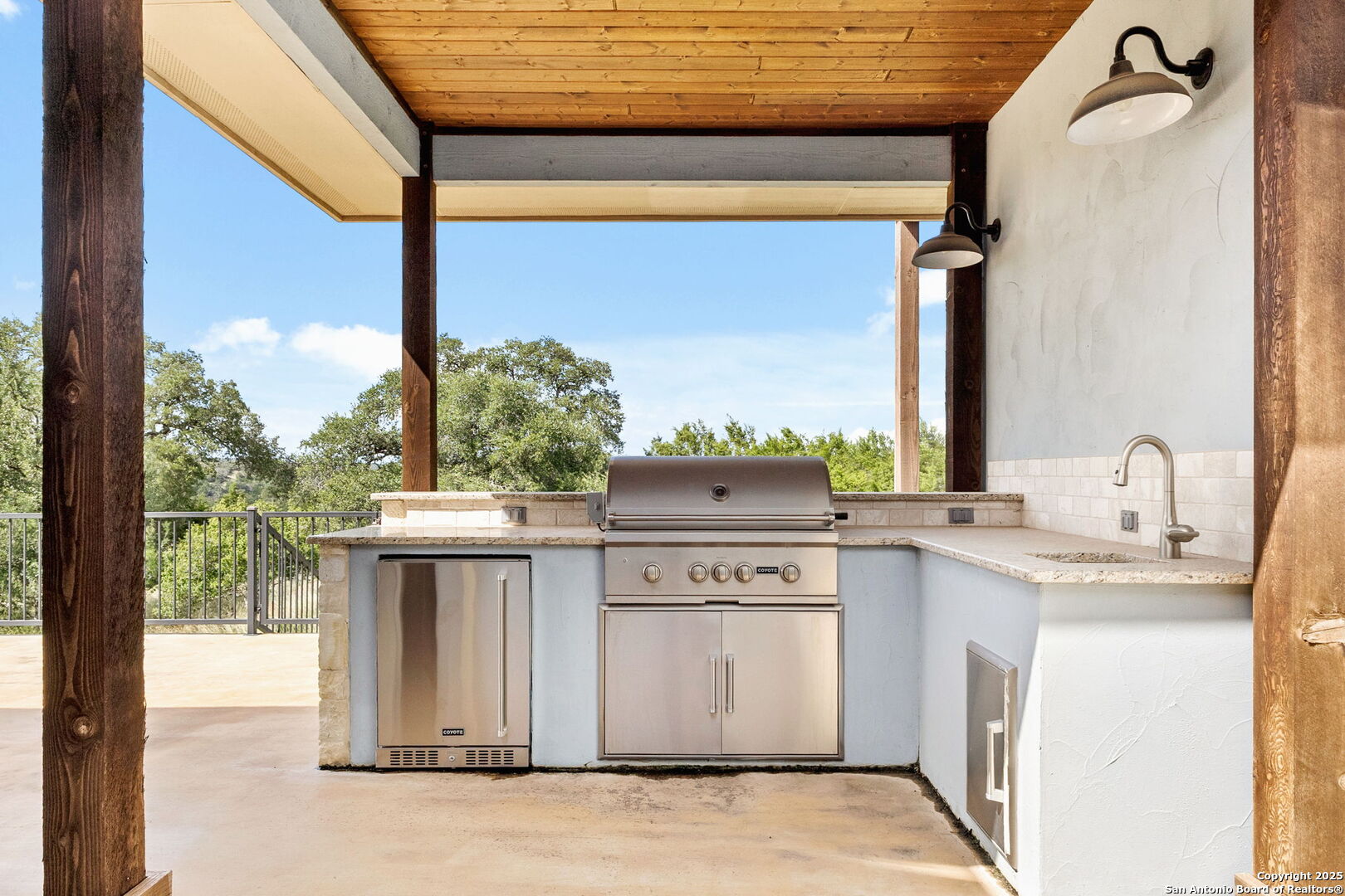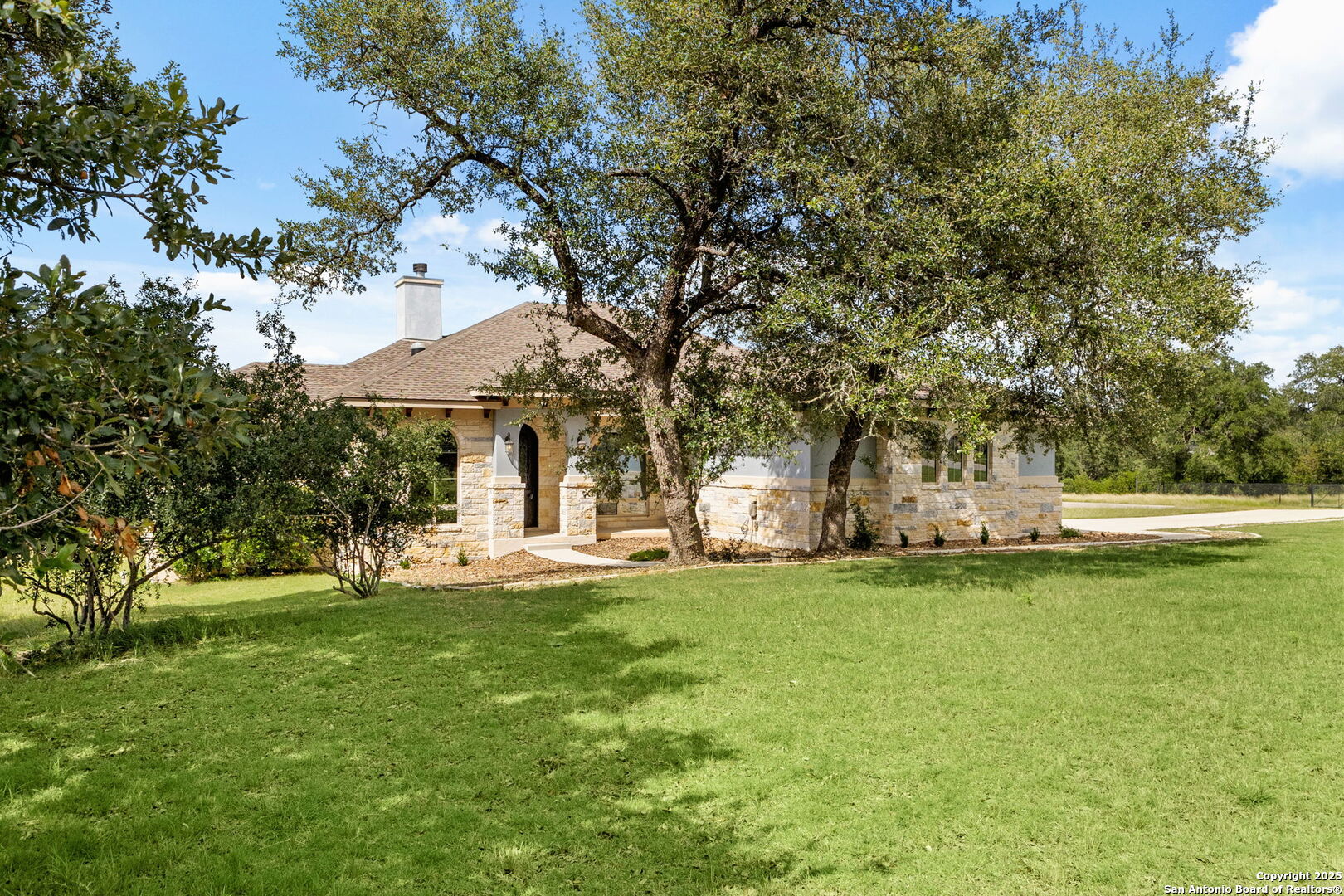 Welcome to 1607 Filtro-where timeless Texas charm and modern luxury come together on over an acre of beautifully treed land in the heart of New Braunfels. Tucked beneath a canopy of mature oak trees, this stunning 3-bedroom, 3-bath home offers the perfect blend of serenity, space, and sophistication. Step inside to find durable wood-look tile flooring, soaring ceilings, and an open layout ideal for both daily living and entertaining. The custom kitchen is a chef's dream with double ovens, abundant cabinetry, and generous counter space that makes holiday meals and weeknight dinners a breeze. The spacious primary suite is a true retreat, complete with bay windows that flood the room with natural light. The ensuite bathroom features a double vanity, luxurious soaking tub, oversized walk-in shower, and a large walk-in closet. Outside, the hill country lifestyle continues with an expansive covered patio featuring a tongue-and-groove ceiling, built-in outdoor kitchen, and plenty of room to add your dream pool. Whether you're grilling, relaxing, or entertaining under the stars, this backyard was designed for unforgettable gatherings. Located in the coveted Vintage Oaks community, you'll enjoy access to world-class amenities including a resort-style pool, lazy river, state-of-the-art fitness center, miles of scenic hiking trails, sport courts, and a vibrant events calendar-all just minutes from New Braunfels' dining, shopping, and entertainment. Don't miss your chance to live the hill country lifestyle in one of Texas' most desirable communities. Schedule your private showing today!