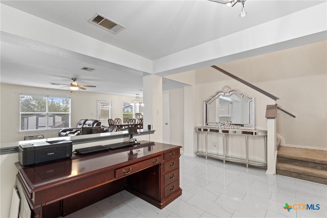 Welcome to your forever home in north Kyle within the Indian Paintbrush subdivision. This upgraded home has been carefully detailed with Quartz countertops and glass backsplash in the with porcelain tile throughout the entire first floor excluding the stairwell closet. All light fixtures have been replaced to nickel brush finish on the main level. A gorgeous chandelier has the center spot in the foyer. The roof was replaced in 2017 and the foundation repaired in 2024 boasting a lifetime transferable warranty. There are two access gates to the backyard (one for regular entrance and the other is a foldable 10 foot wide gate for shed and trailer access). No floodplain here at this T-intersection with a water hydrant and street lamp for safety. Come on in and make this your own home for decades to come!